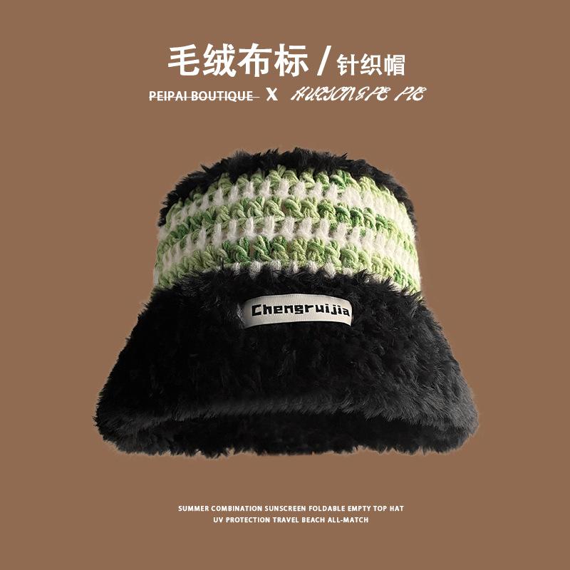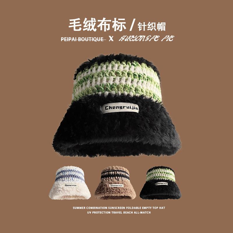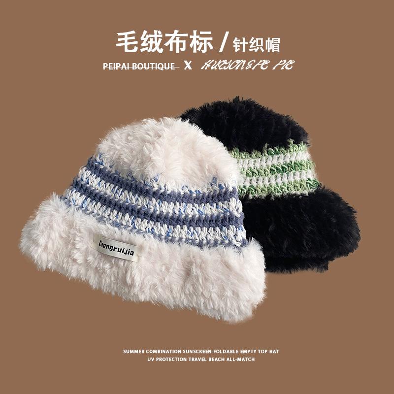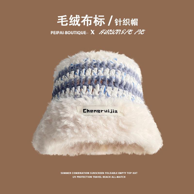 C3369 upper and lower plush cloth label Che knitted hat White, C3369 upper and lower plush cloth label Che kni...