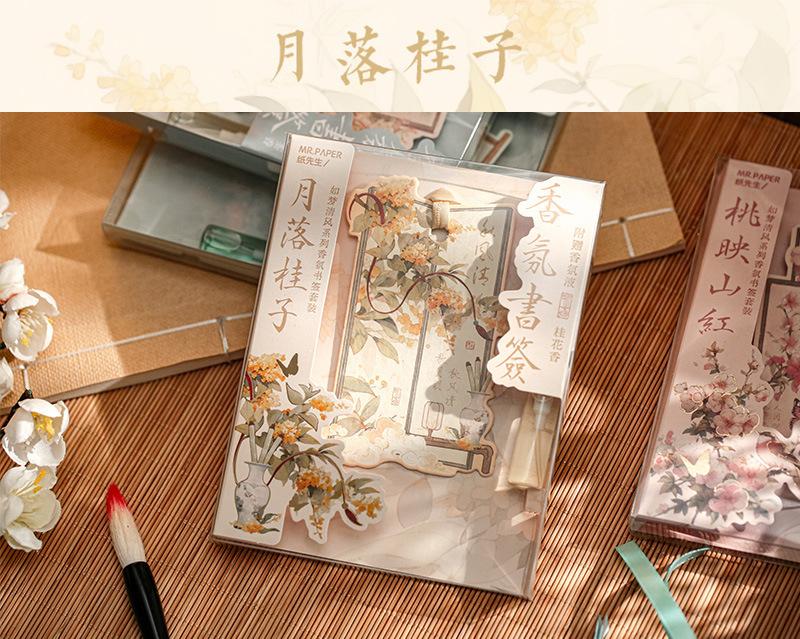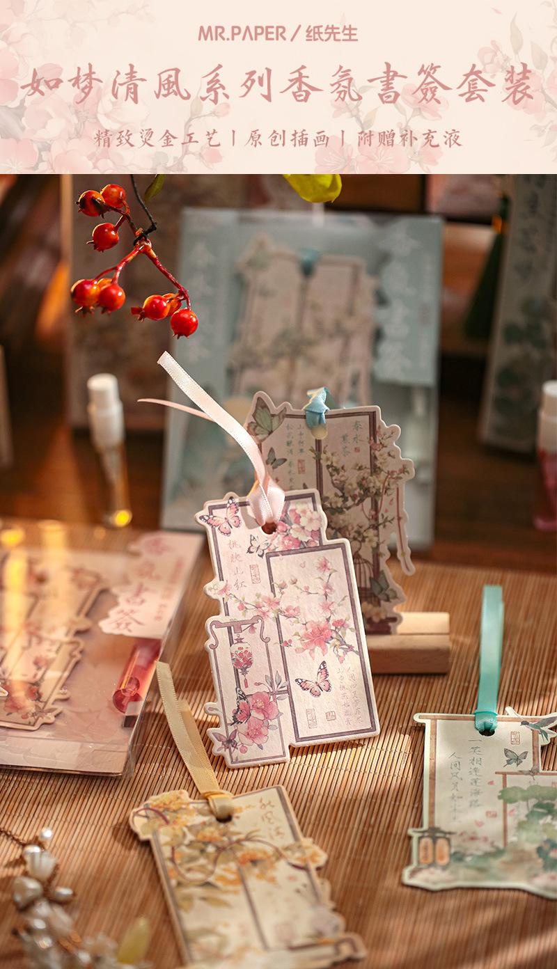 Señor. Marcapáginas de papel con fragancia antigua, serie Dream Breeze, etiqueta de lectura irregular, marcapáginas de flores