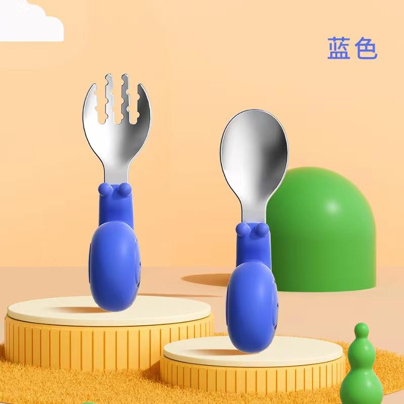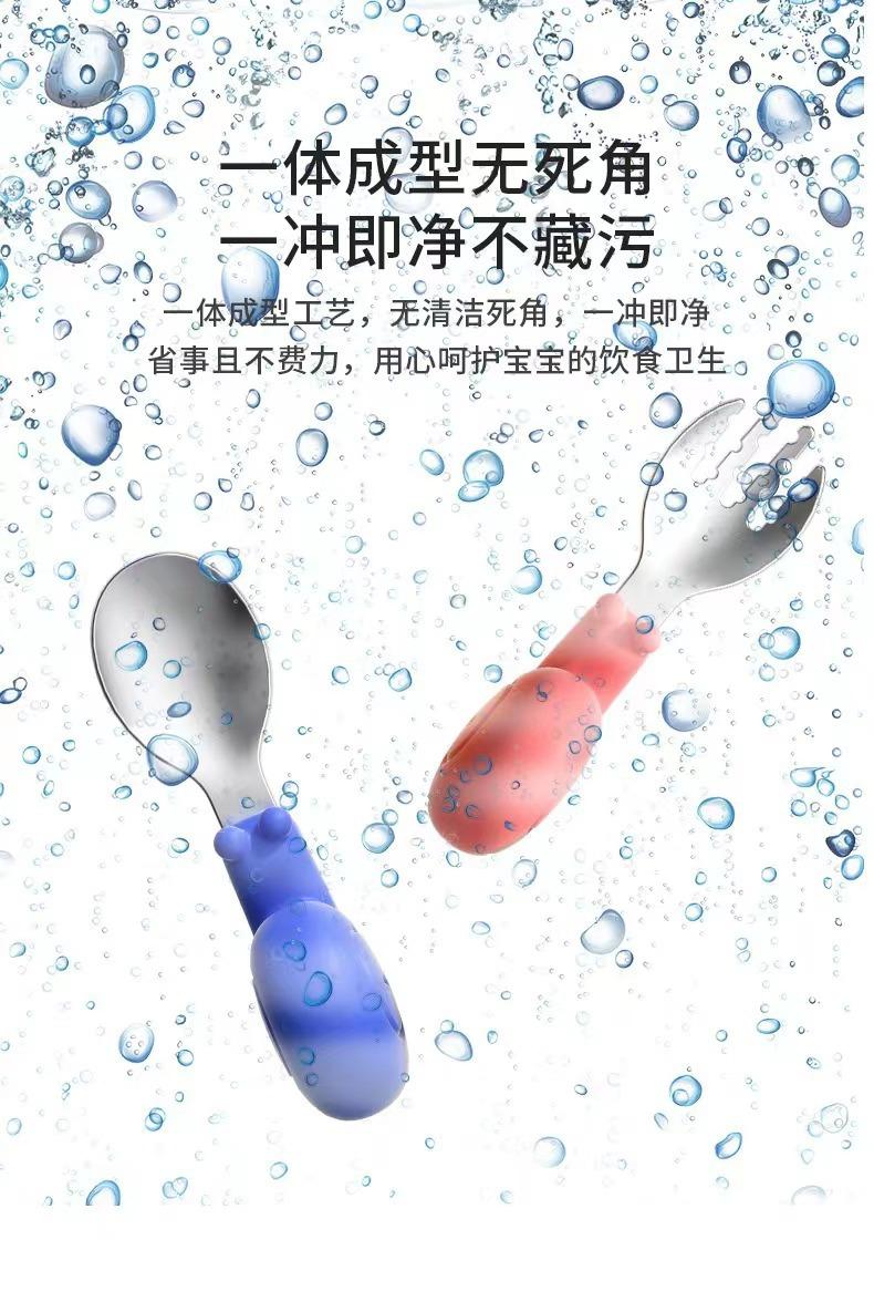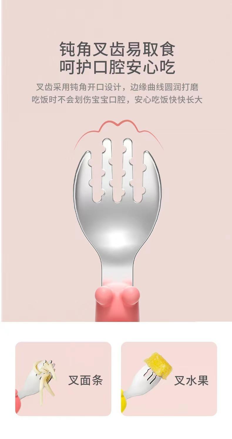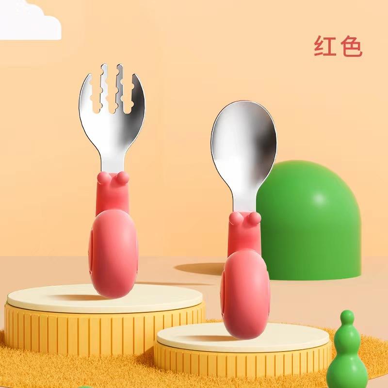 Tenedor y cuchara de silicona para comida de bebé, mango corto, de acero inoxidable, cuchara de entrenamiento para aprender a comer comida de bebé, cuchara para bebé