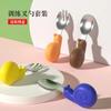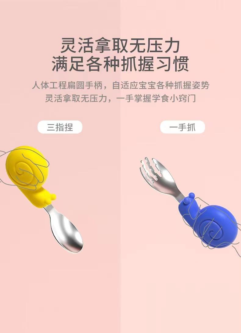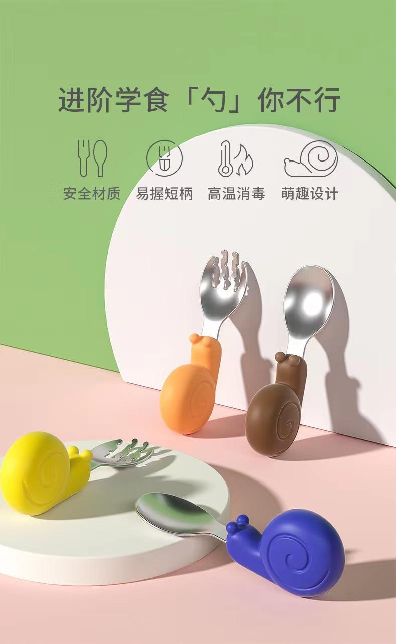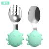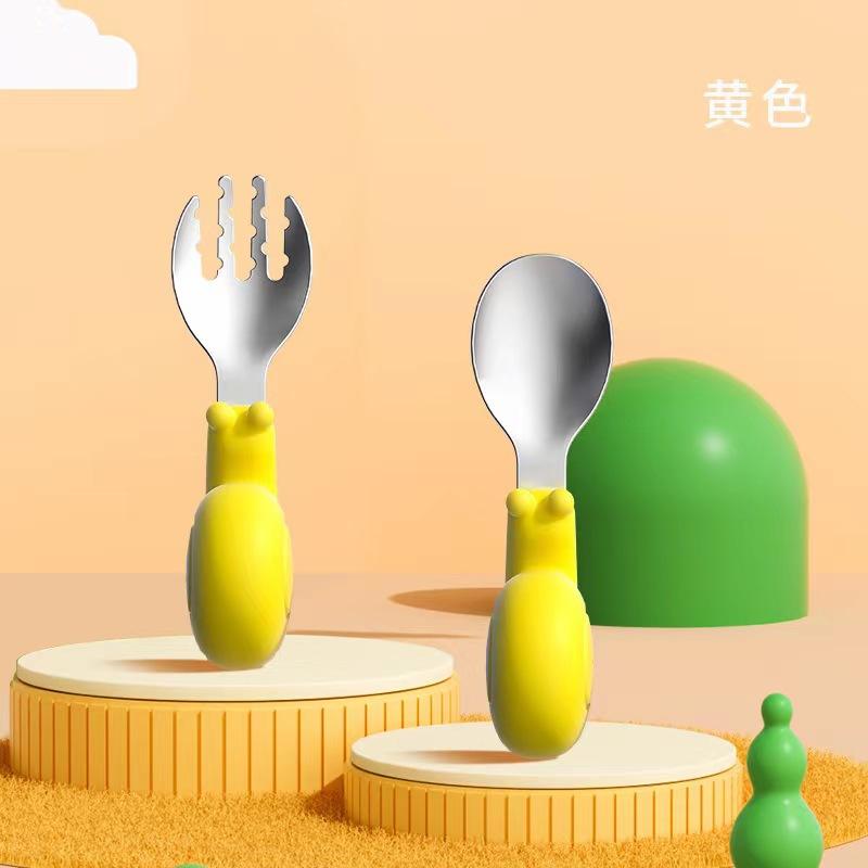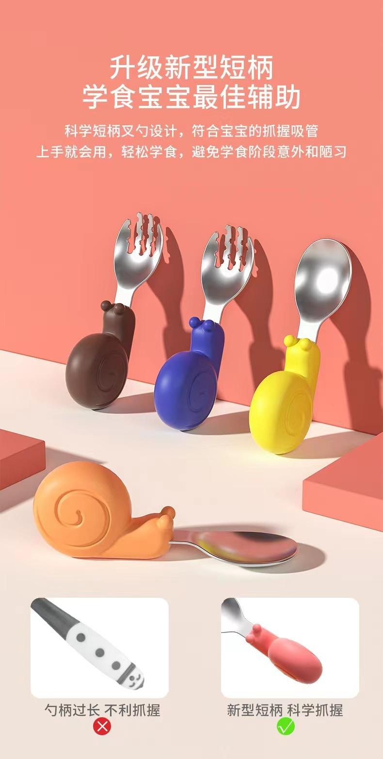 Tenedor y cuchara de silicona para comida de bebé, mango corto, de acero inoxidable, cuchara de entrenamiento para aprender a comer comida de bebé, cuchara para bebé