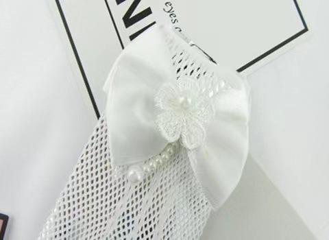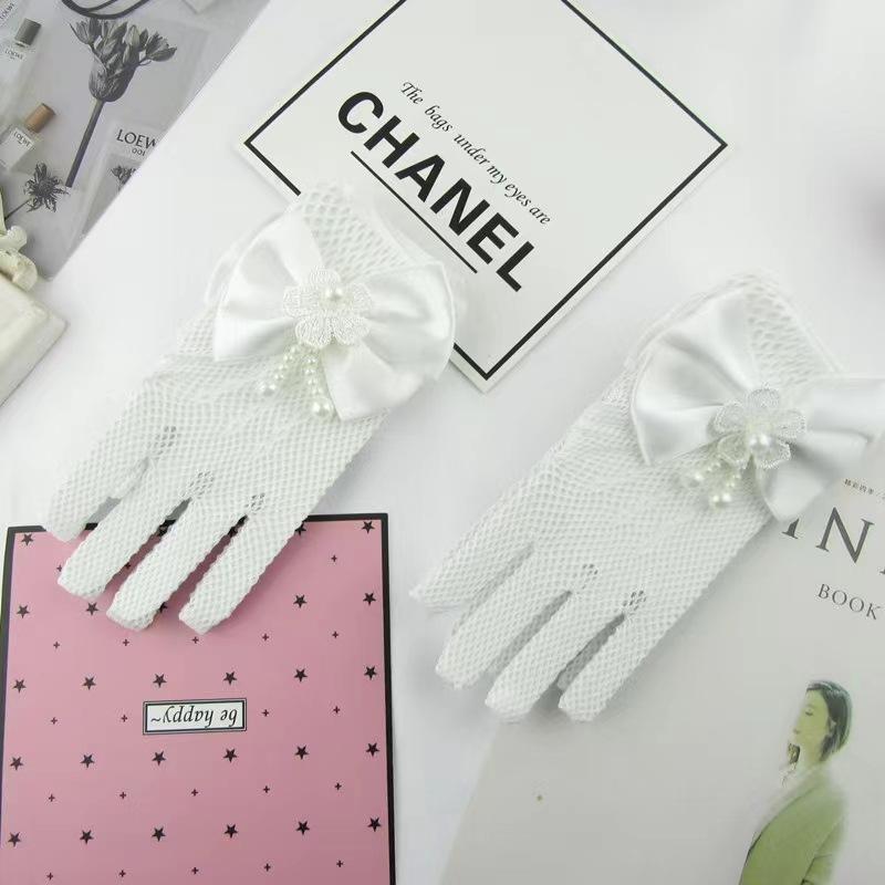 Guantes de etiqueta de malla fina para niños de primavera y verano con lazo elástico y flores para niños de secundaria, guantes blancos para bailar.