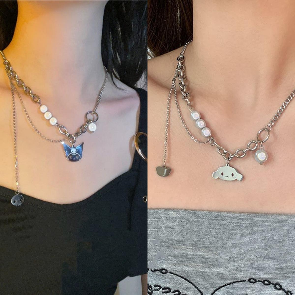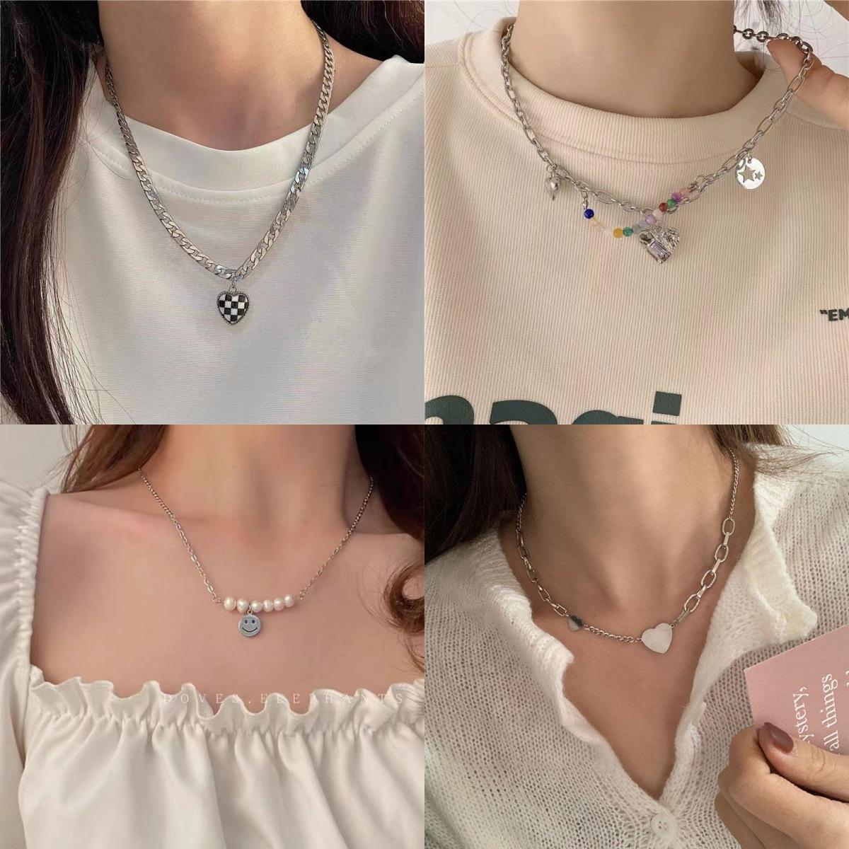Purple Diamond Inclined Love Necklace, Ot buckle pearl blue butterfly necklace, GOLD PEARL NECKLACE, Size love...