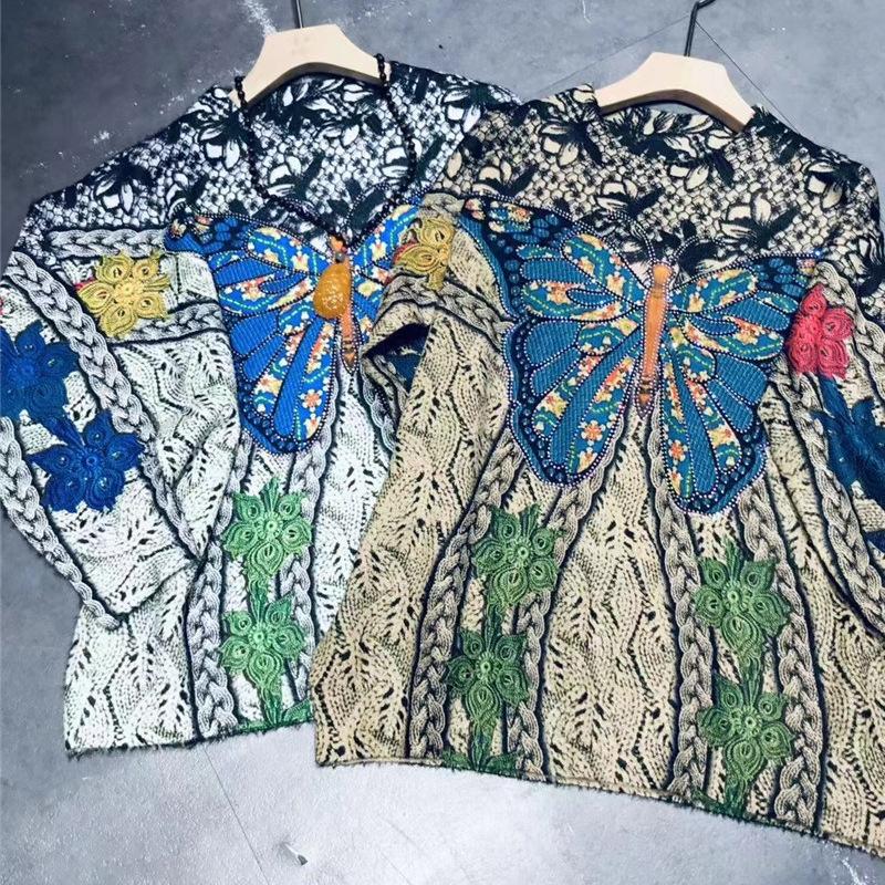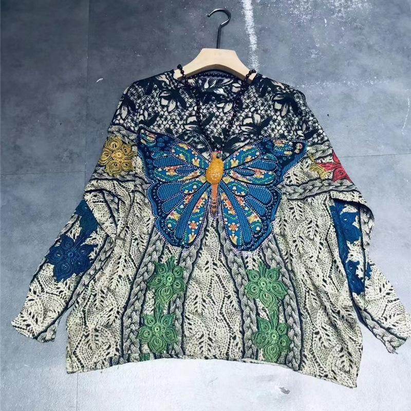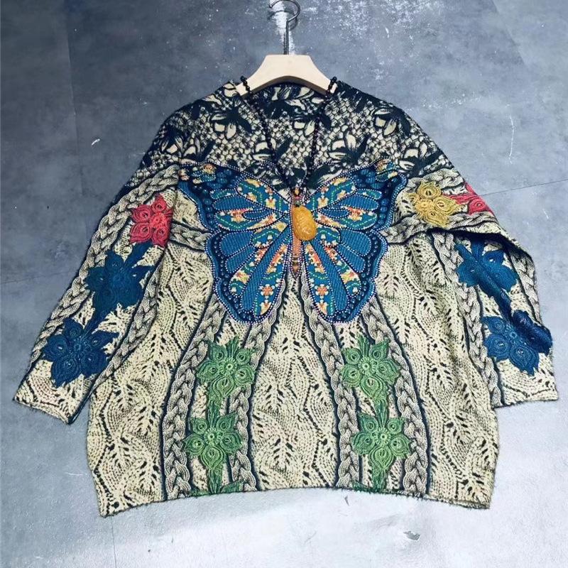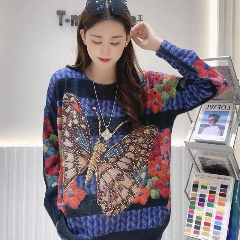Suéter de punto de lana de comercio exterior europeo para mujer, nuevo otoño e invierno 2023, holgado con estampado de estilo perezoso, talla grande, manga larga