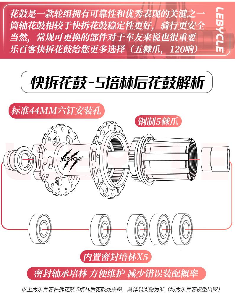 Maza de Bicicleta de Montaña 5 Rodamientos 120 Súper Ruidosa Trinquete de Cinco Patas Base de Torre Universal 32 Agujeros 36 Juego de Ruedas de Liberación Rápida Llanta