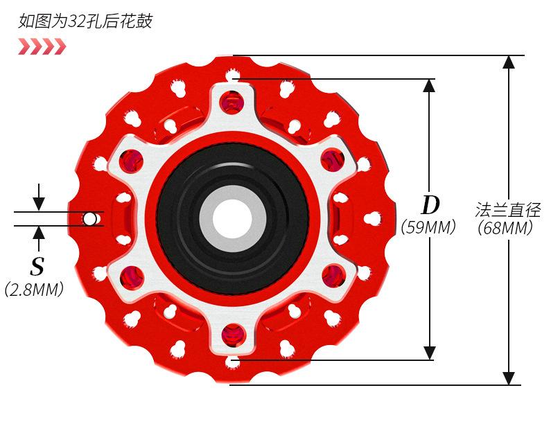 2 Peilin front flower drum-Black (32 holes), 5 Peilin rear flower drum-Black (32 holes), Front 2 rear 5 Peilin...
