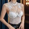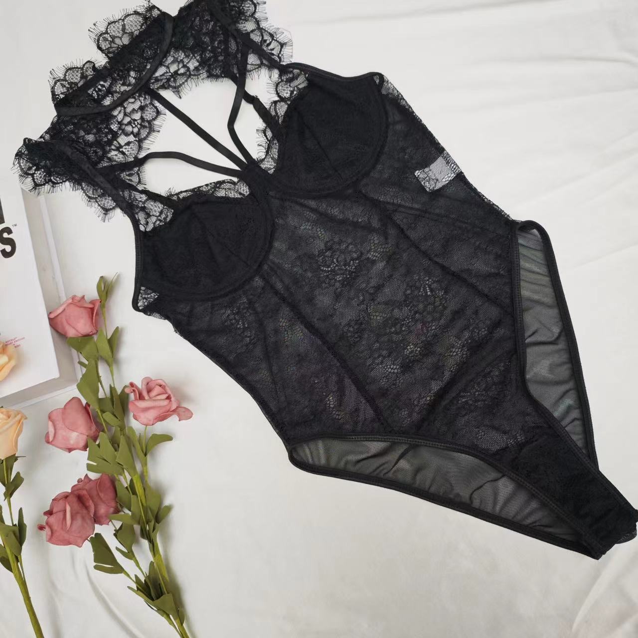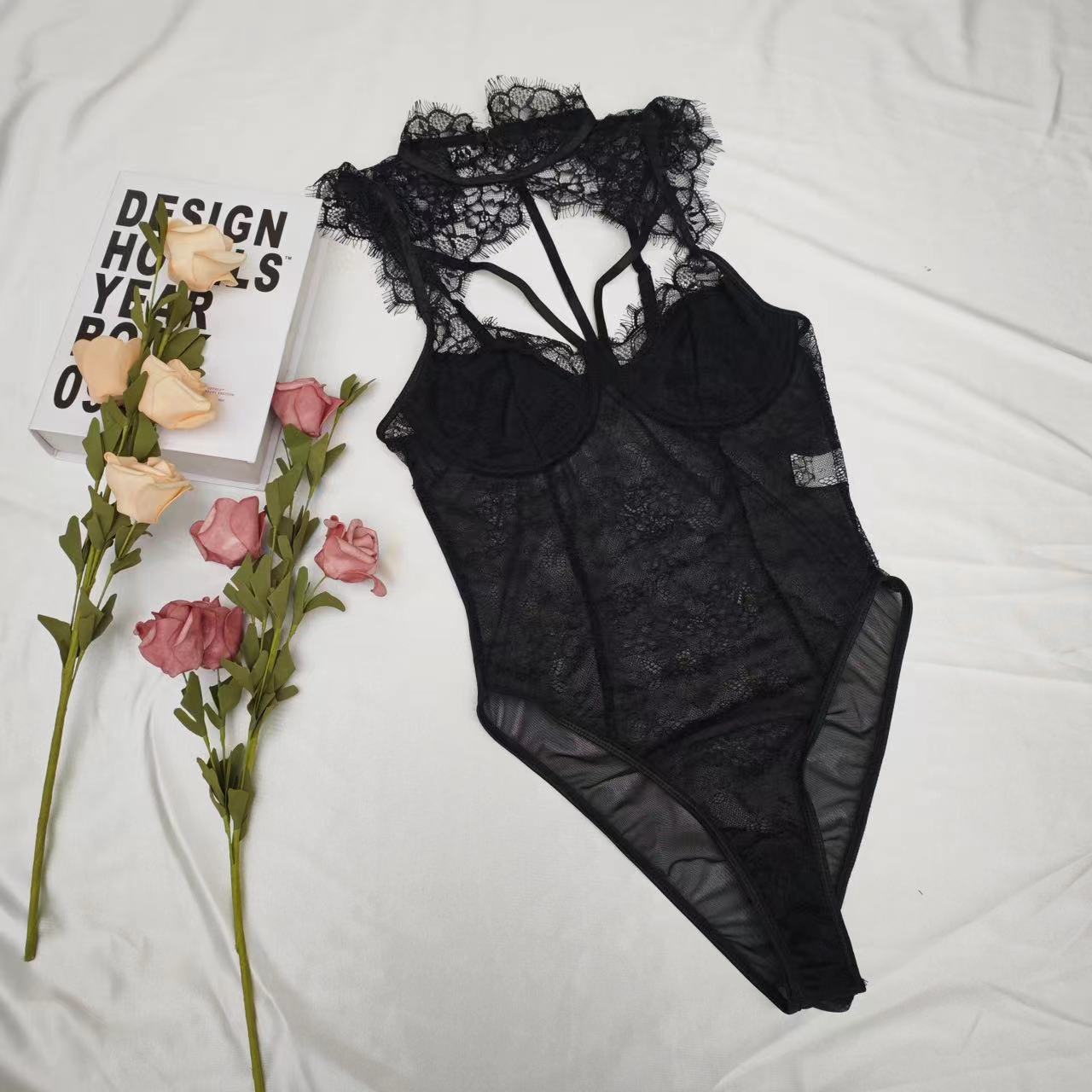 2024 Aliexpress Amazon Moda Europea y Americana de Primavera y Verano Sexy Salvaje Cuello Redondo Encaje Pestañas Encaje Mono