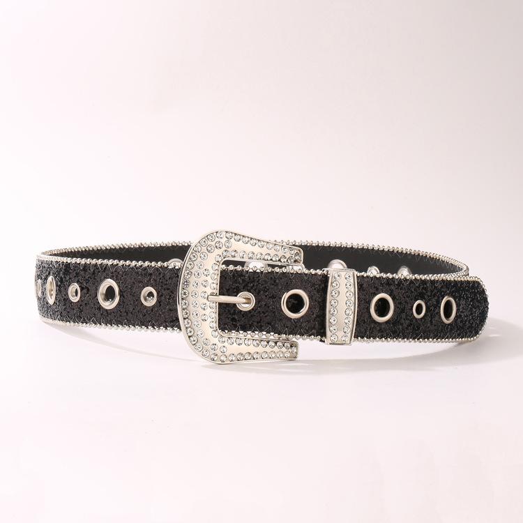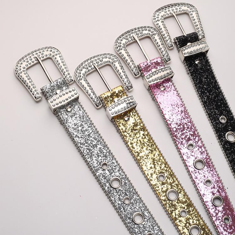 Cinturón de Lentejuelas Versátil de Moda para Mujer, Cinturón de Pedrería Personalizado Estilo Ins, Cinturón Ancho Decorativo para Jeans, Venta al por Mayor en Stock 1