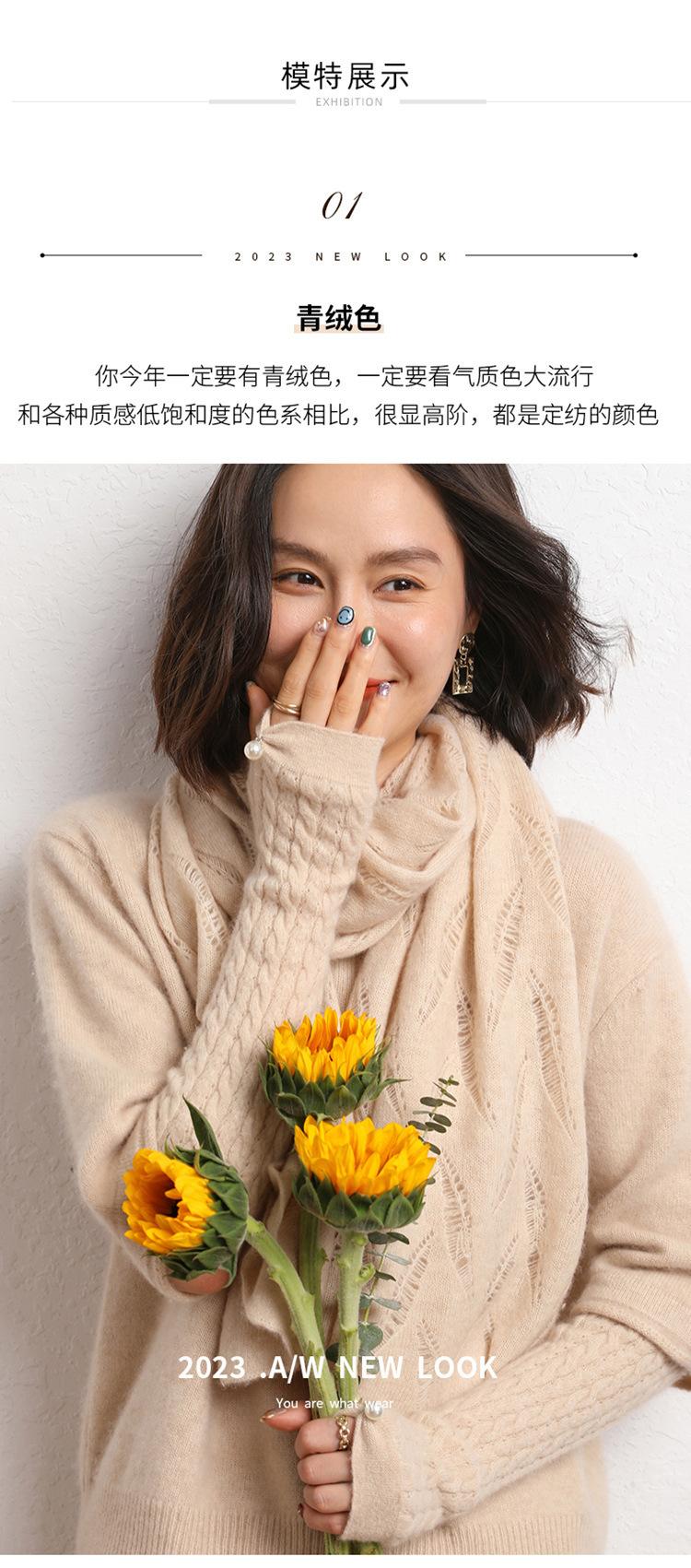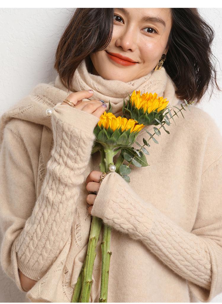 Suéter 100% de lana pura para mujer, suéter de punto grueso con cuello alto y media manga, suéter de cachemira de hilo de puntos de nuevo estilo para otoño e invierno.