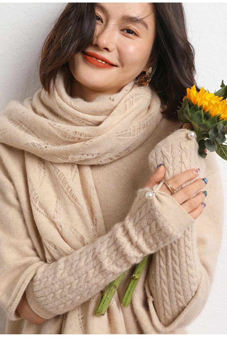 Cachemira 2023 otoño e invierno nuevo de moda para mujer combinable manga de brazo torcida de una sola hebra guantes largos de punto sin dedos