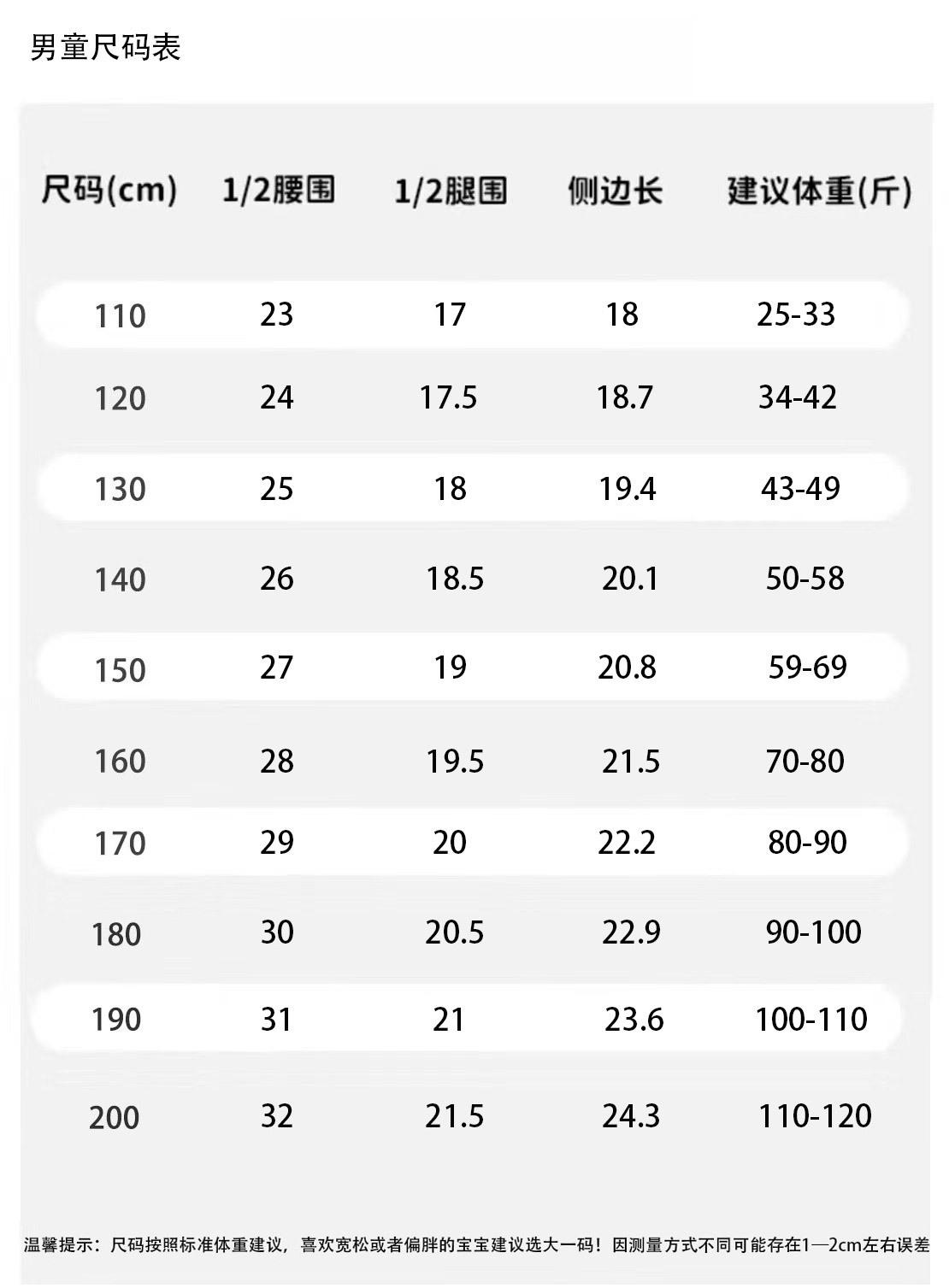 110cm, 120cm, 130cm, 140cm, 150cm, 160cm, 170cm