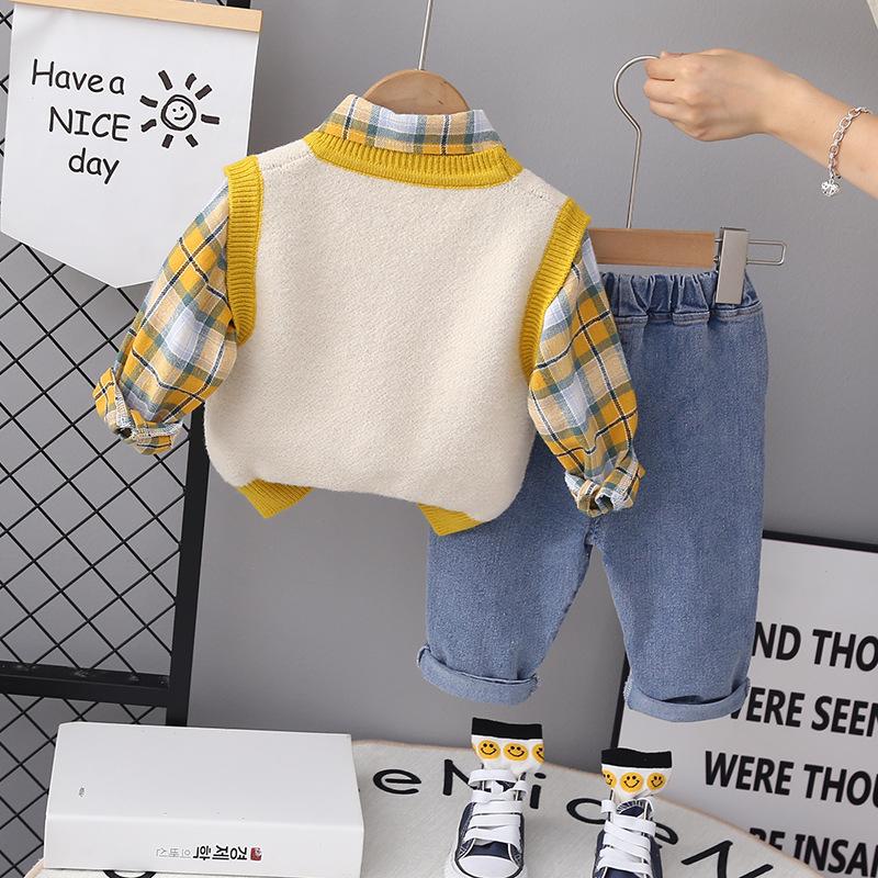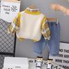Ropa para niños, traje de primavera y otoño para niños, traje de tres piezas estilo súper occidental para bebés, ropa de otoño para niños, nueva moda coreana 2023