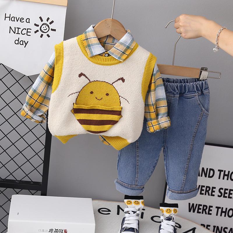 Bee sweater three-piece set yellow, Bee sweater three-piece set Brown