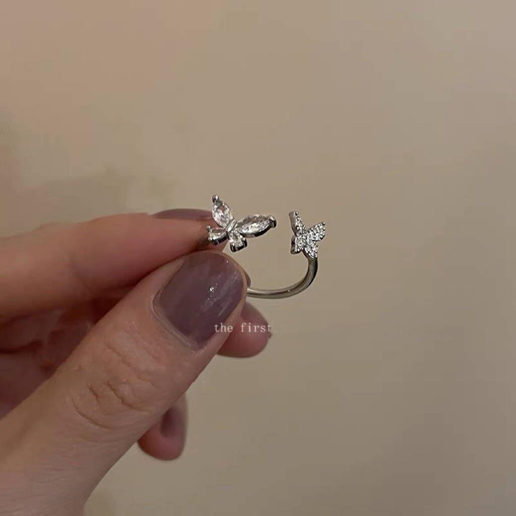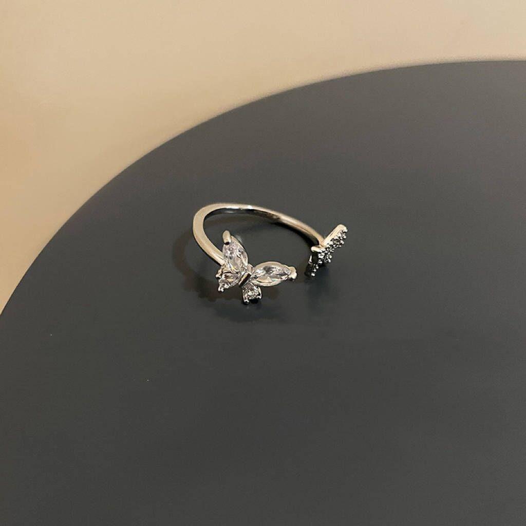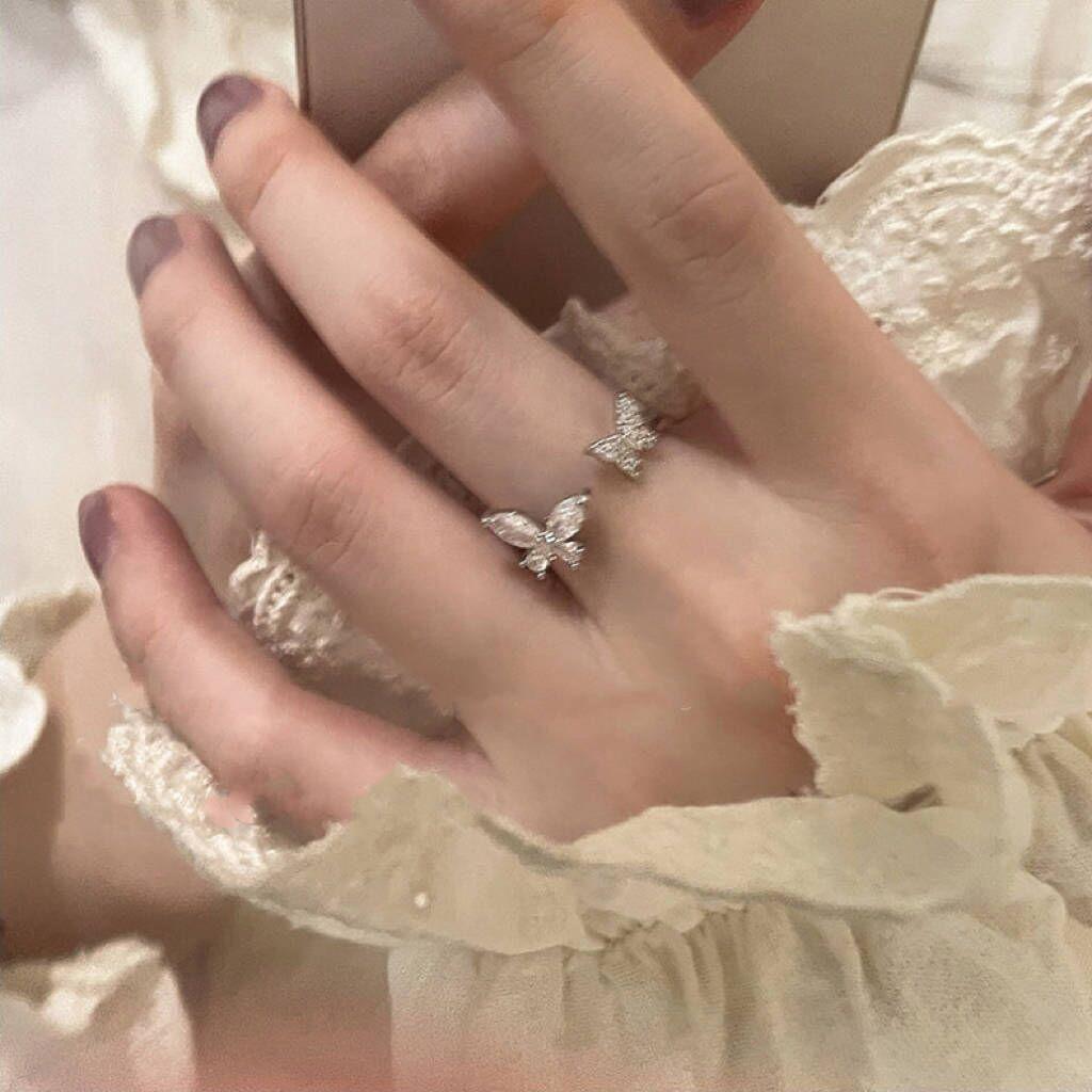 Anillo Abierto de Circonita de Mariposa de Alta Calidad para Mujer, Moda Ins, Anillo de Dedo Distintivo de Moda, Diseño Nicho de Lujo Ligero