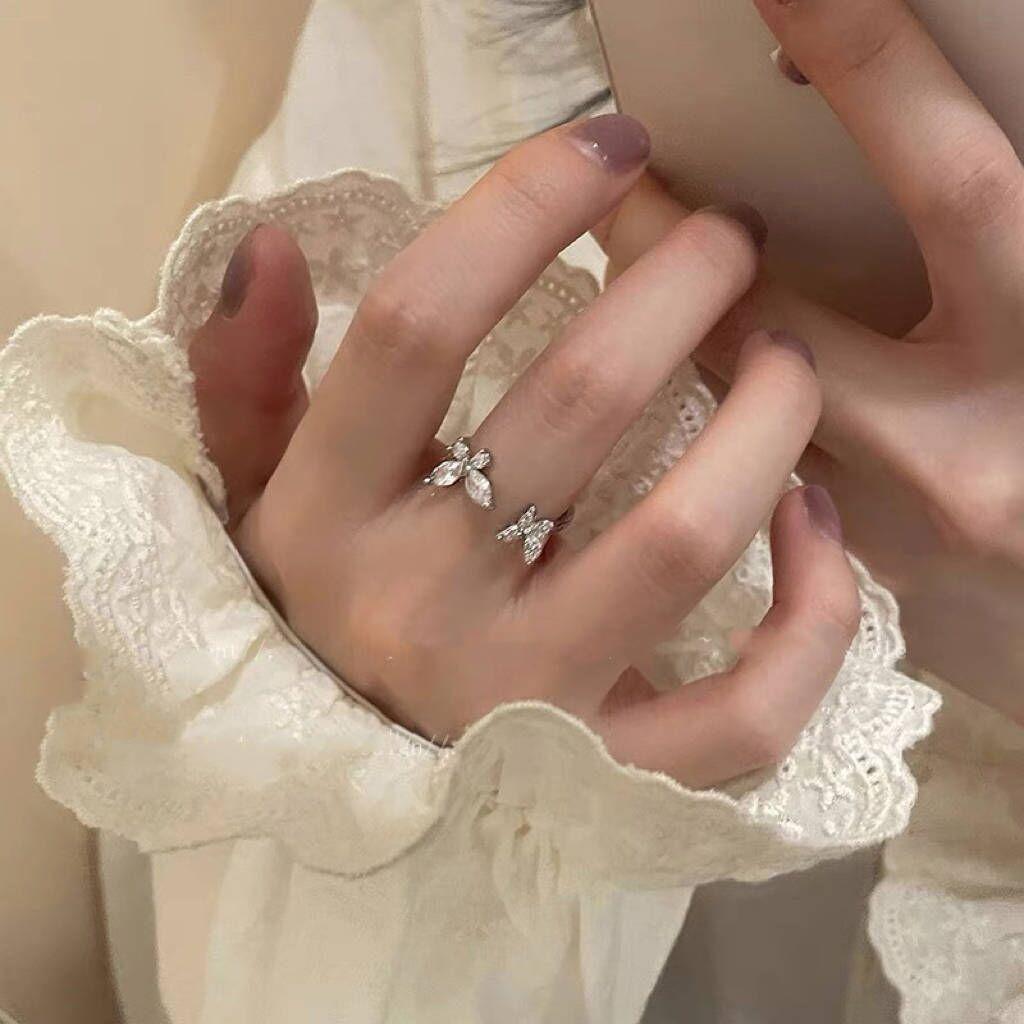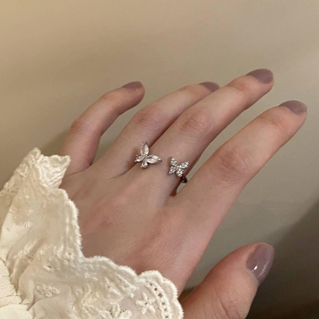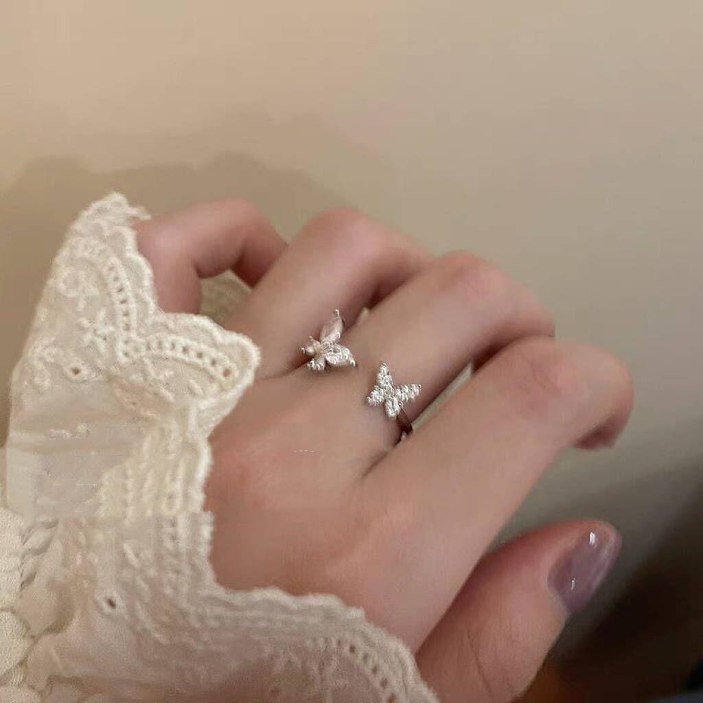 Anillo Abierto de Circonita de Mariposa de Alta Calidad para Mujer, Moda Ins, Anillo de Dedo Distintivo de Moda, Diseño Nicho de Lujo Ligero
