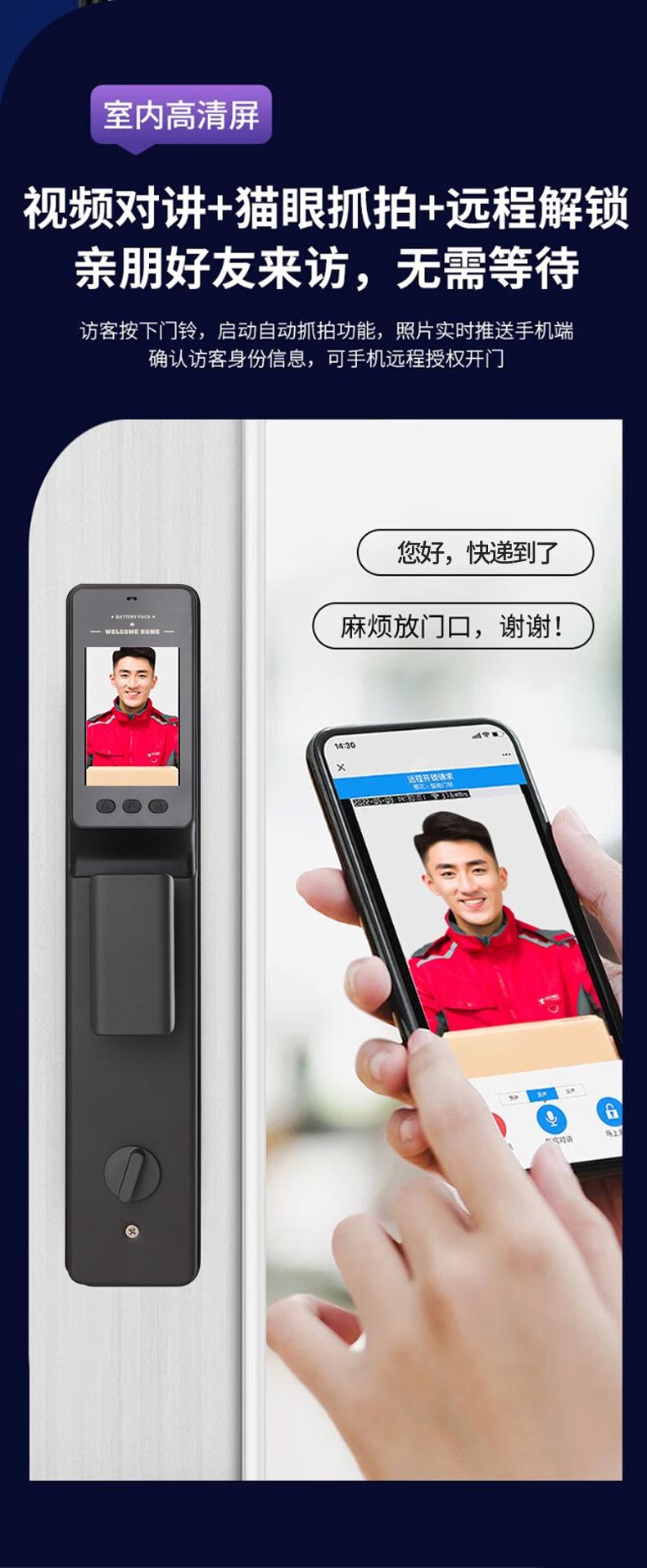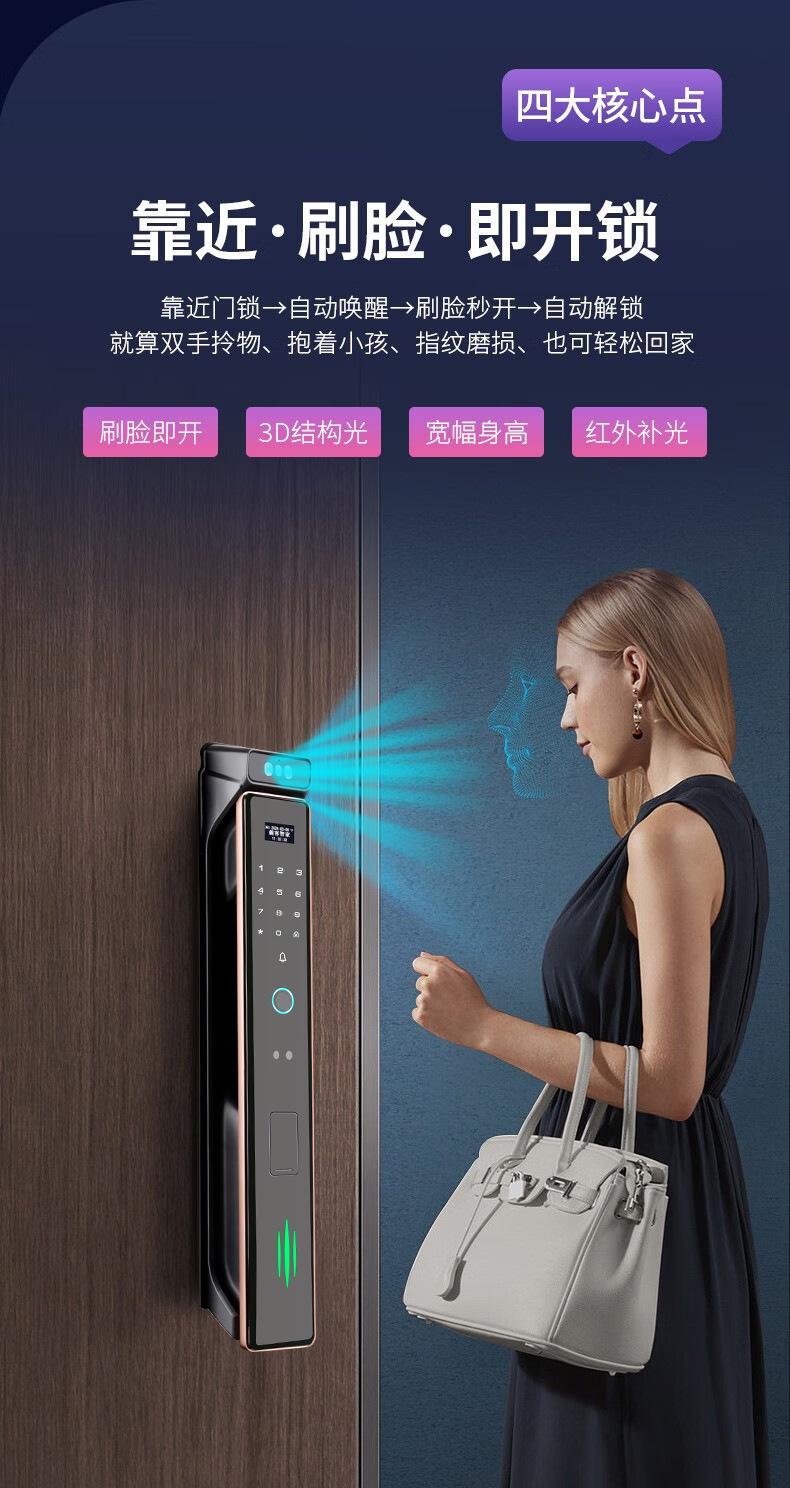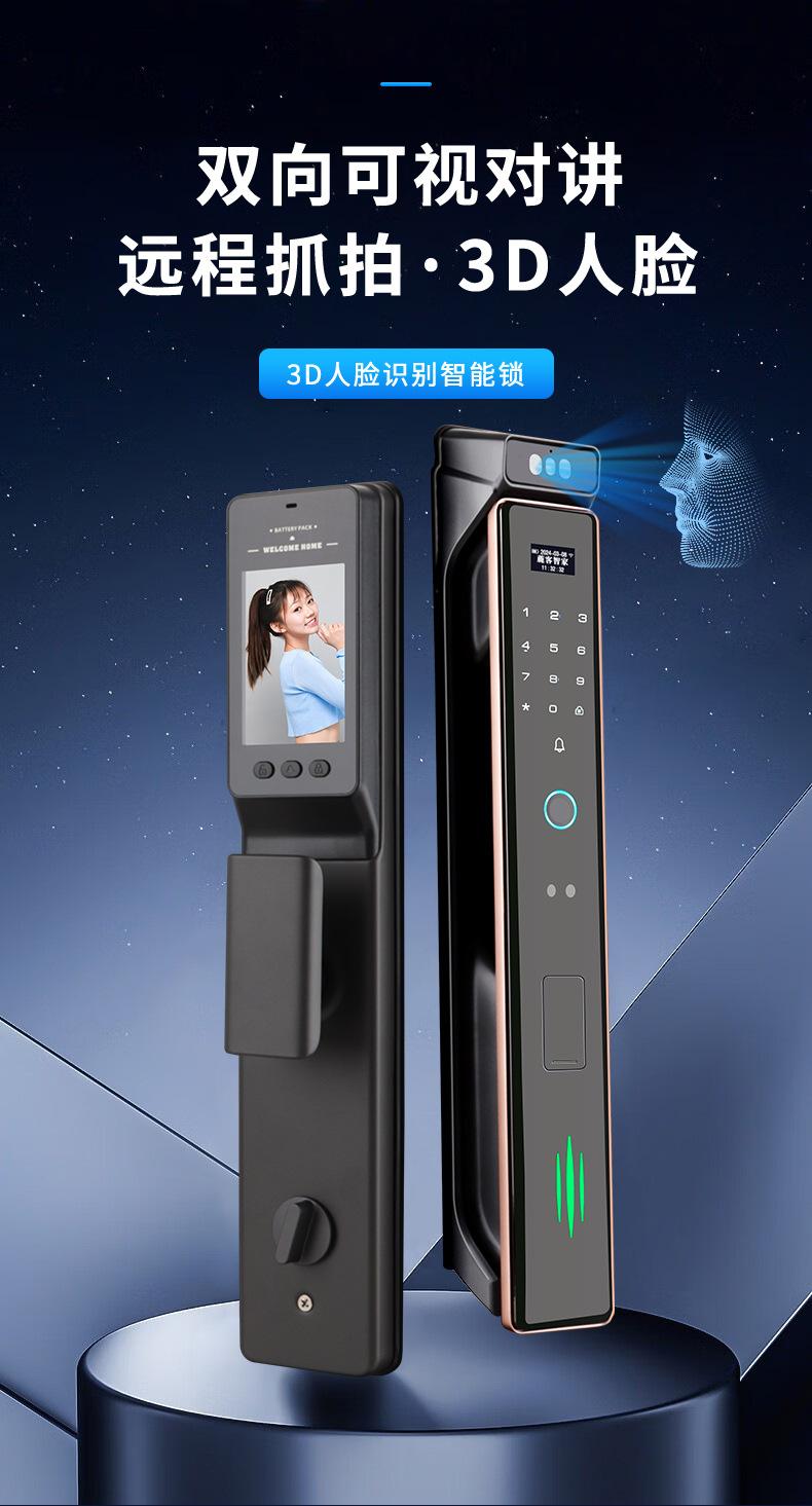 Monitoreo de reconocimiento facial 3D, bloqueo de huellas dactilares, bloqueo automático de contraseña, bloqueo electrónico inteligente para el hogar, captura de intercomunicador, vena de la palma