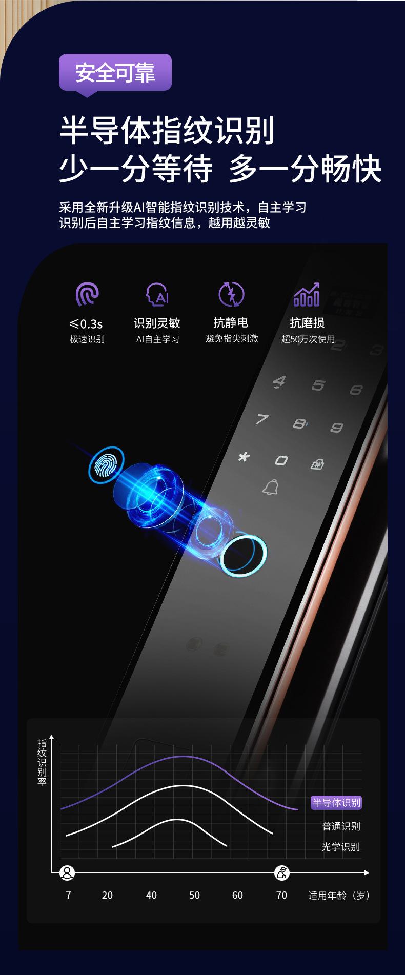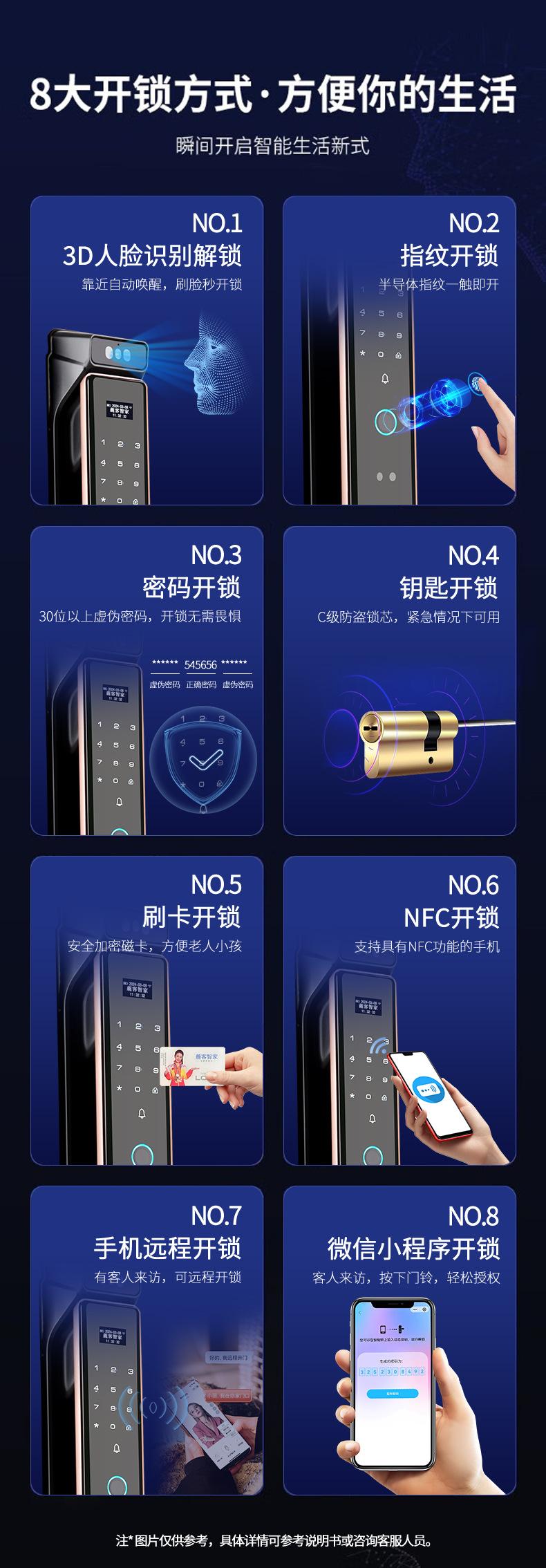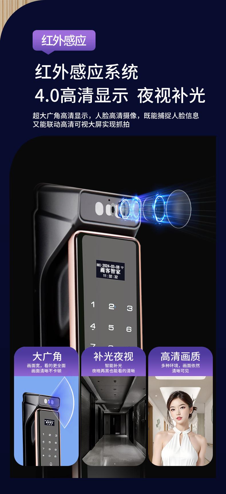 Monitoreo de reconocimiento facial 3D, bloqueo de huellas dactilares, bloqueo automático de contraseña, bloqueo electrónico inteligente para el hogar, captura de intercomunicador, vena de la palma
