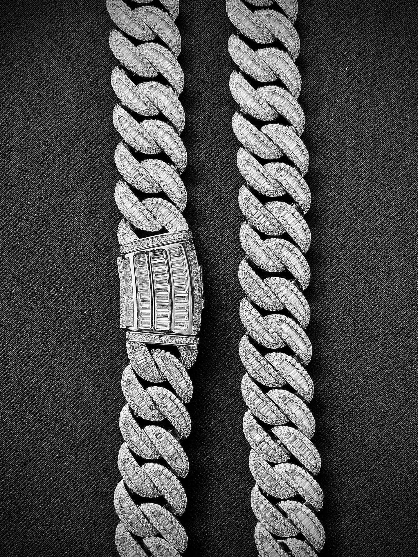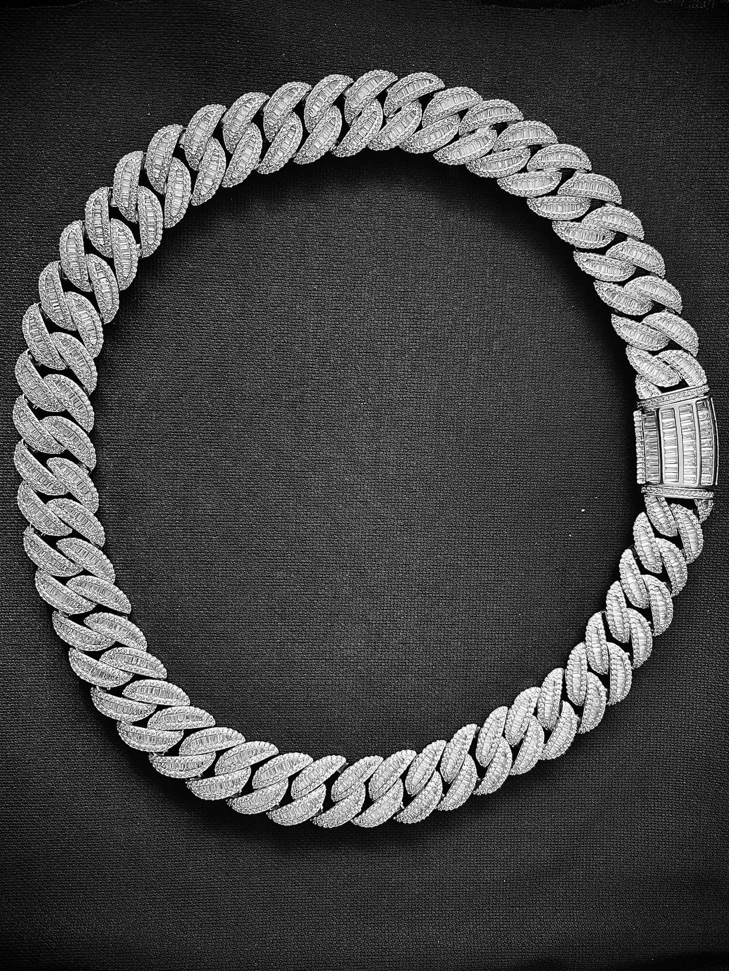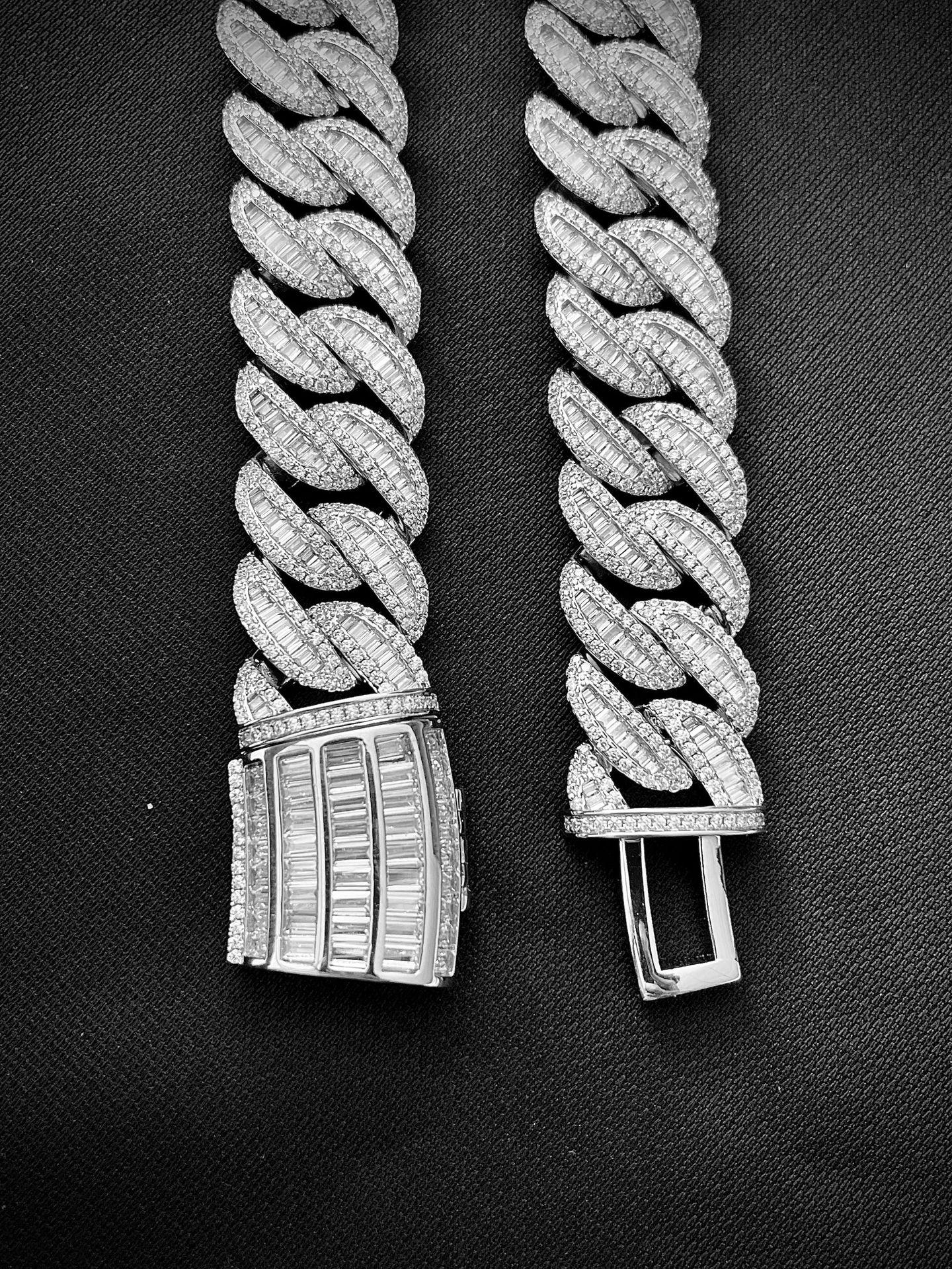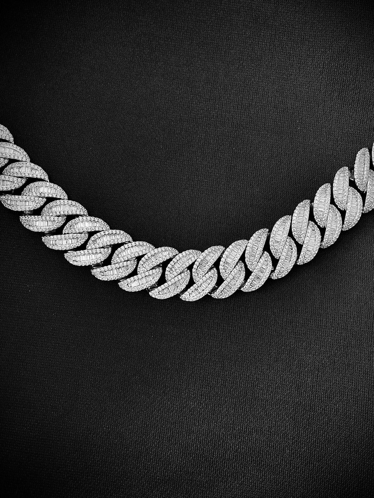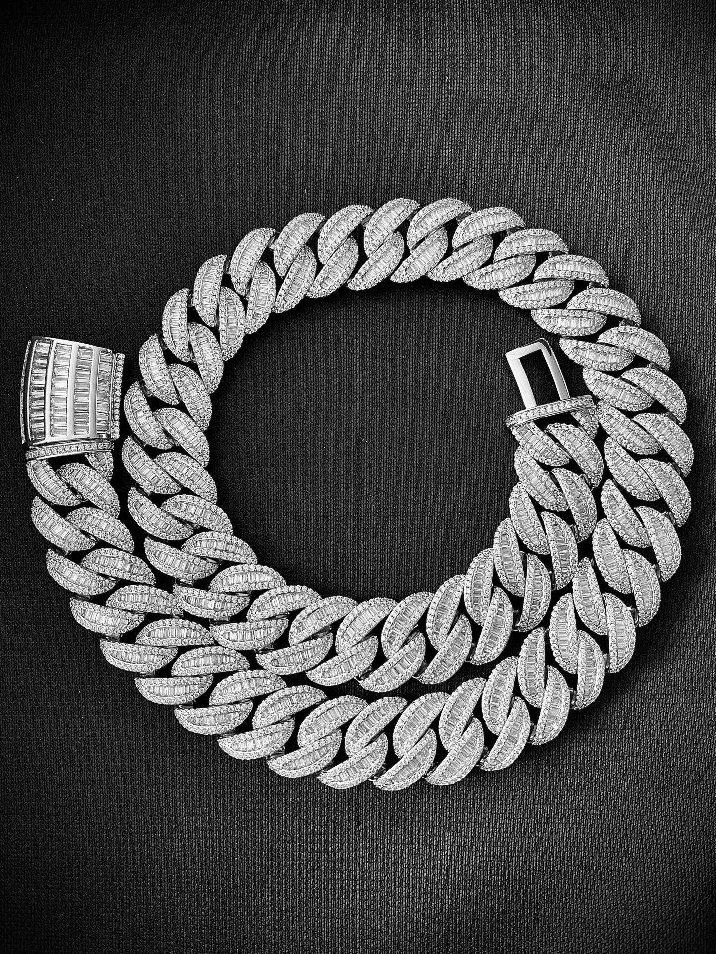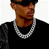 Collar de hip-hop con cadena cubana de diamantes cuadrados de 19 mm y diseño transfronterizo europeo y americano.