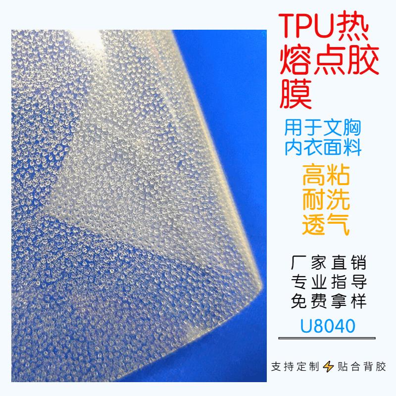 u8040, película PET dispensadora de polvo adhesivo termofusible de TPU, puntos de pegamento transferibles, generalmente utilizada para dispensación perimetral de ropa interior sin costuras y dispensación de tejido de ropa, con las características de lavabilidad, transpirabilidad, recubrimiento uniforme de pegamento, buena viscosidad, etc., en grandes cantidades puede proporcionar servicios personalizados de corte y dispensación.![]() ![]() ![]() ![]() ![]()