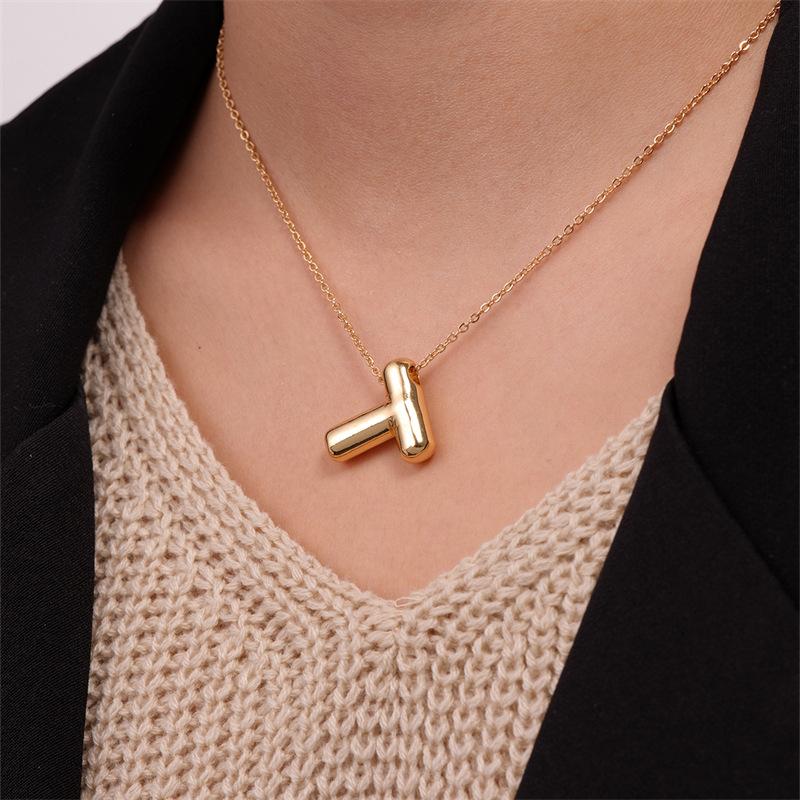 Collar con colgante de 26 letras inglesas, estilo europeo y americano, de moda transfronteriza de otoño e invierno para mujer, de alto sentido, sencillo, de lujo y ligero.