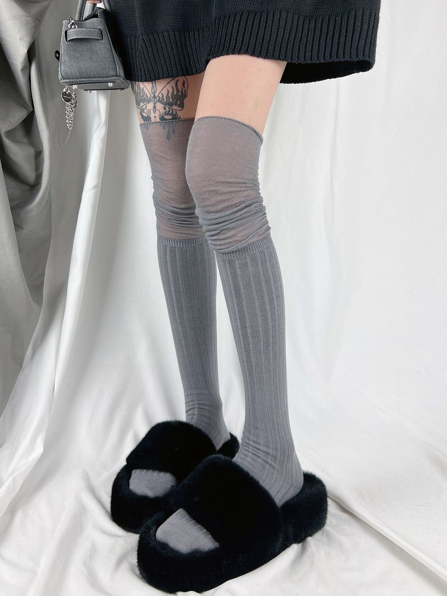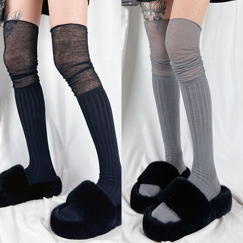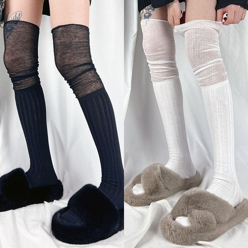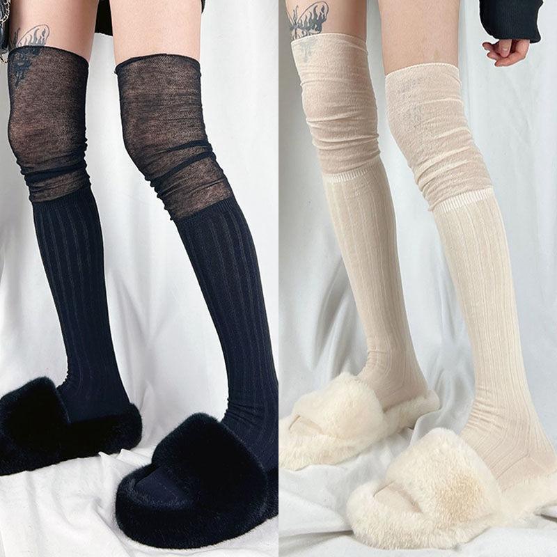 Calcetines por encima de la rodilla con costuras para mujer, de primavera y verano, finos, beige, japoneses, largos, color blanco leche, hasta el muslo, nuevos calcetines apilados