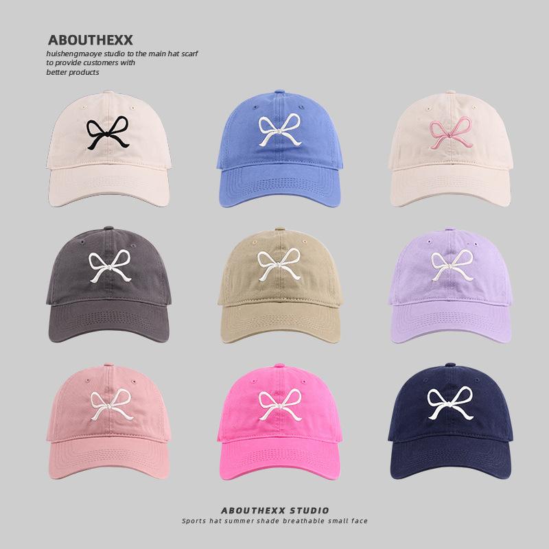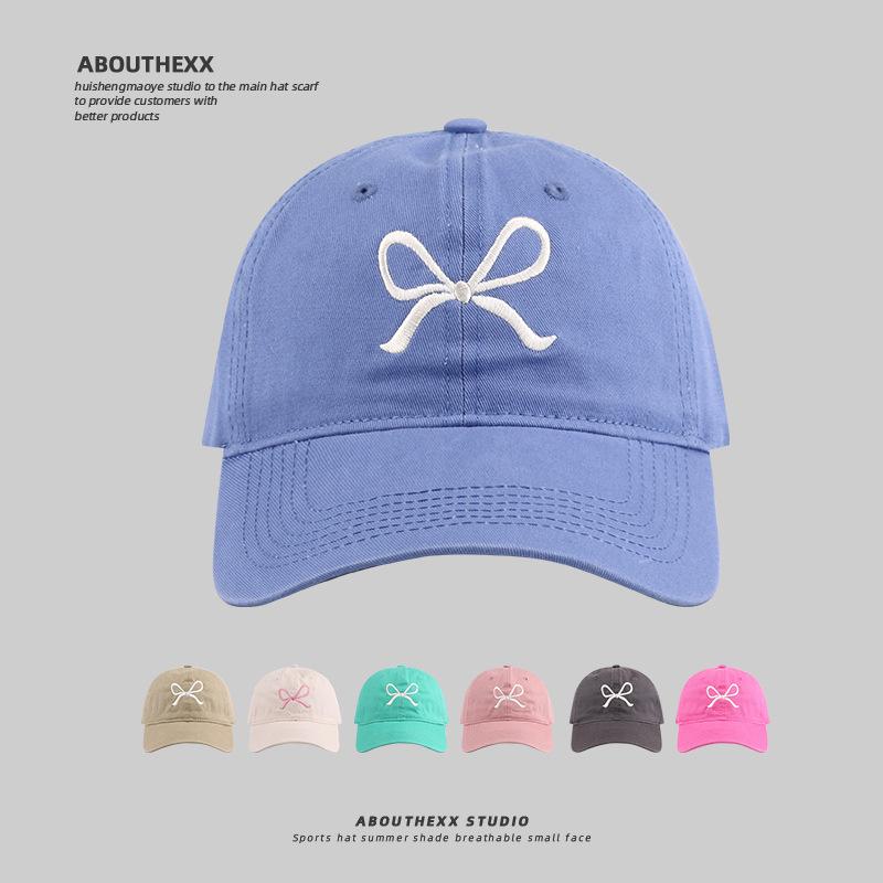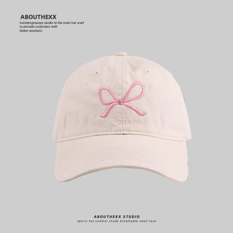 2024 Nueva Corea del Sur patrón de bordado de lazo gorra con visera para mujer que realza el rostro, gorra de béisbol dulce a prueba de sol para estudiante de primaria