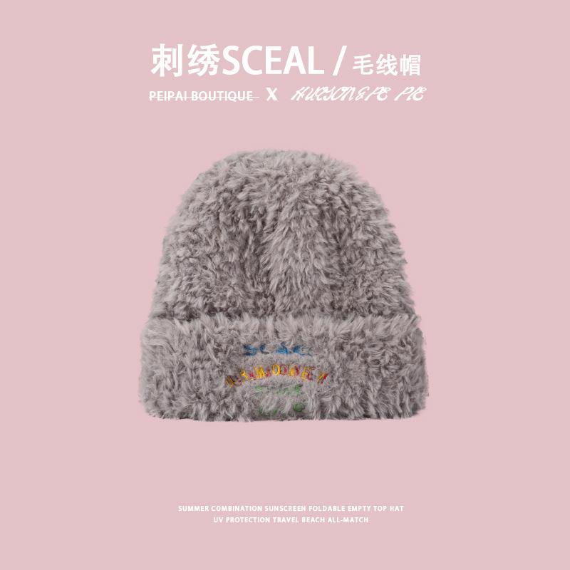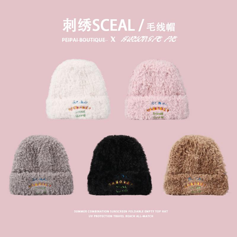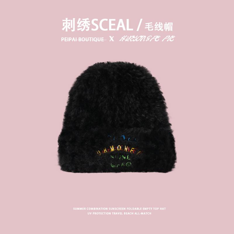 C3148 embroidered sceal plush hat Black, C3148 embroidered sceal Plush Hat Khaki, C3148 embroidered sceal plus...