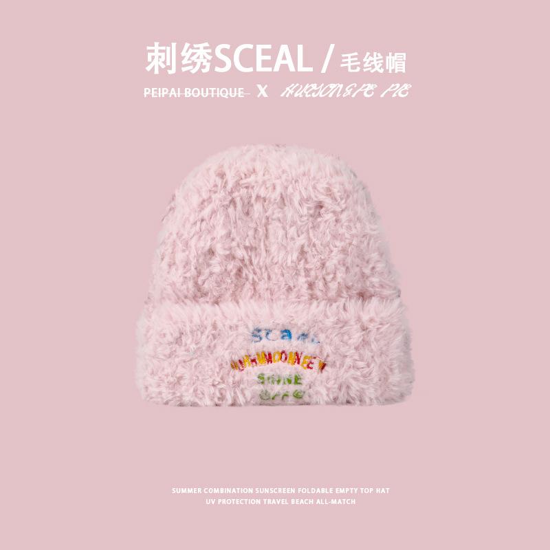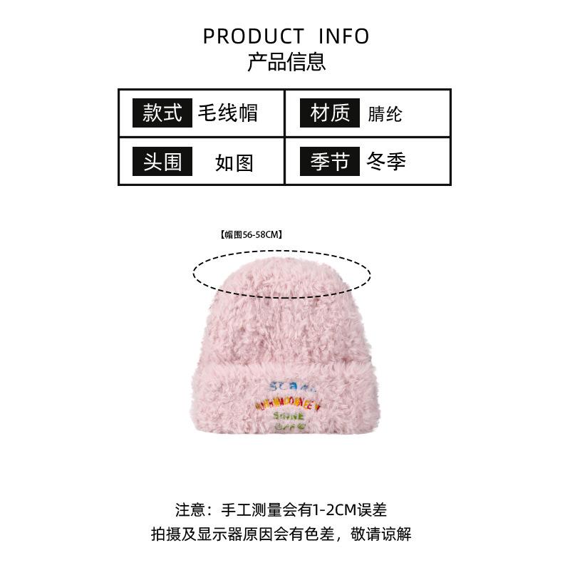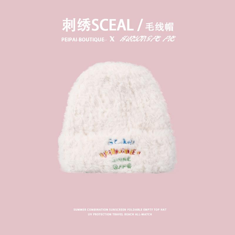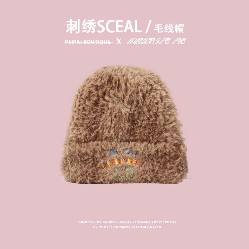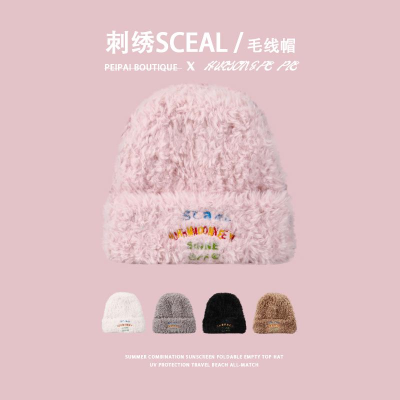 Gorro de lana de otoño e invierno para mujer, con letras de nicho, nuevo gorro cálido para estudiantes, orejeras a prueba de viento, gorro de felpa cómodo