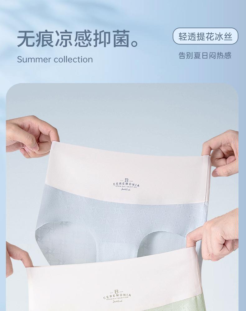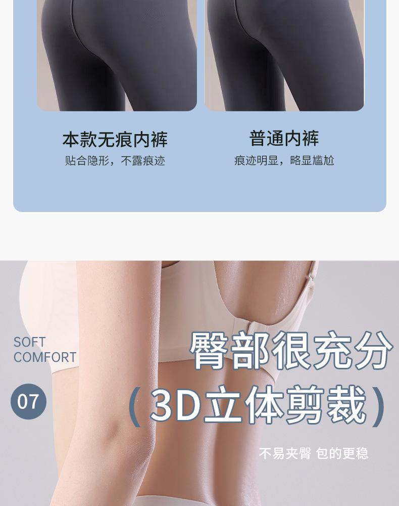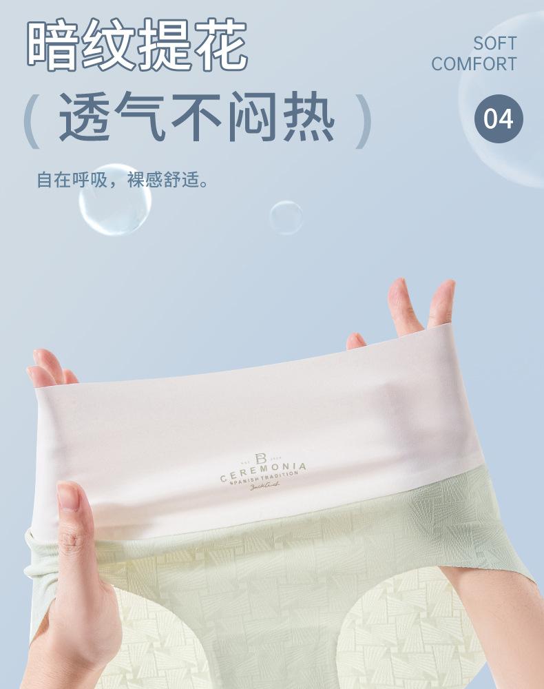 Traceless ice silk cool feeling girls underwear waist 7A antibacterial cotton bottom file 3D three-dimensional...