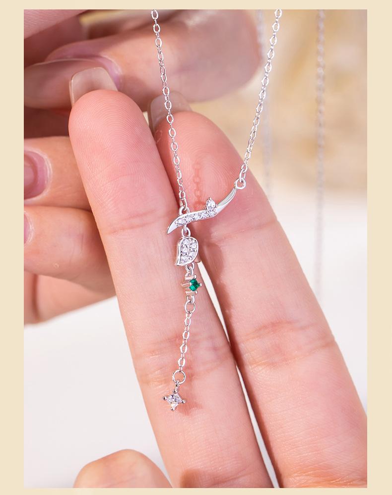 Collar de copo de nieve de plata esterlina 925 para mujer, estilo dulce y lindo, con piedra de vidrio a la deriva, cadena de clavícula con colgante navideño.