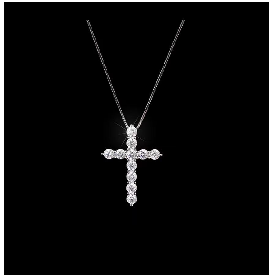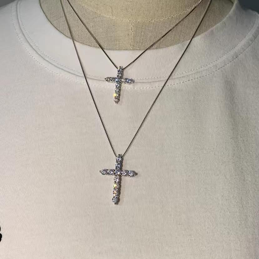 Nuevo collar americano con cruz de diamantes, de alta gama, de lujo, con diseño de nicho, cadena de clavícula de titanio y accesorios.