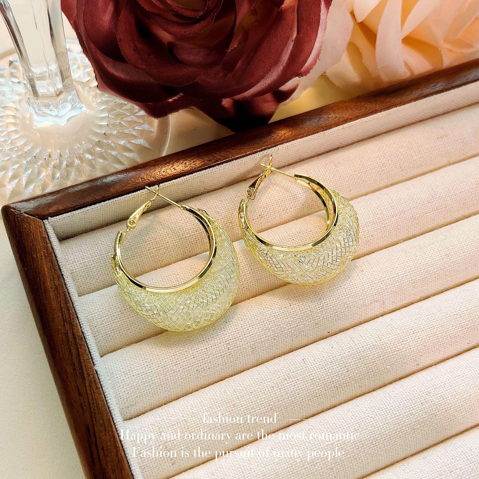 Pendientes de aro de metal de estilo frío y sencillo con aguja de plata S925, con hebilla para la oreja, para otoño e invierno, de alta gama, ligeros y lujosos, para mujer