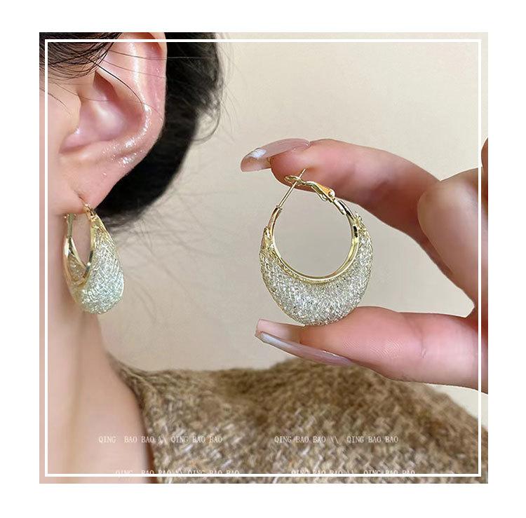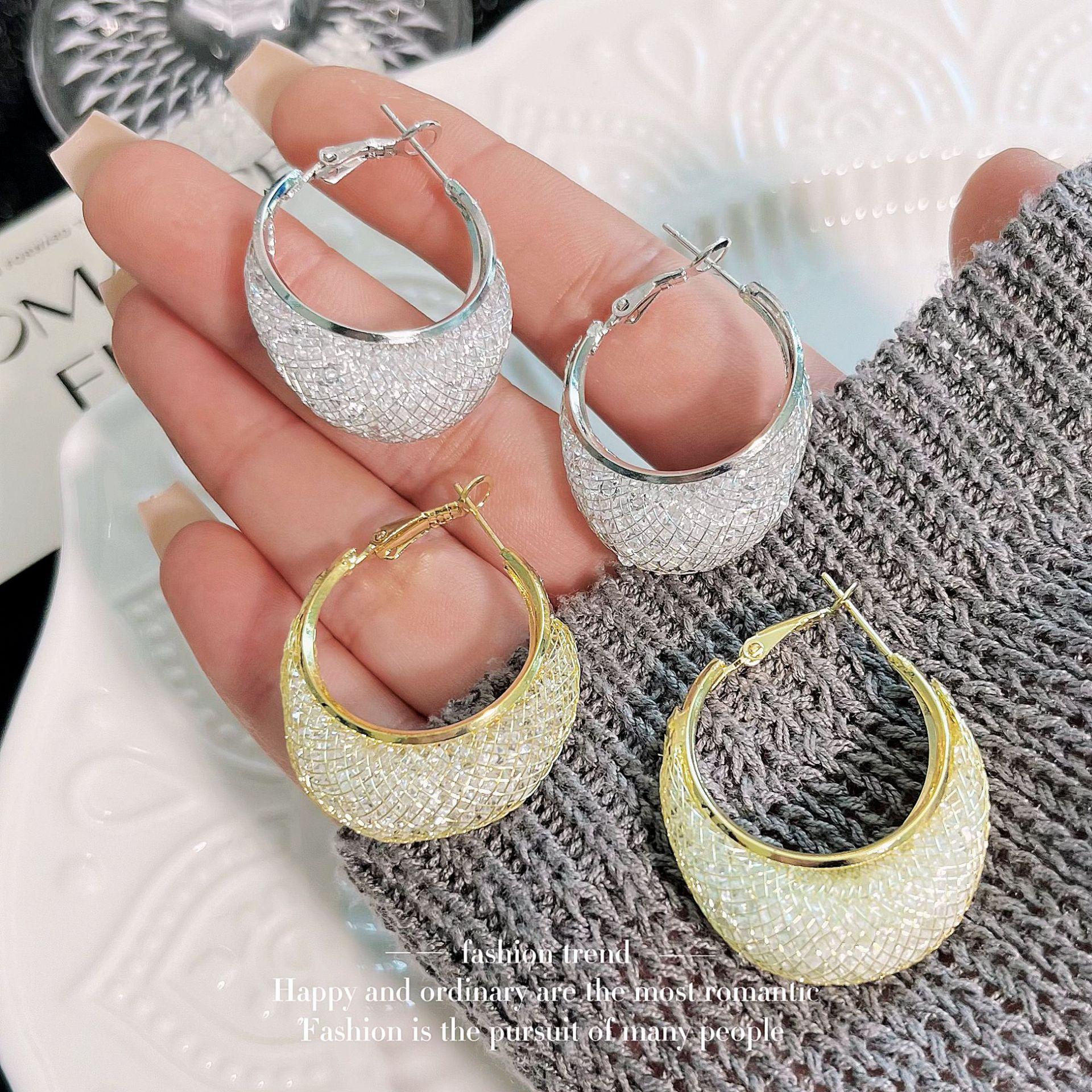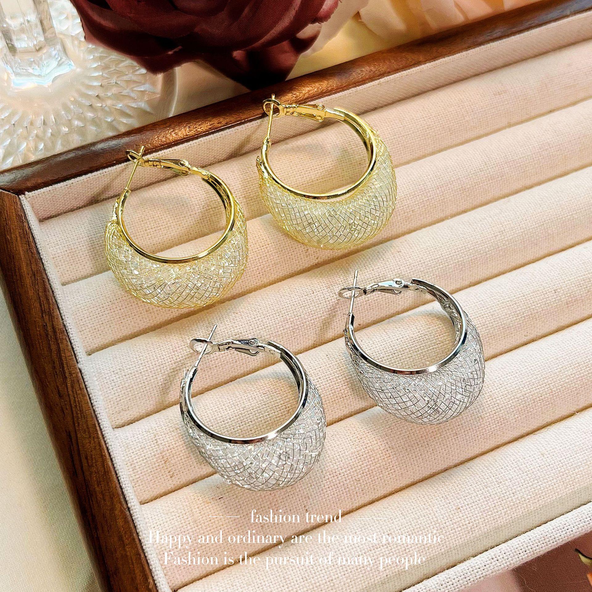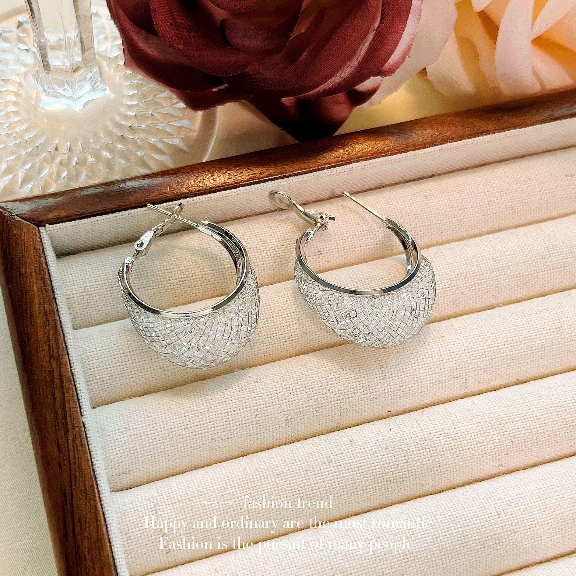 Pendientes de malla hueca Advanced Sense para mujer, diseño de nicho de aguja de plata s925, pendientes de circonitas brillantes, pendientes de lujo ligeros y personalizados.