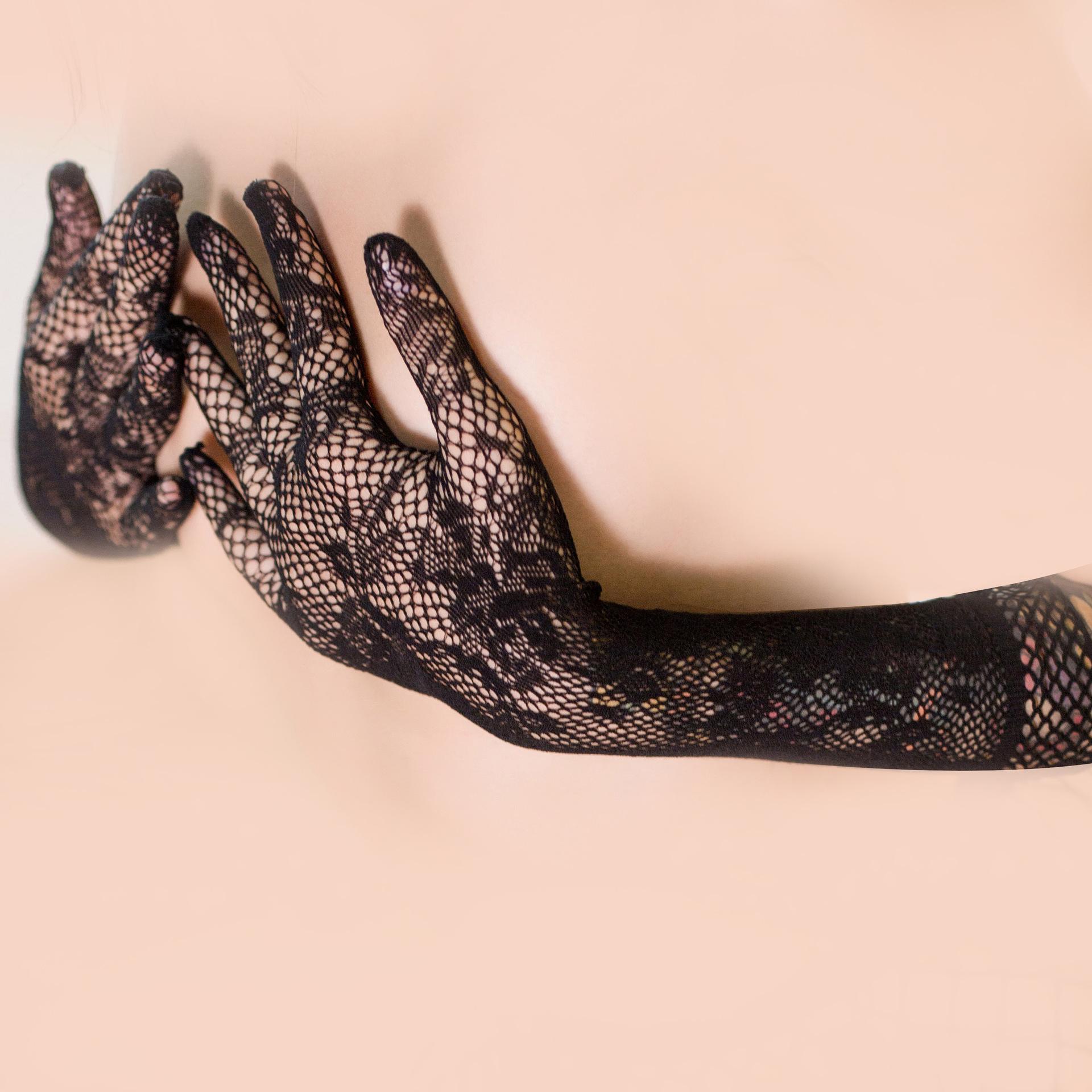 Accesorios de lencería sexy, guantes de encaje de tentación sexy, perspectiva de alta elasticidad, guantes largos de boda en blanco y negro.
