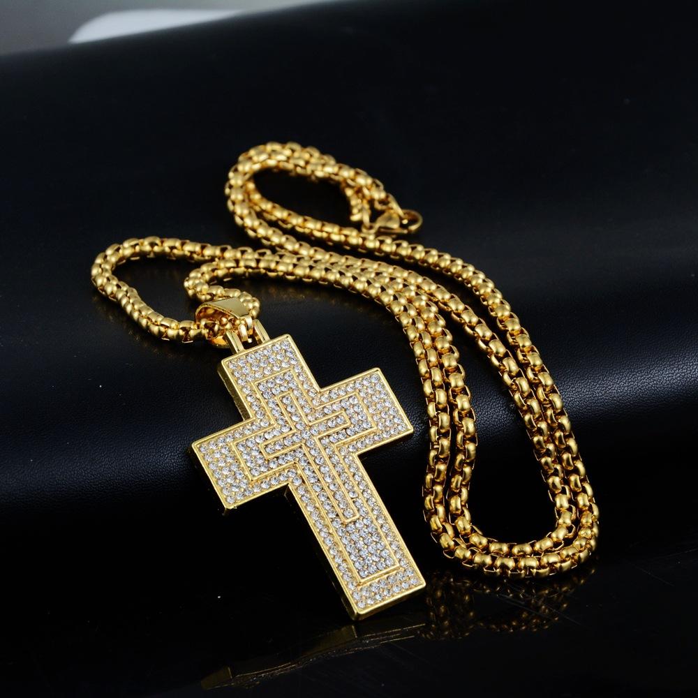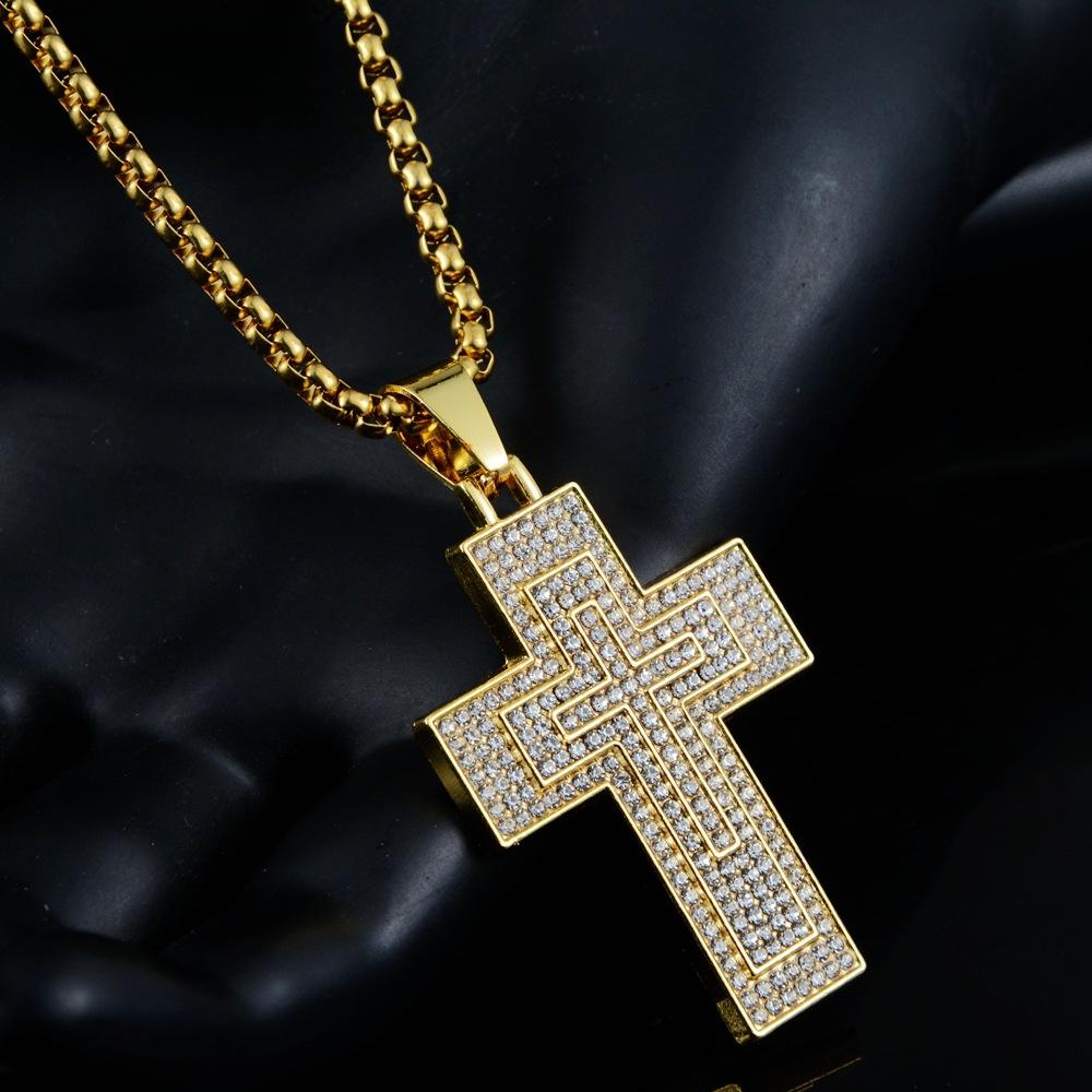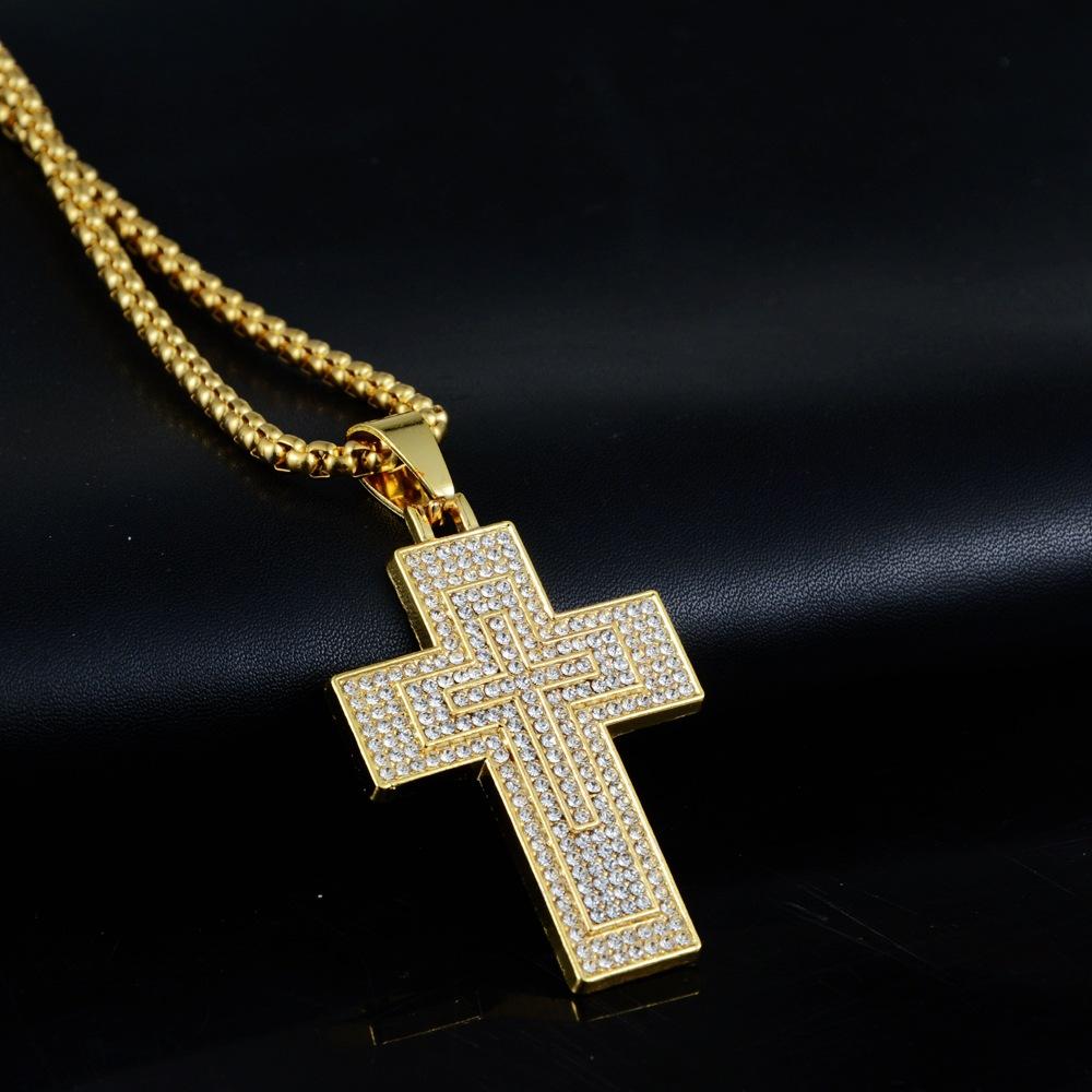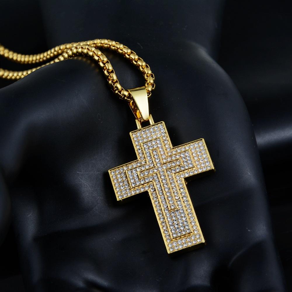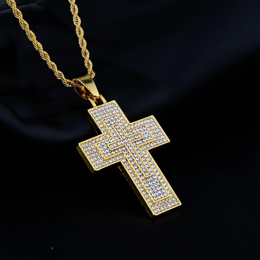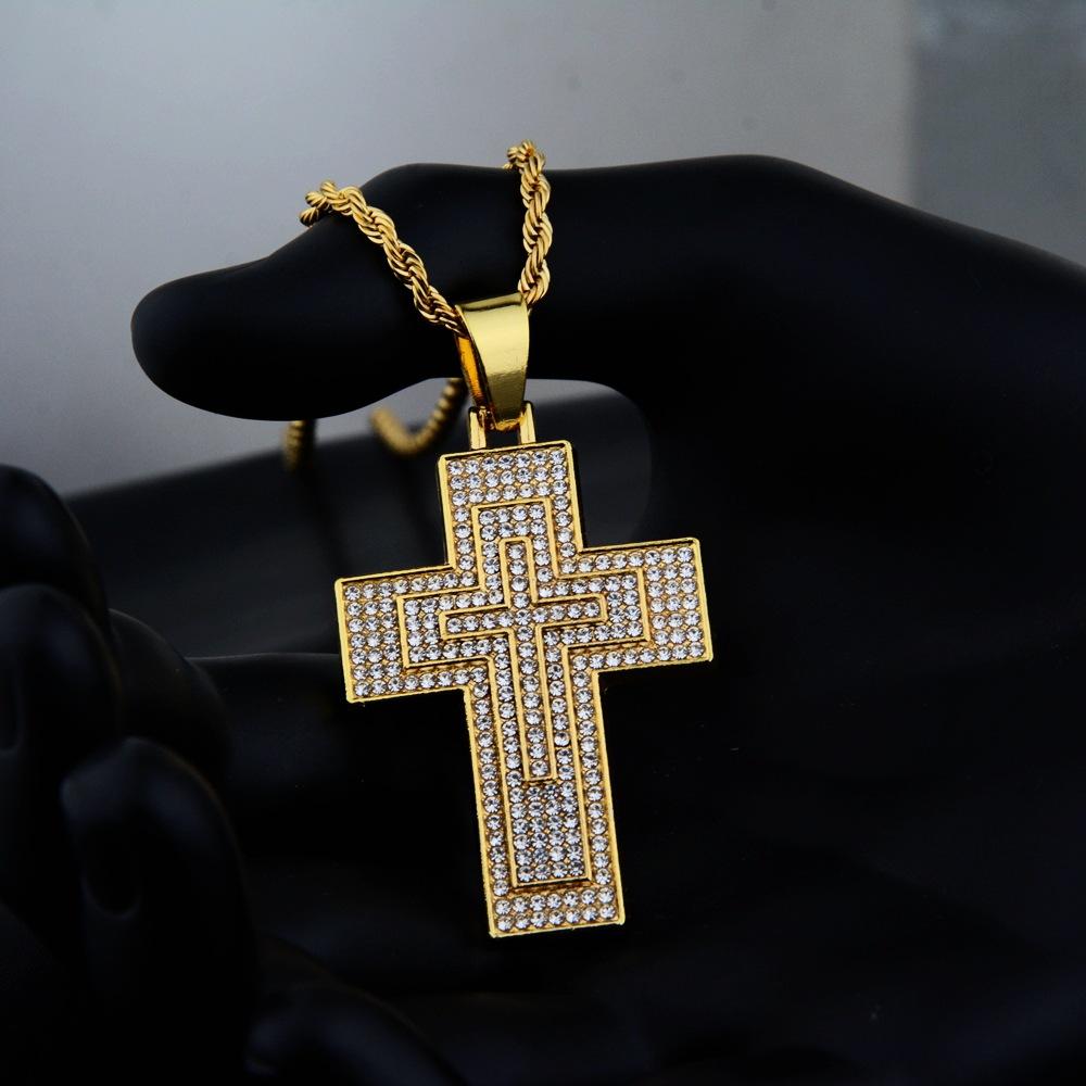 Collar de ocio personalizado para hombres y mujeres con colgante de cruz de diamantes de aleación de hip-hop para todo tipo de combinaciones de Europa y América.
