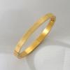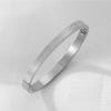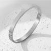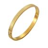 Fabricantes de pulseras de acero de titanio al por mayor, pulsera ajustable abierta en forma de C, pulsera femenina de acero inoxidable con logotipo de texto grabado.