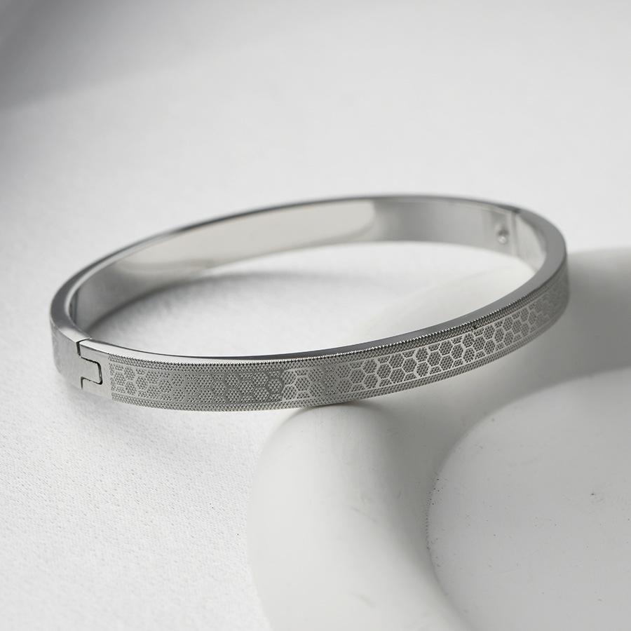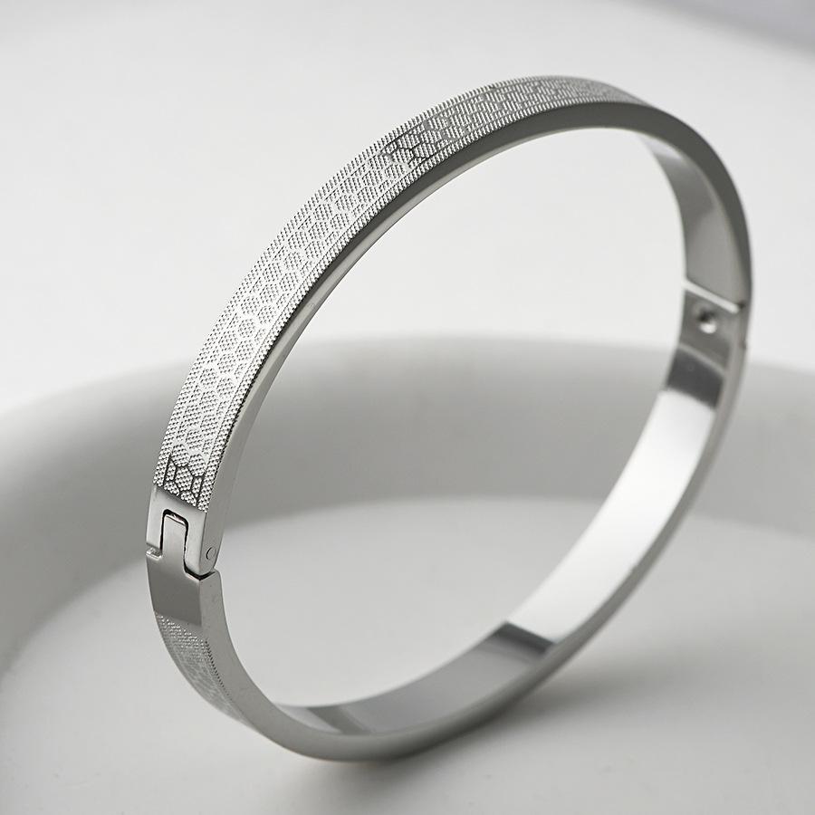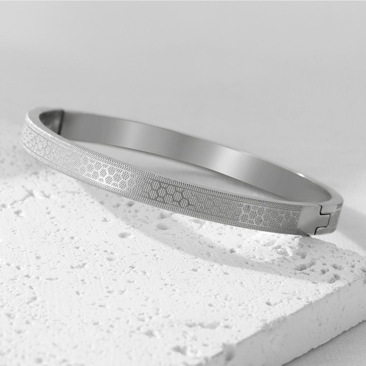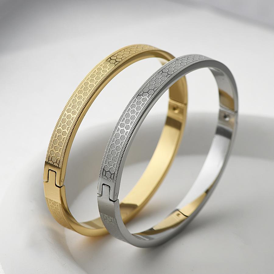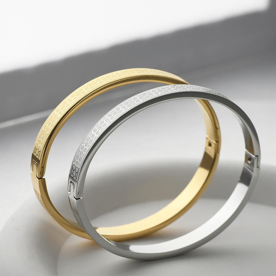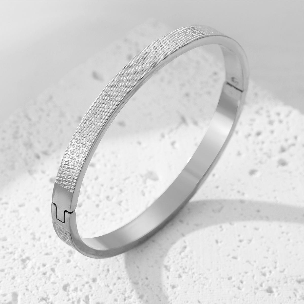 Nueva pulsera de acero de titanio transfronteriza, creativa, simple, con textura de rejilla y hebilla, pulsera de pareja, joyería de acero inoxidable