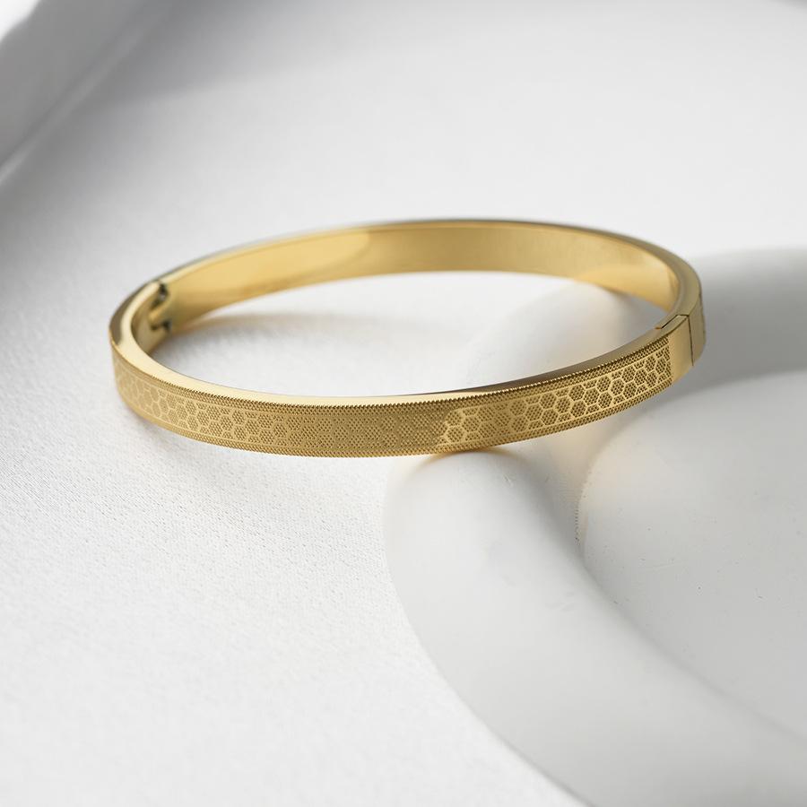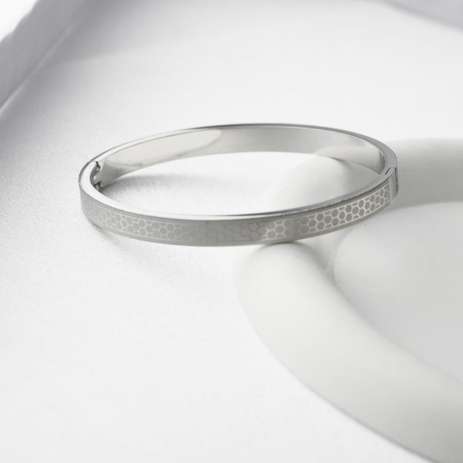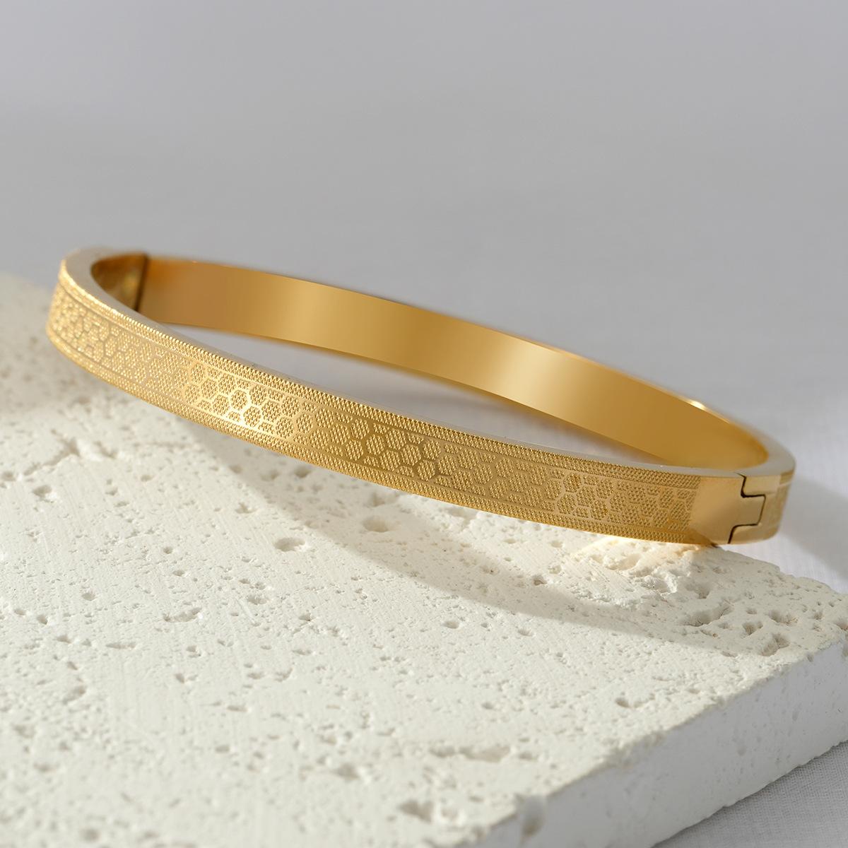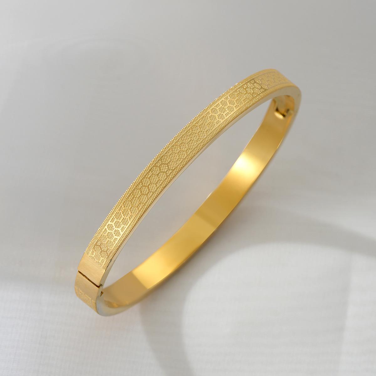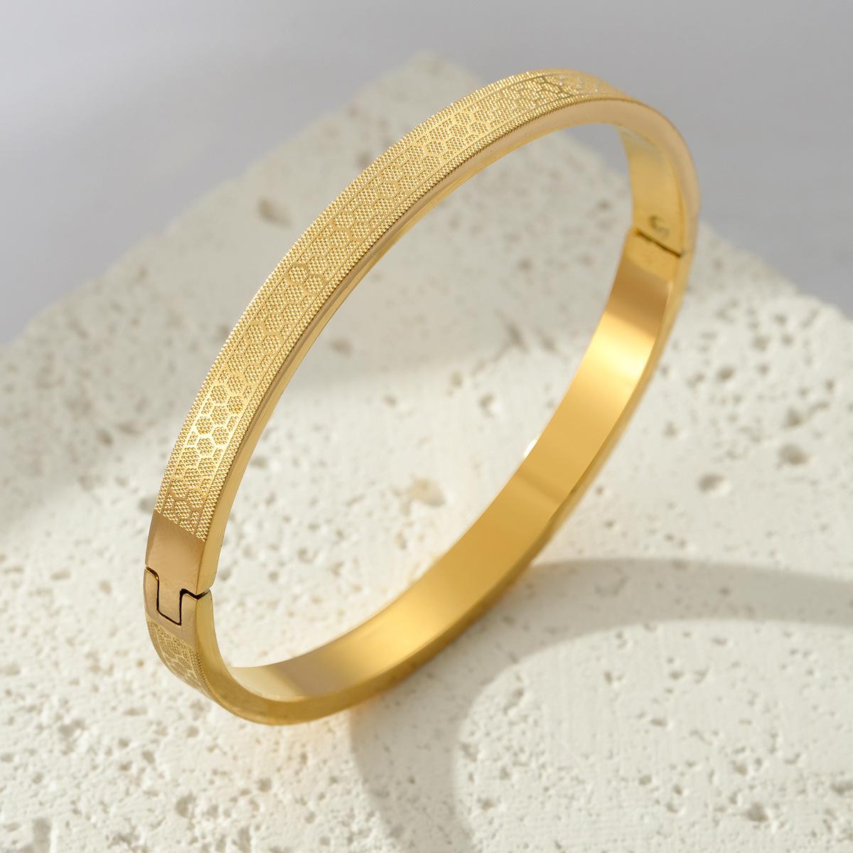 Nueva pulsera de acero de titanio transfronteriza, creativa, simple, con textura de rejilla y hebilla, pulsera de pareja, joyería de acero inoxidable
