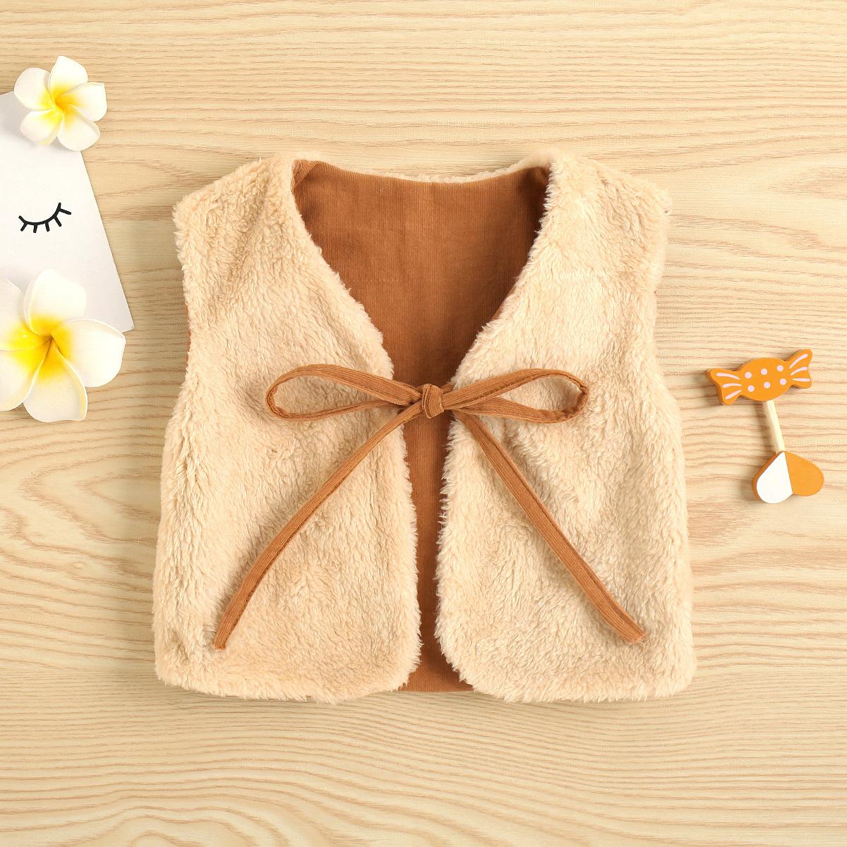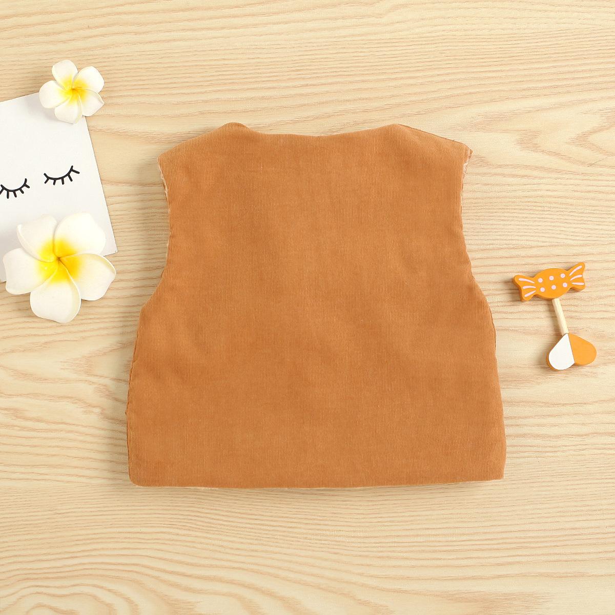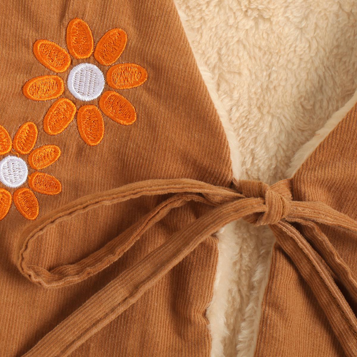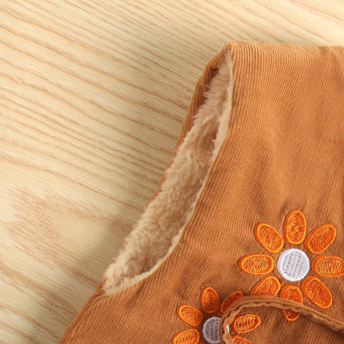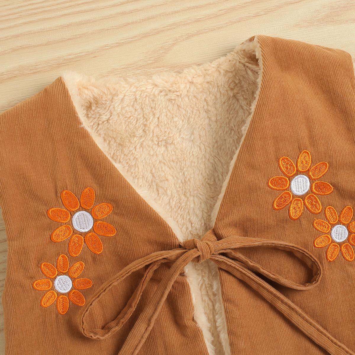 Chaleco de Pana Bordado con Crisantemo Pequeño Forrado de Felpa para Bebé Niña con Pinza para el Cabello de Pony Transfronterizo
