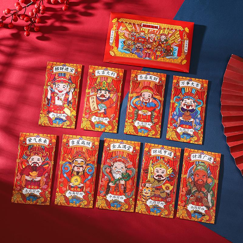 Nine Road God of Wealth + family portrait ten thousand yuan bag