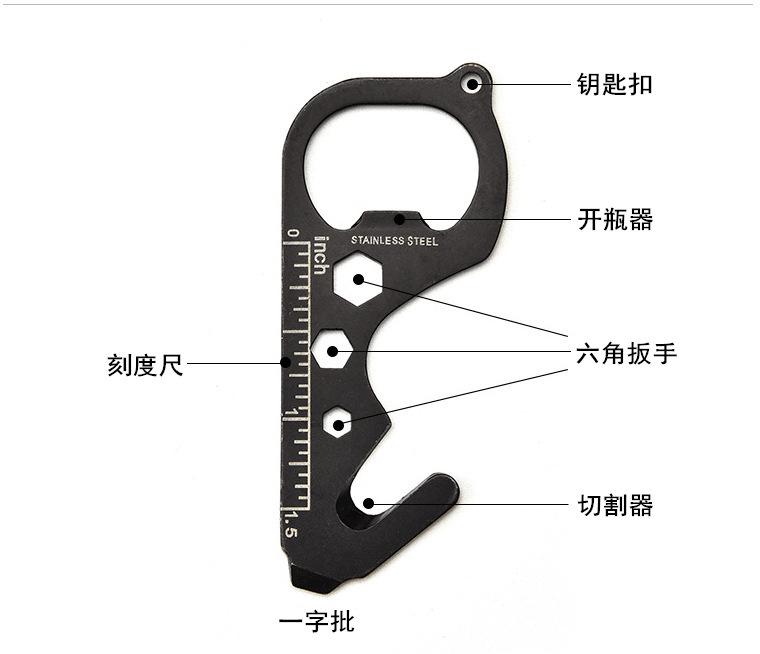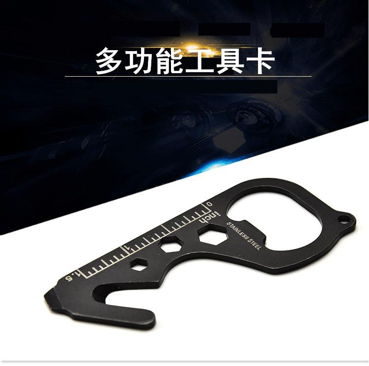 Venta al por mayor de fábrica tarjeta herramienta de acero inoxidable llave Allen con destornillador plano abridor de botellas combinación herramientas pequeñas