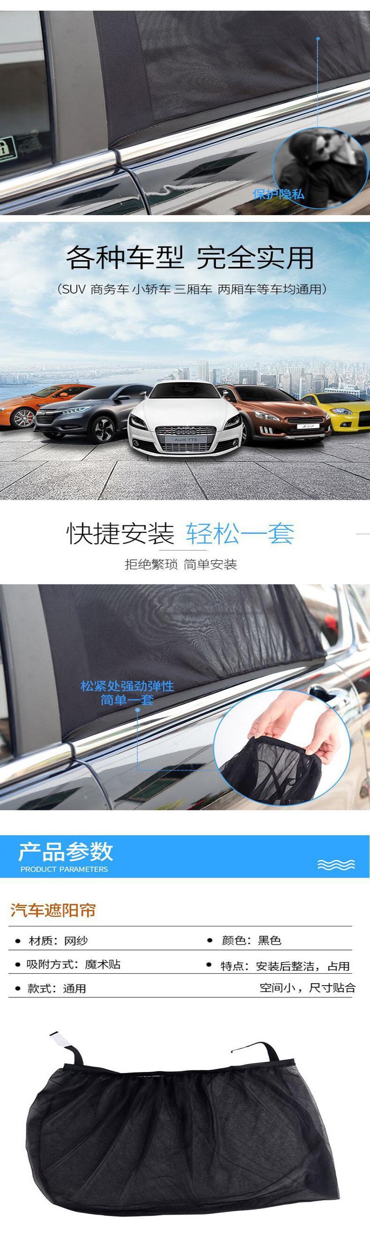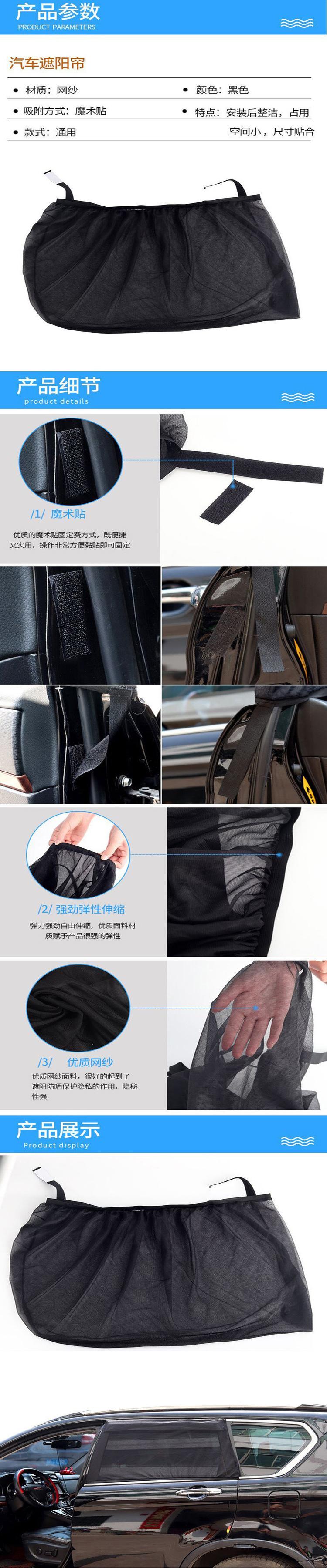 Fácil de instalar, simplemente deslícelo sobre la ventana lateral trasera. Este se usa principalmente como parasol lateral para la ventana trasera porque el efecto parasol es muy bueno, colocarlo en el frente afectará la conducción. Es más adecuado para parasol infantil para el asiento trasero y proporciona bloqueo de luz integral. Al estacionar, se puede usar en las ventanas delanteras. Durante el uso, las ventanas del coche se pueden bajar para ventilación. Al acampar al aire libre por la noche, puede prevenir mosquitos e insectos y tiene los siguientes efectos: