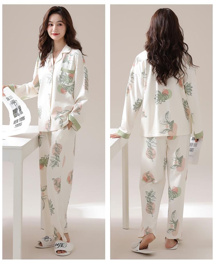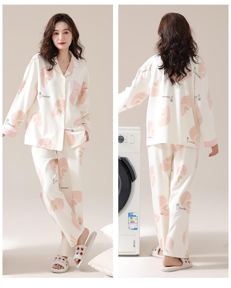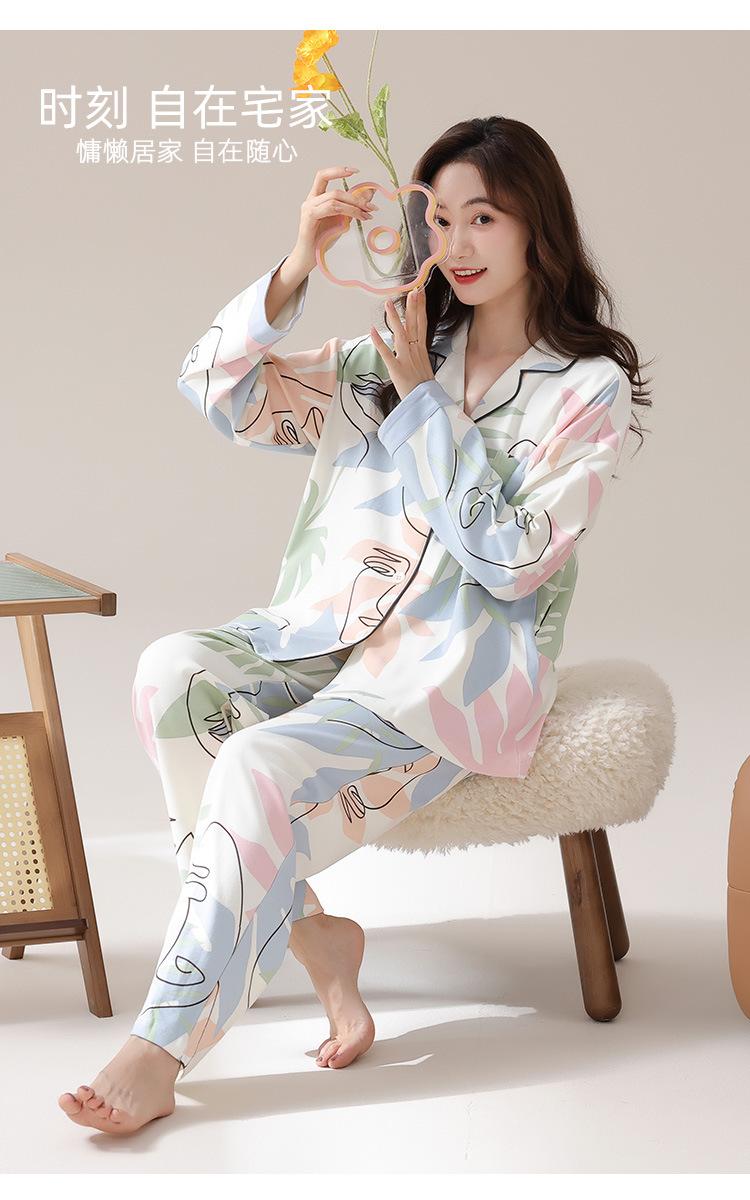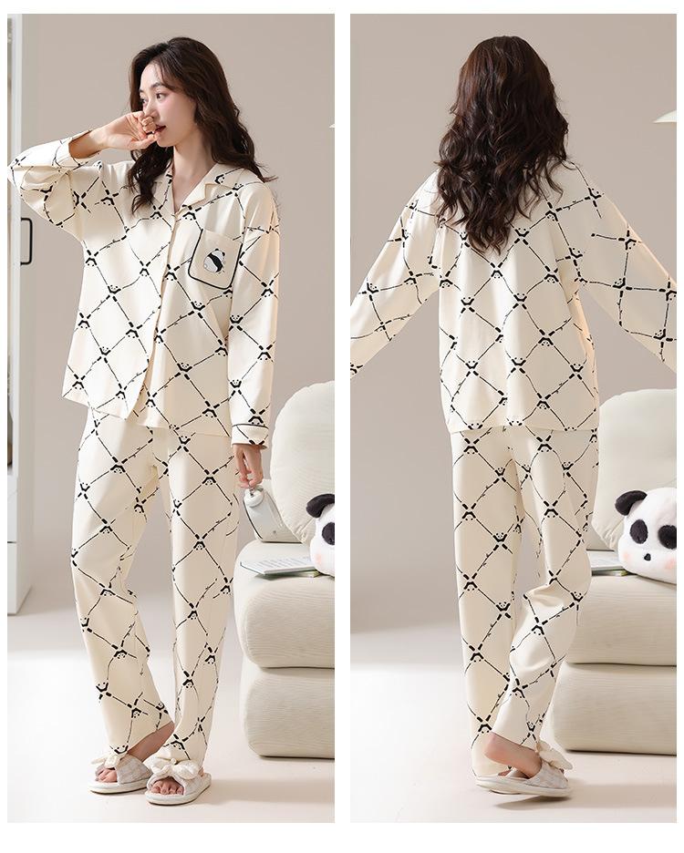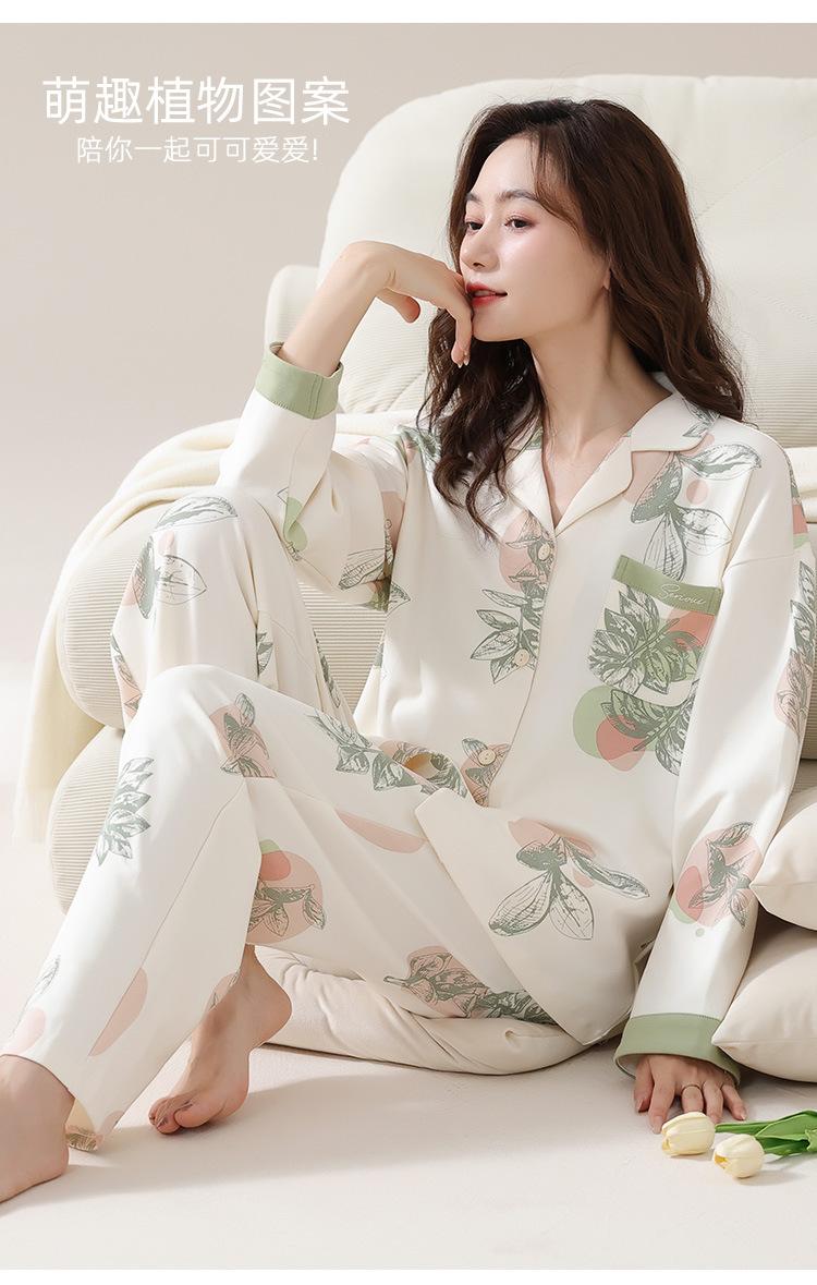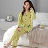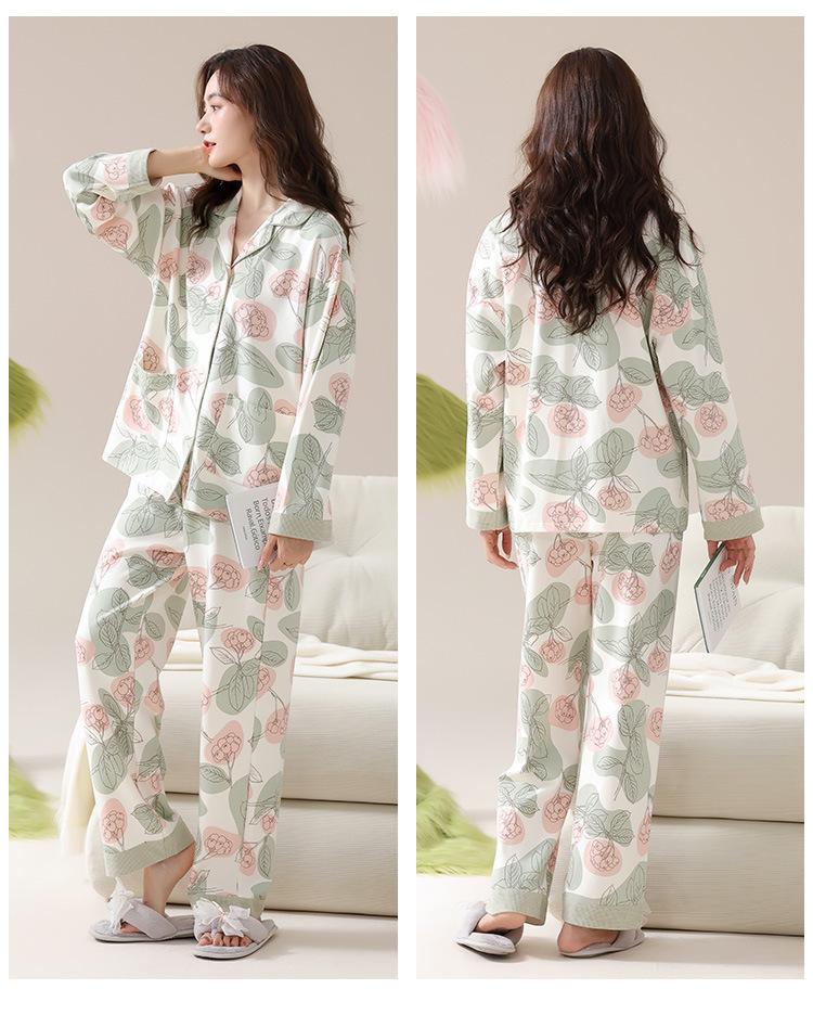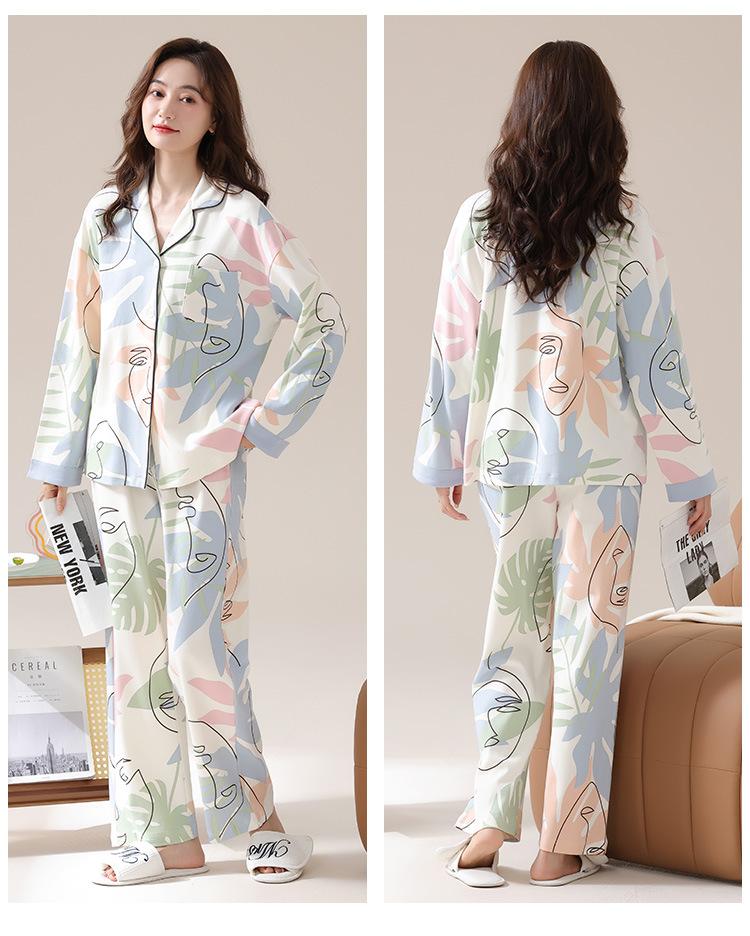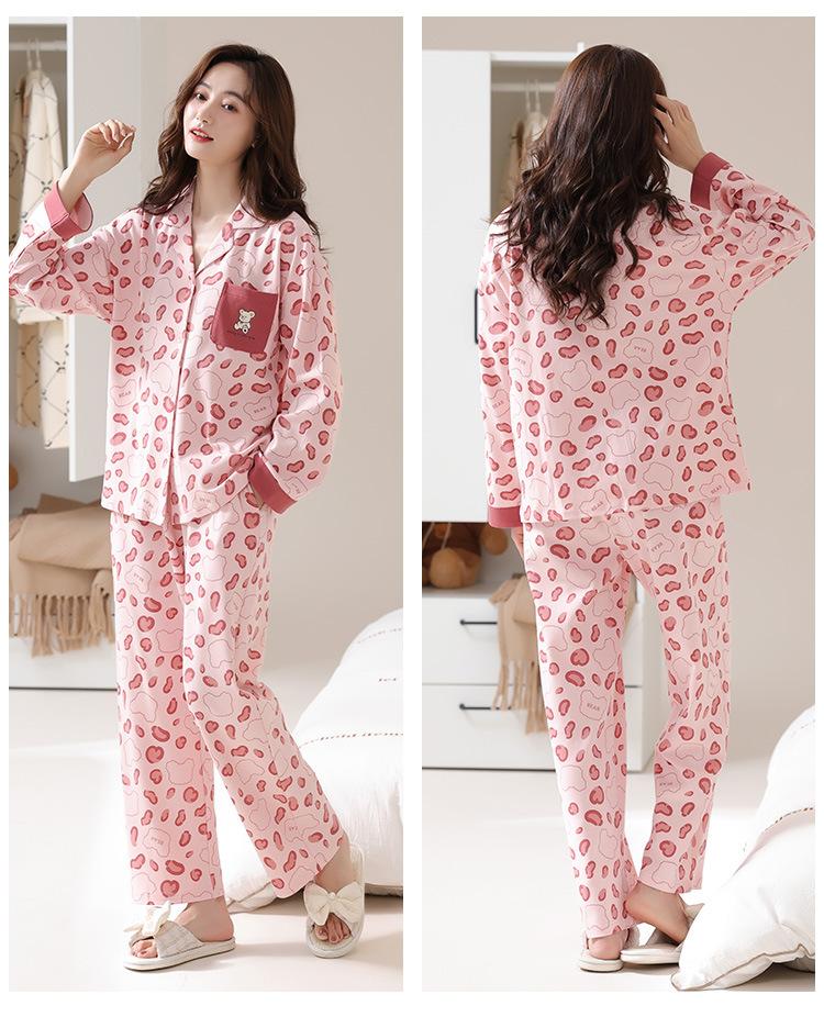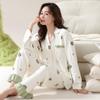 Pijamas de mujer de primavera y otoño de algodón de manga larga, ropa de abrigo informal estampada, cárdigan de solapa, traje de otoño e invierno para mujer para el hogar