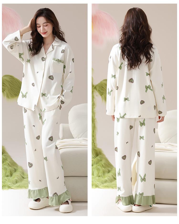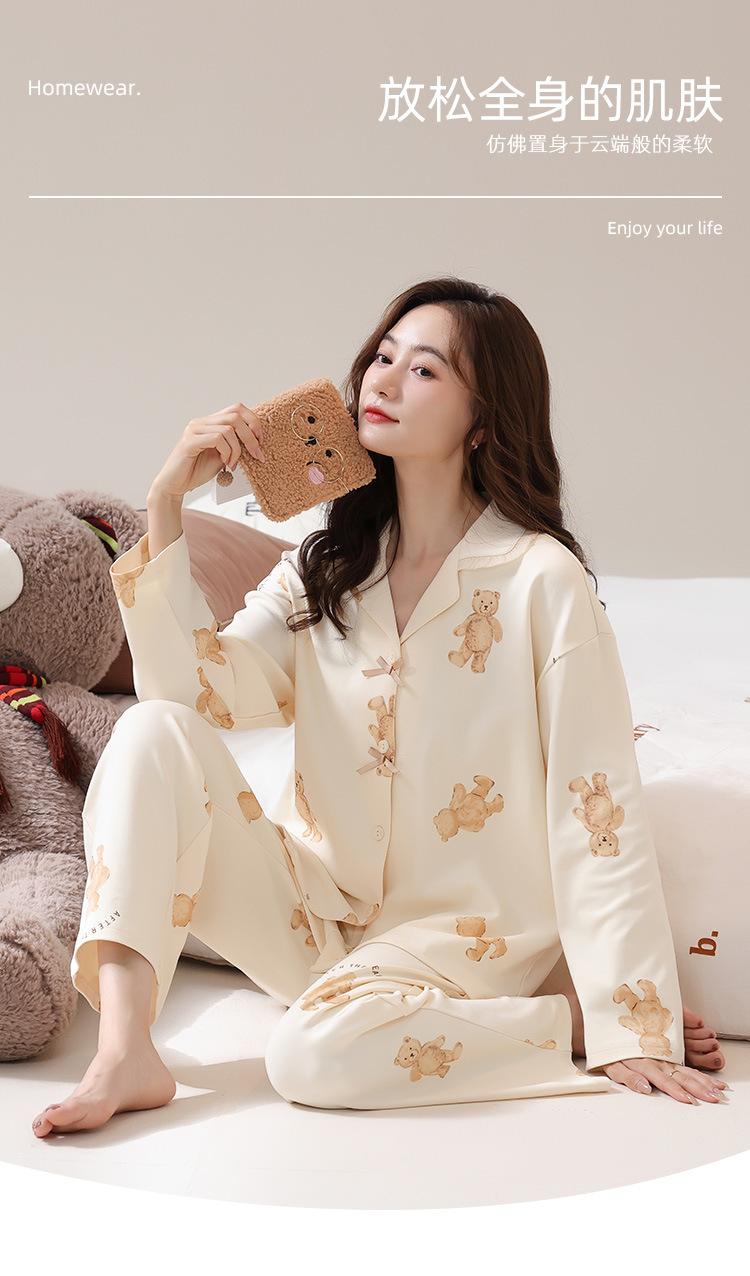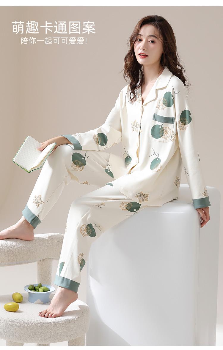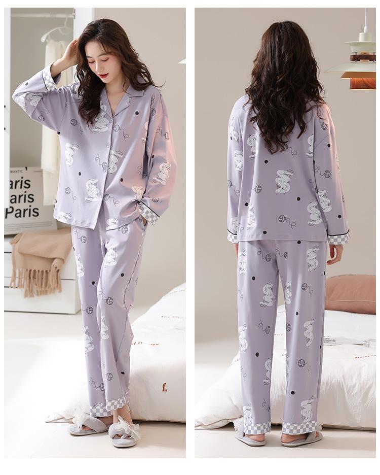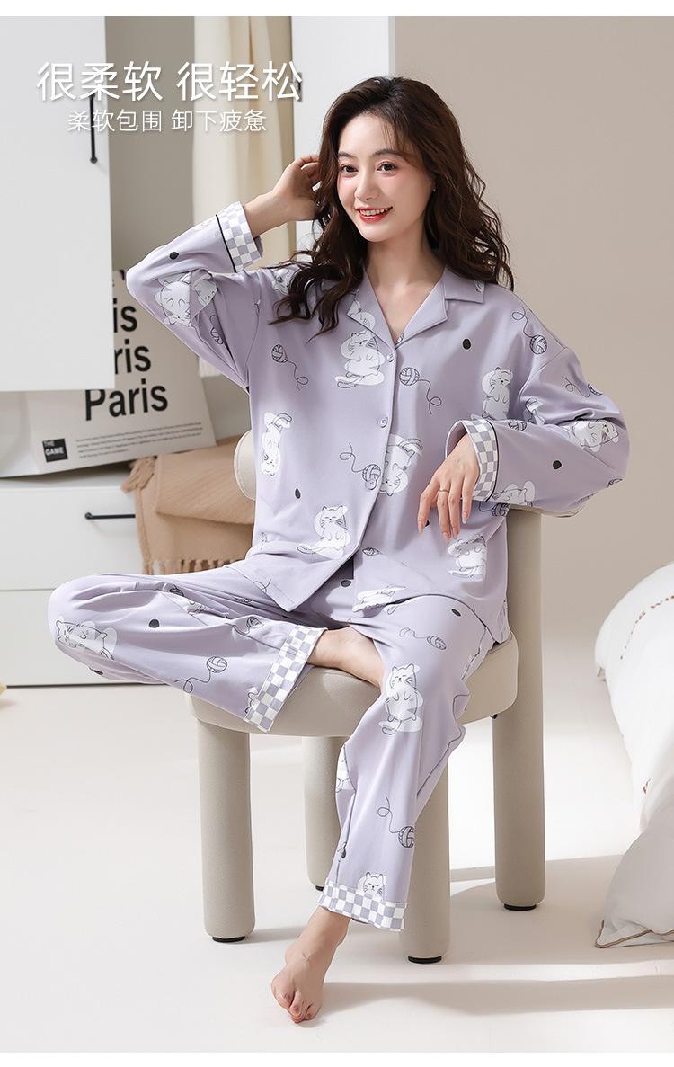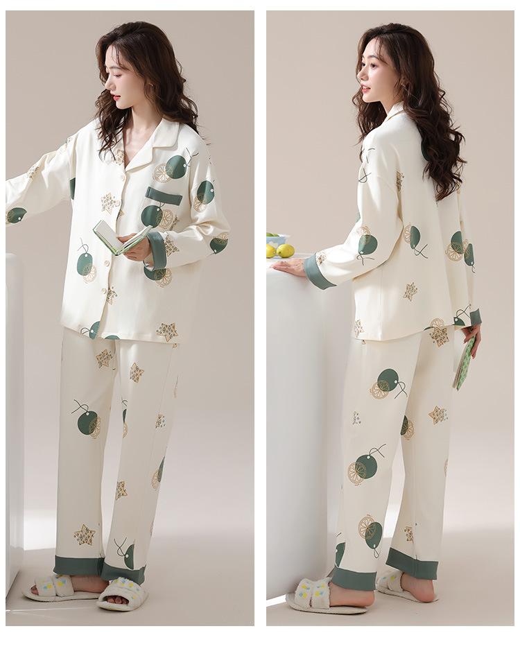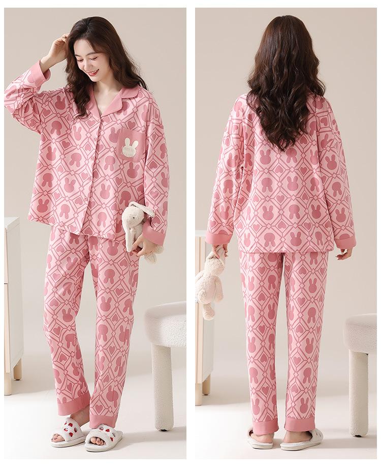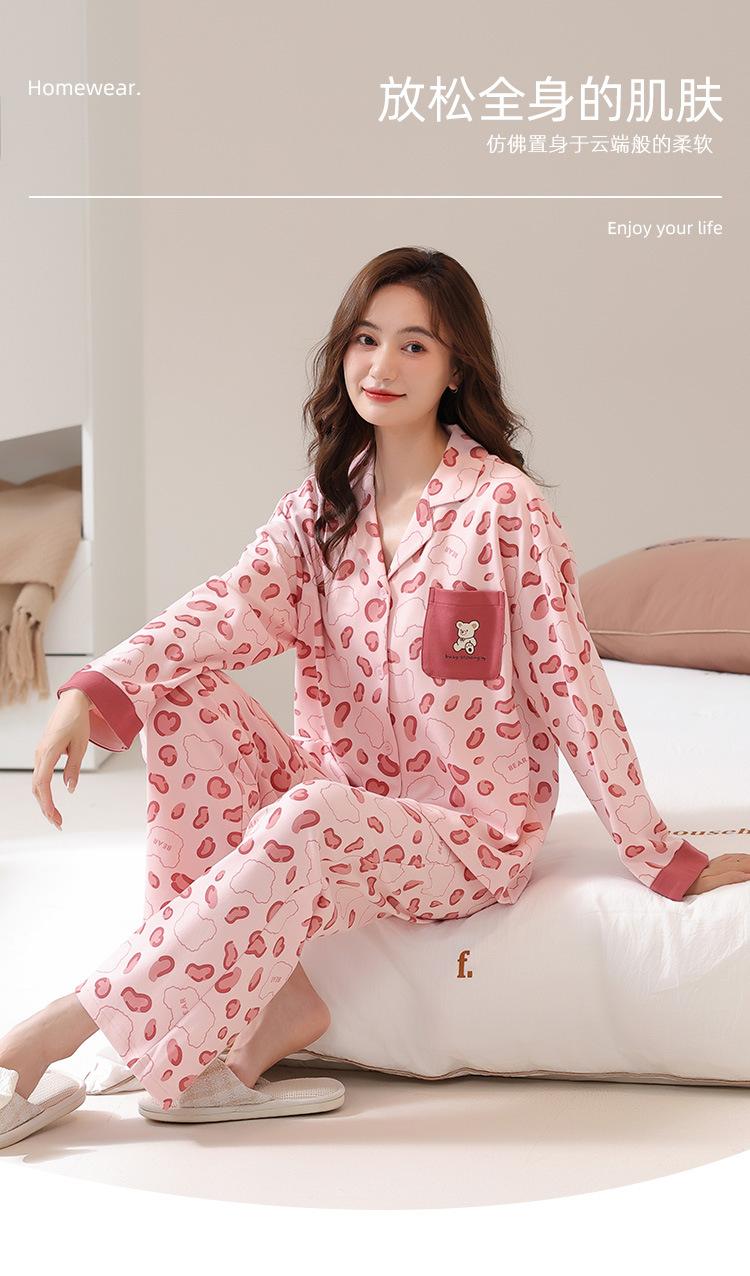 Pijamas de mujer de primavera y otoño de algodón de manga larga, ropa de abrigo informal estampada, cárdigan de solapa, traje de otoño e invierno para mujer para el hogar