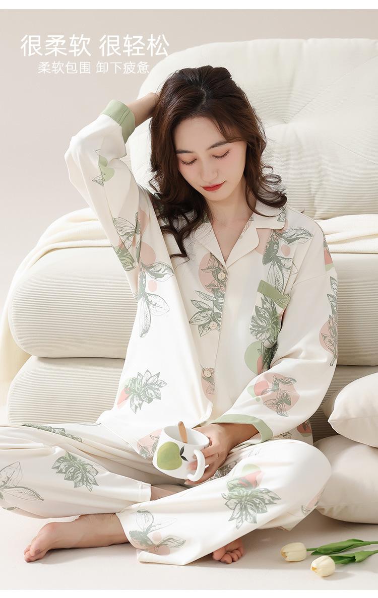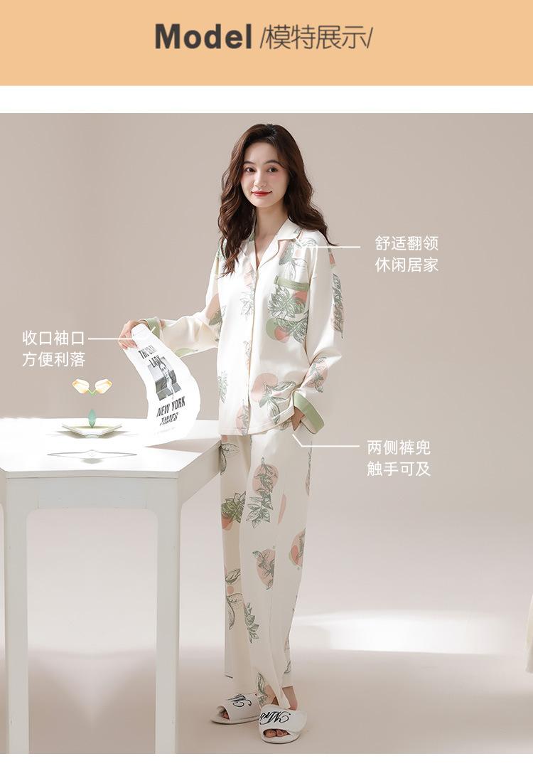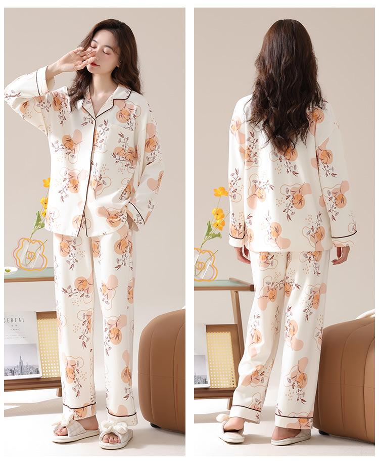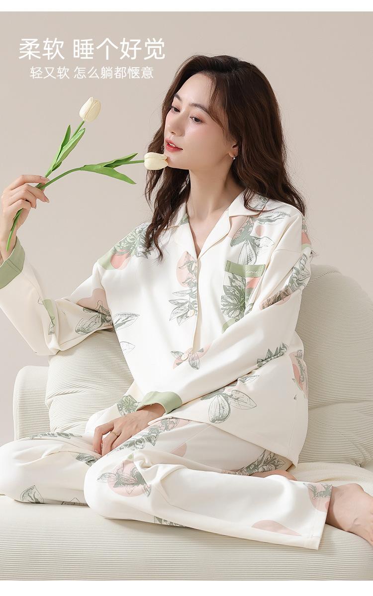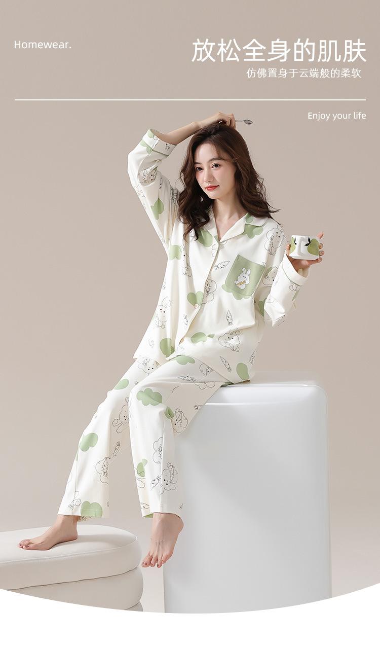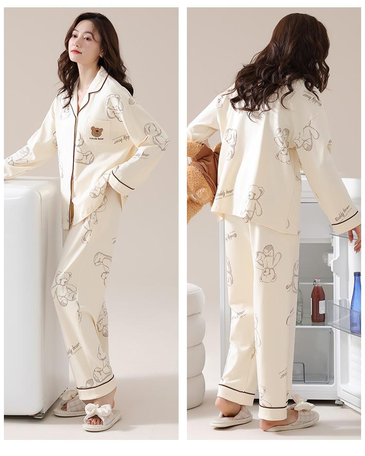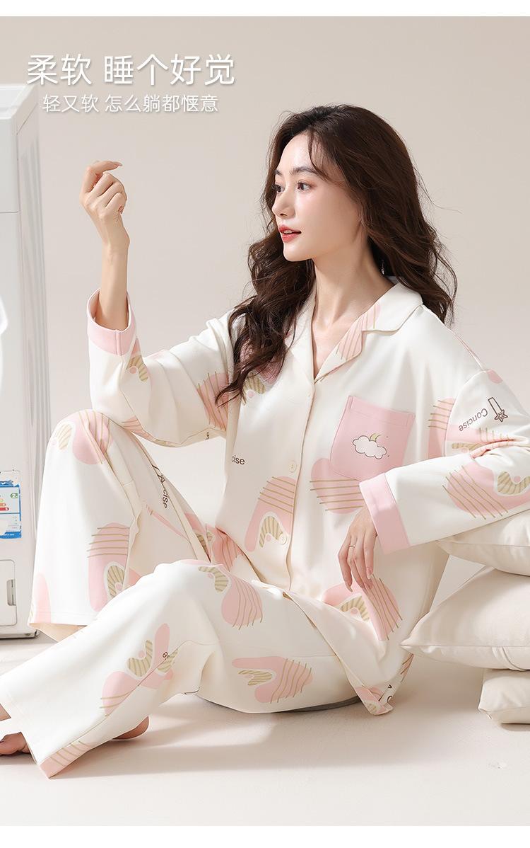 Pijamas de mujer de primavera y otoño de algodón de manga larga, ropa de abrigo informal estampada, cárdigan de solapa, traje de otoño e invierno para mujer para el hogar