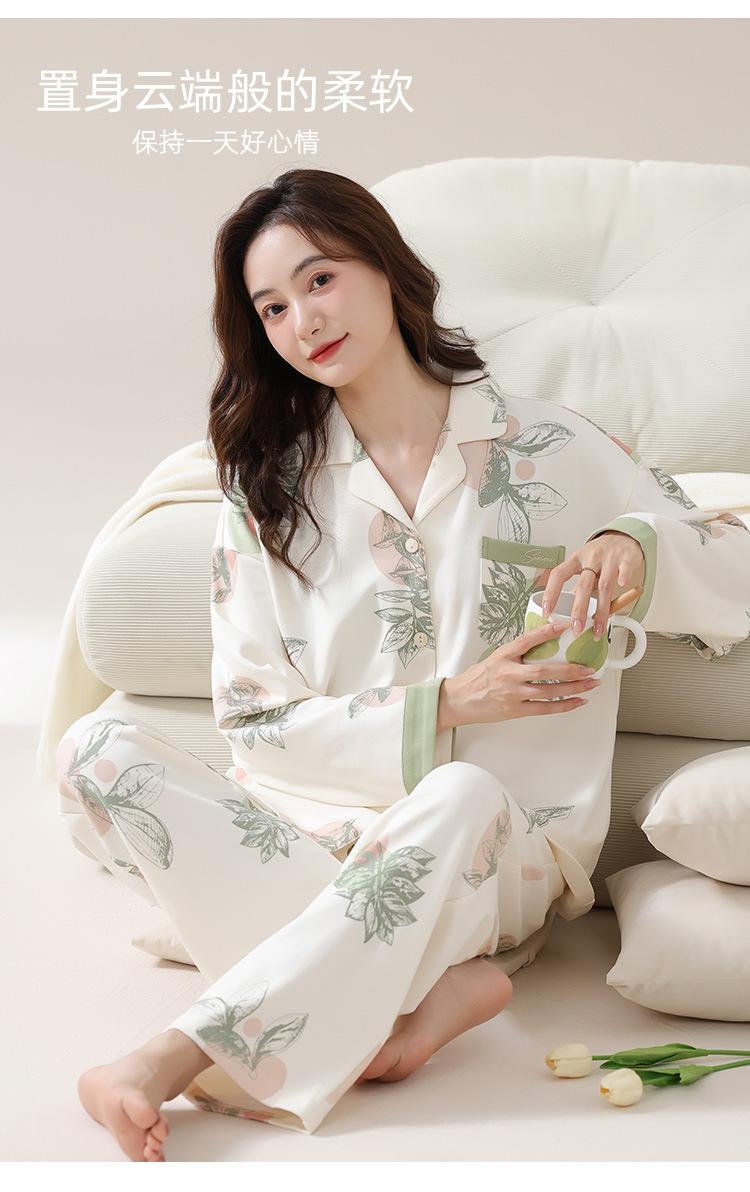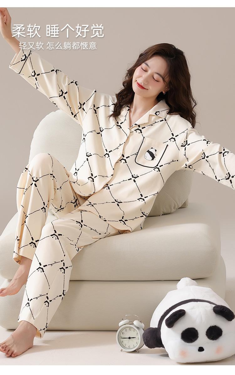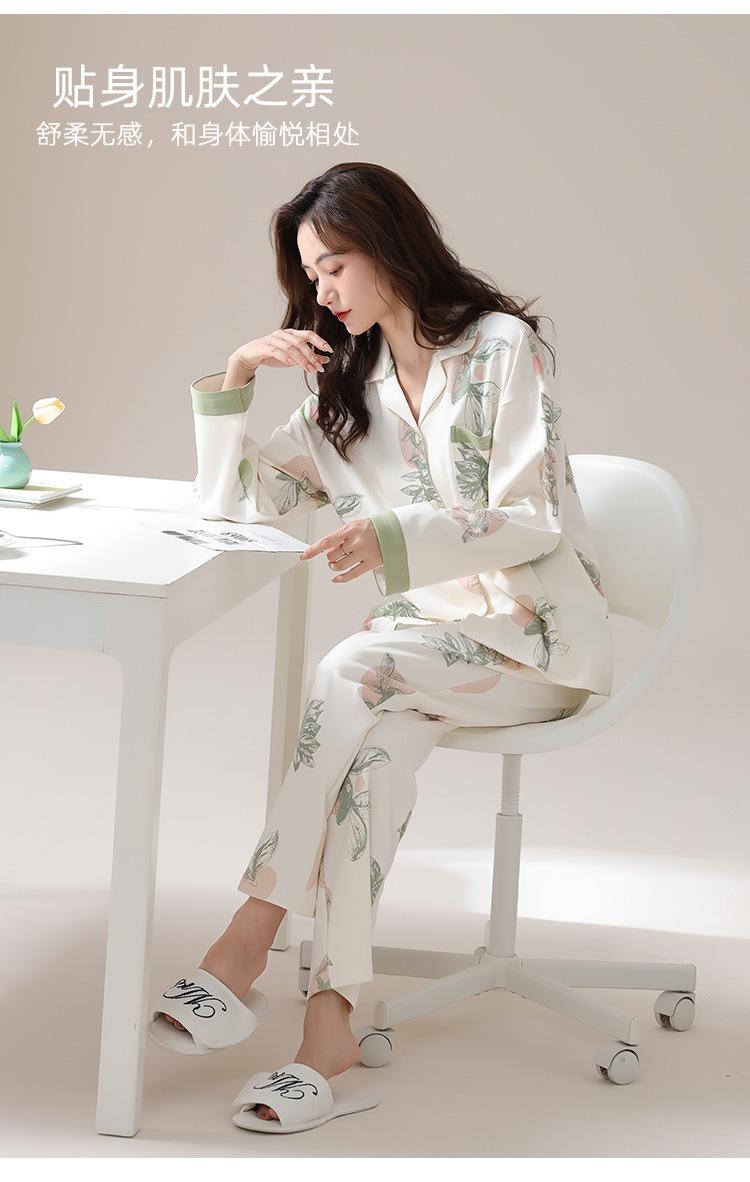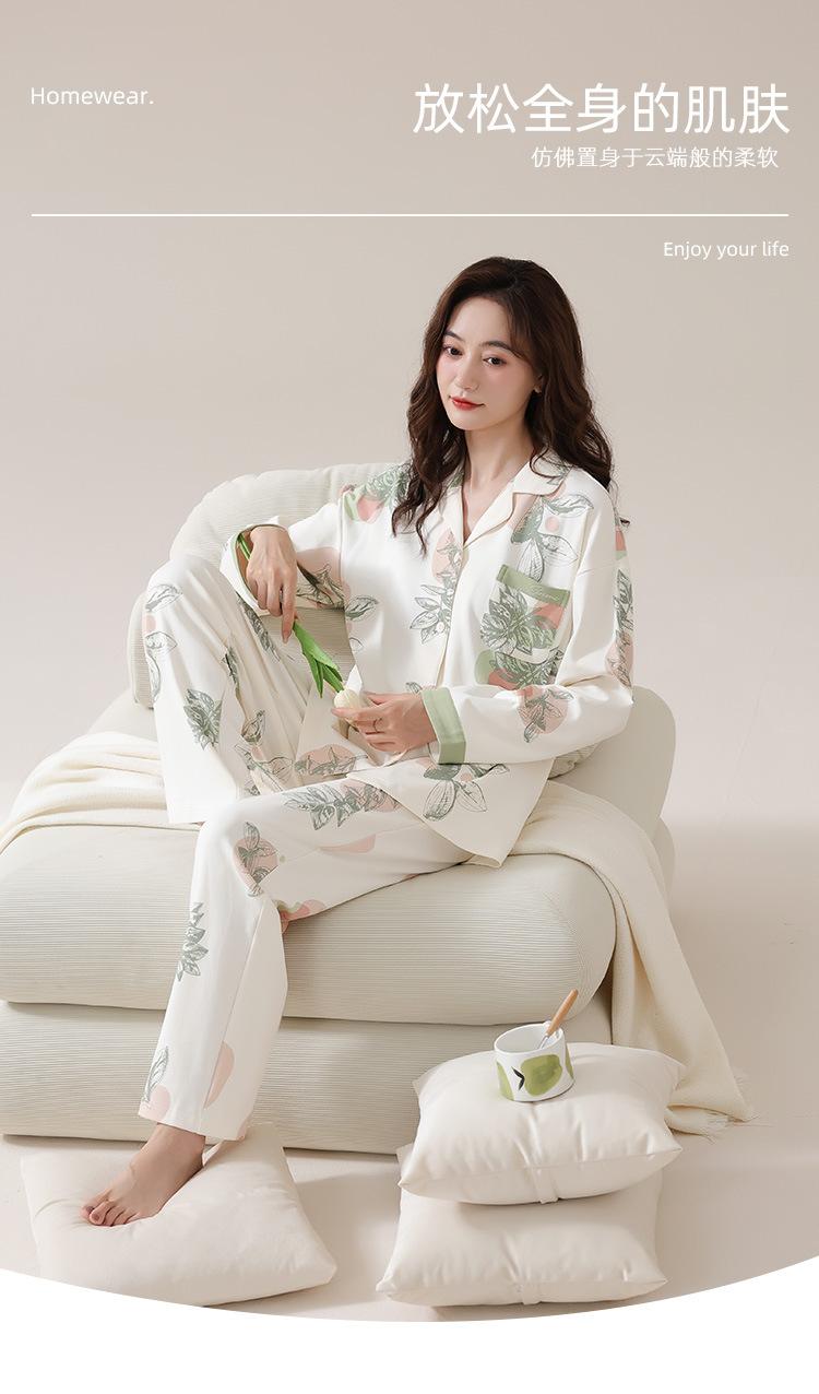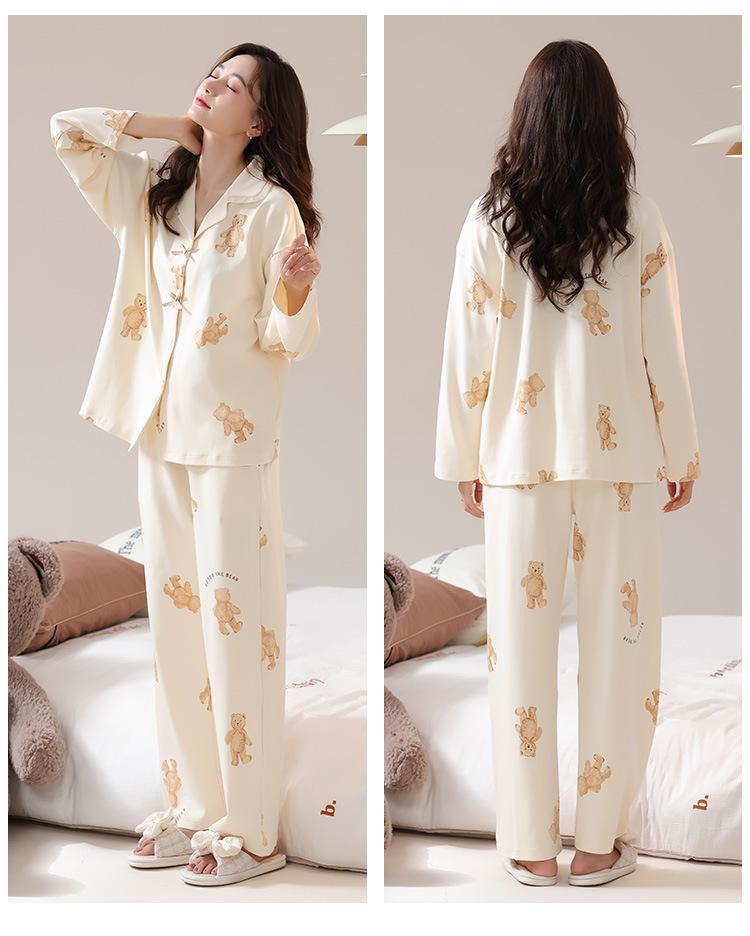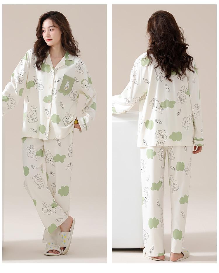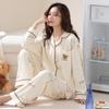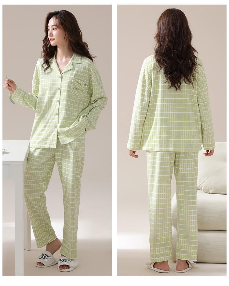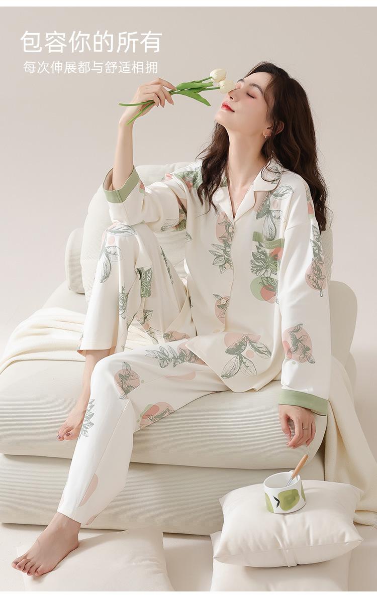 Pijamas de mujer de primavera y otoño de algodón de manga larga, ropa de abrigo informal estampada, cárdigan de solapa, traje de otoño e invierno para mujer para el hogar