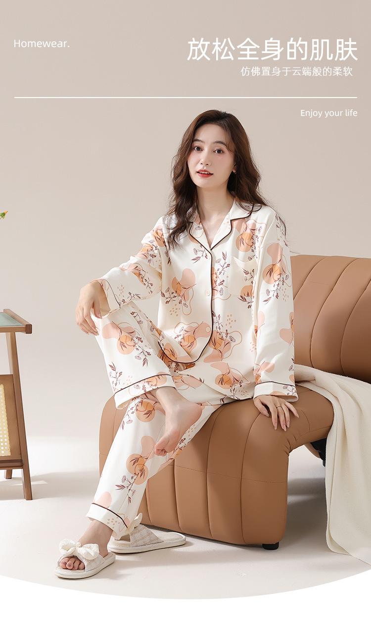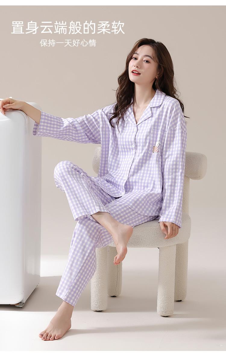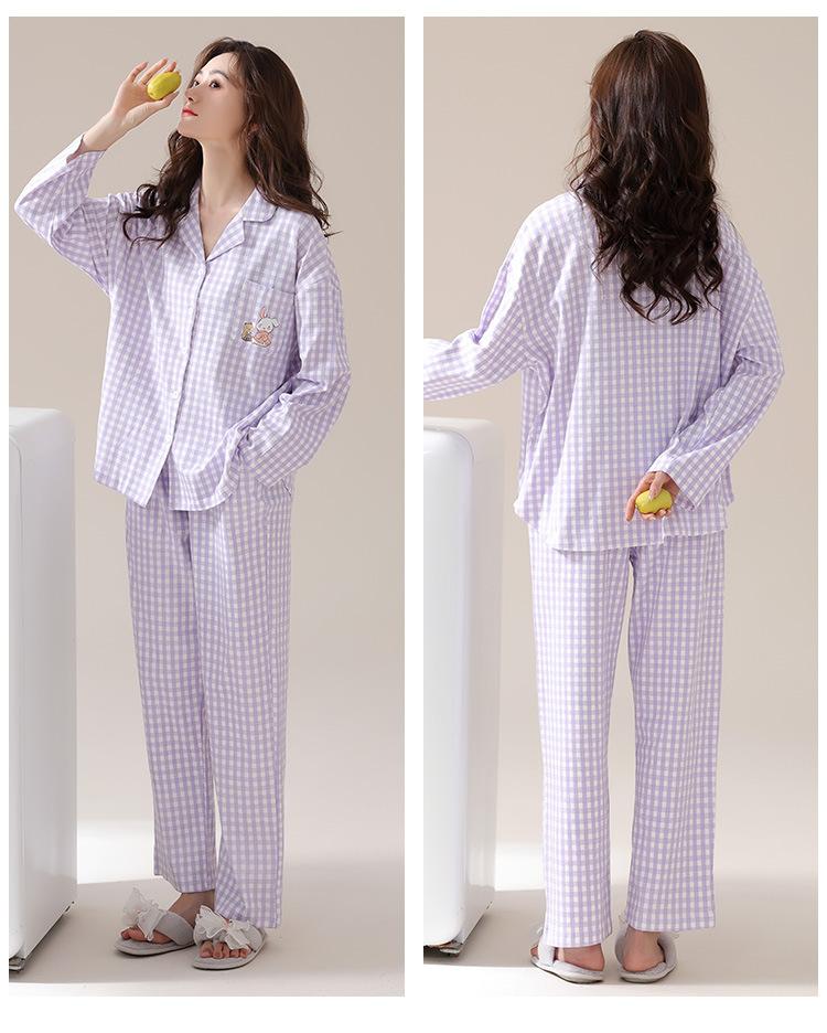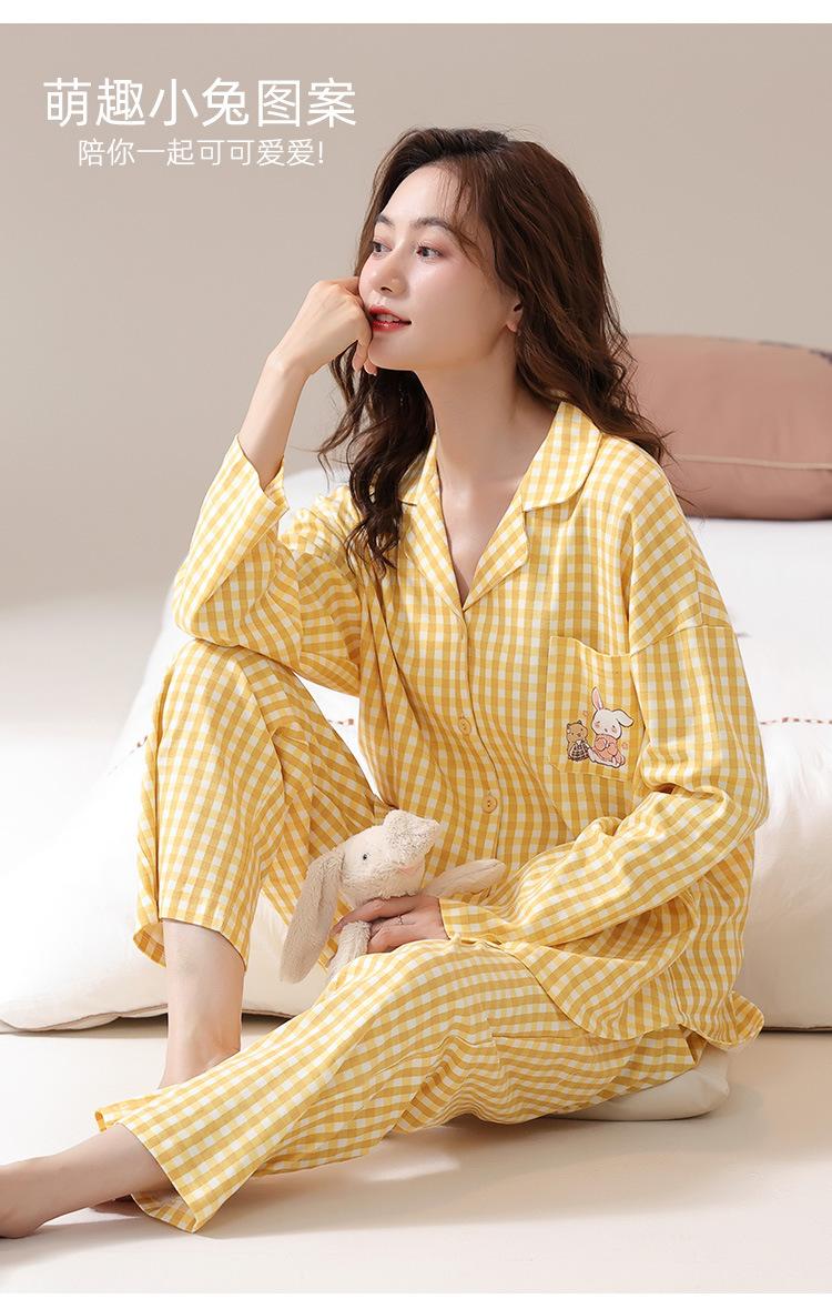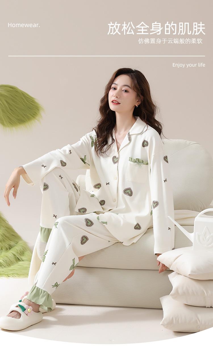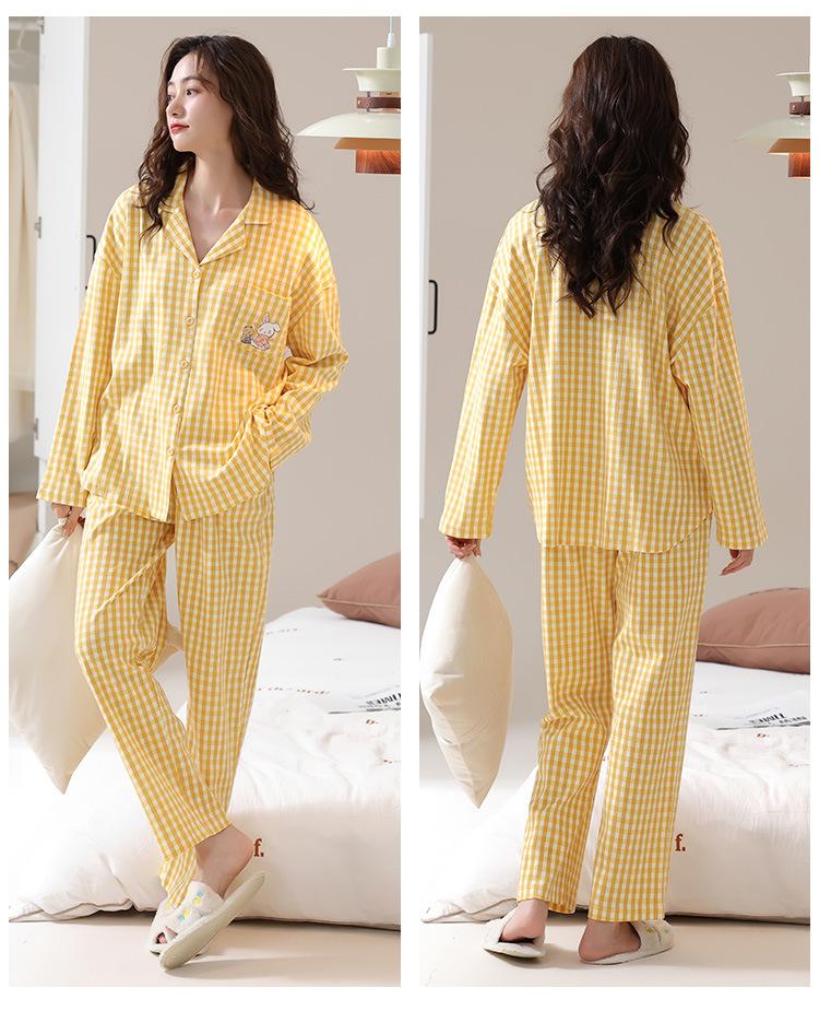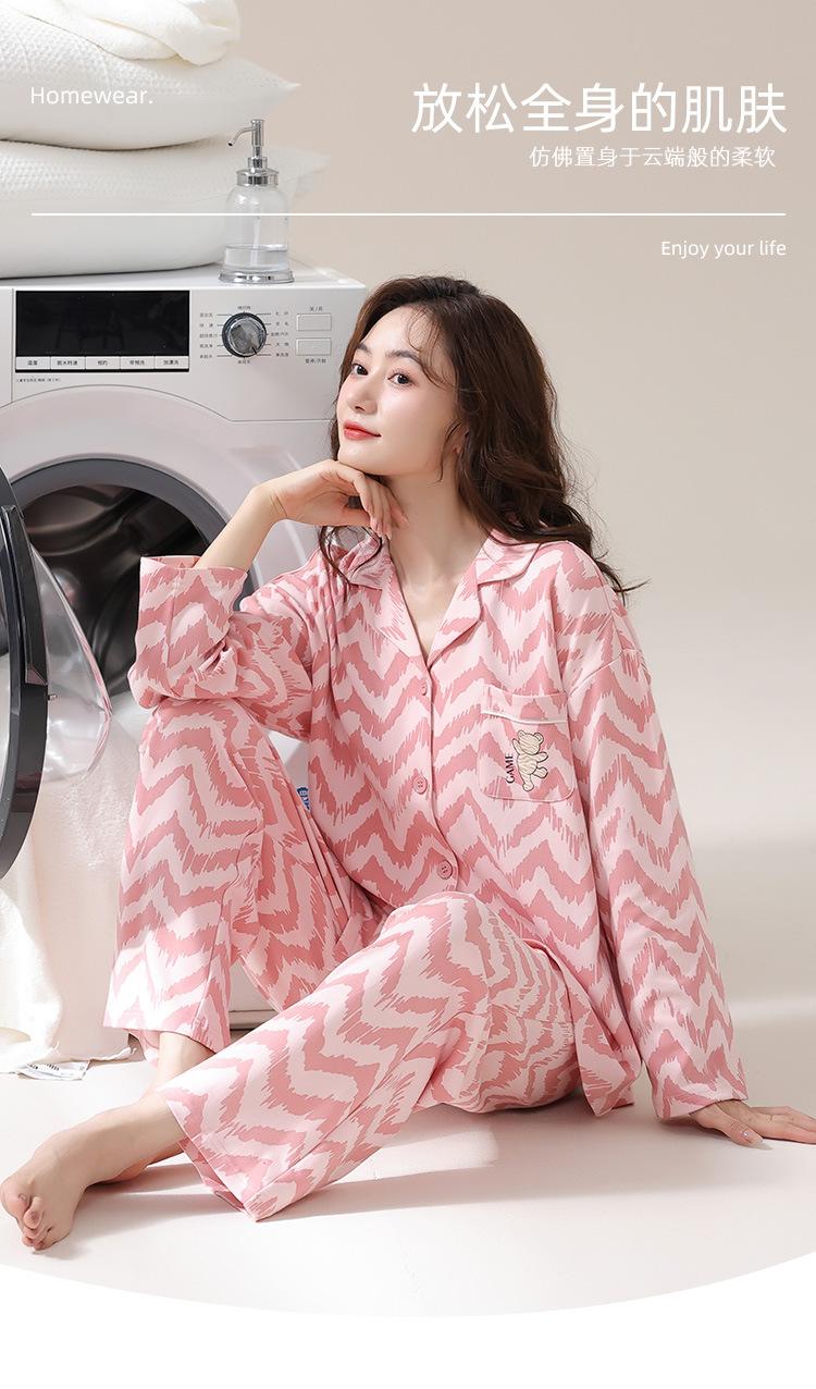 Pijamas de mujer de primavera y otoño de algodón de manga larga, ropa de abrigo informal estampada, cárdigan de solapa, traje de otoño e invierno para mujer para el hogar