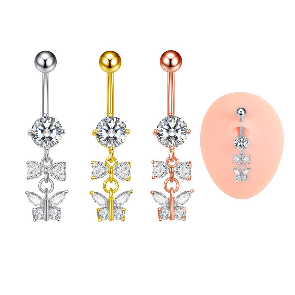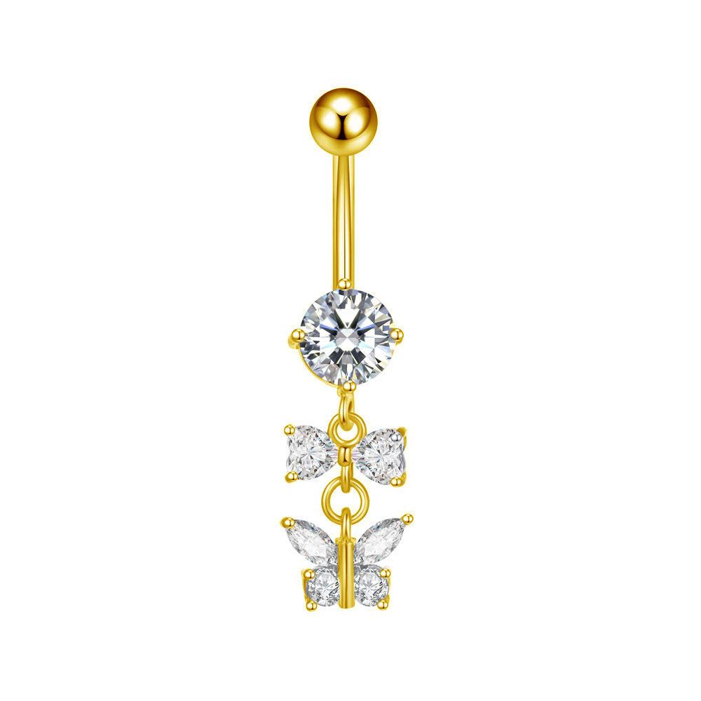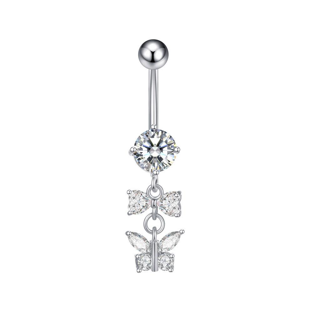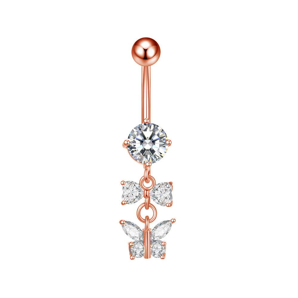 Piercing para el ombligo de acero inoxidable con incrustaciones de mariposa y circonitas, venta transfronteriza entre Europa y Estados Unidos, Amazon