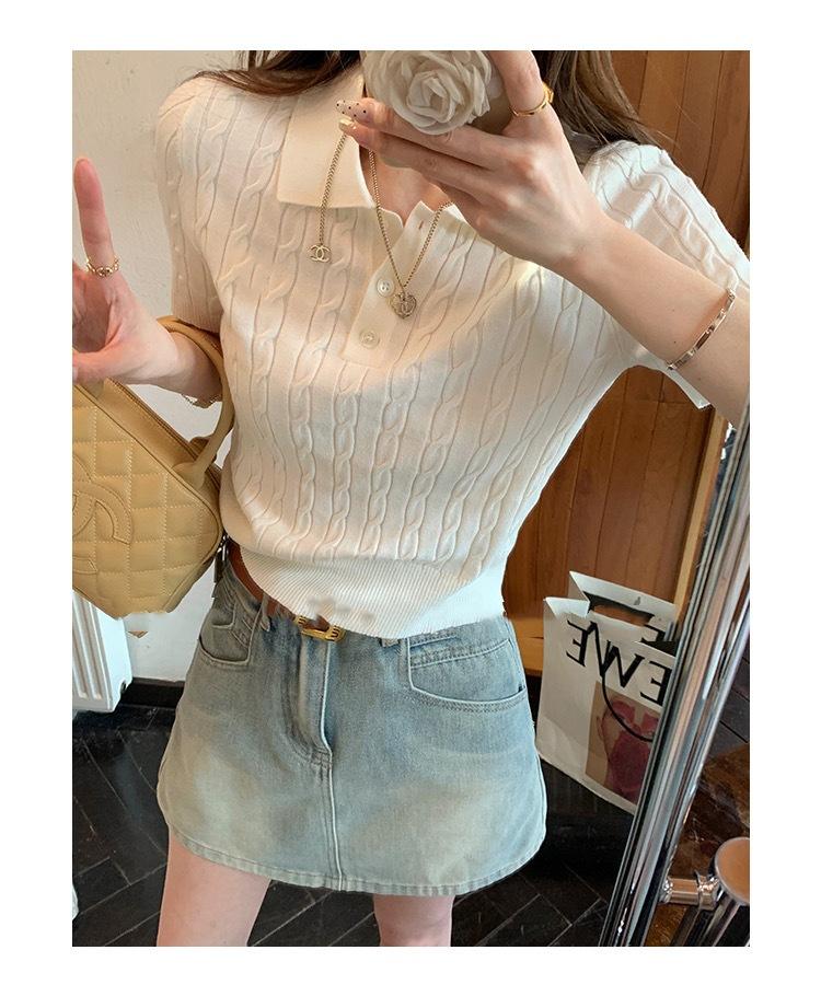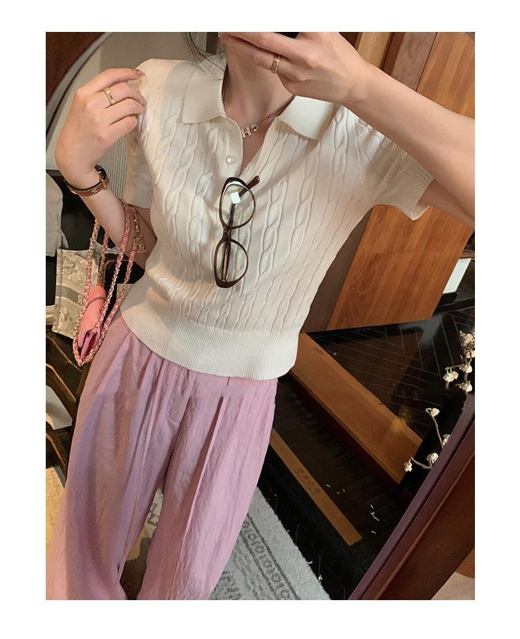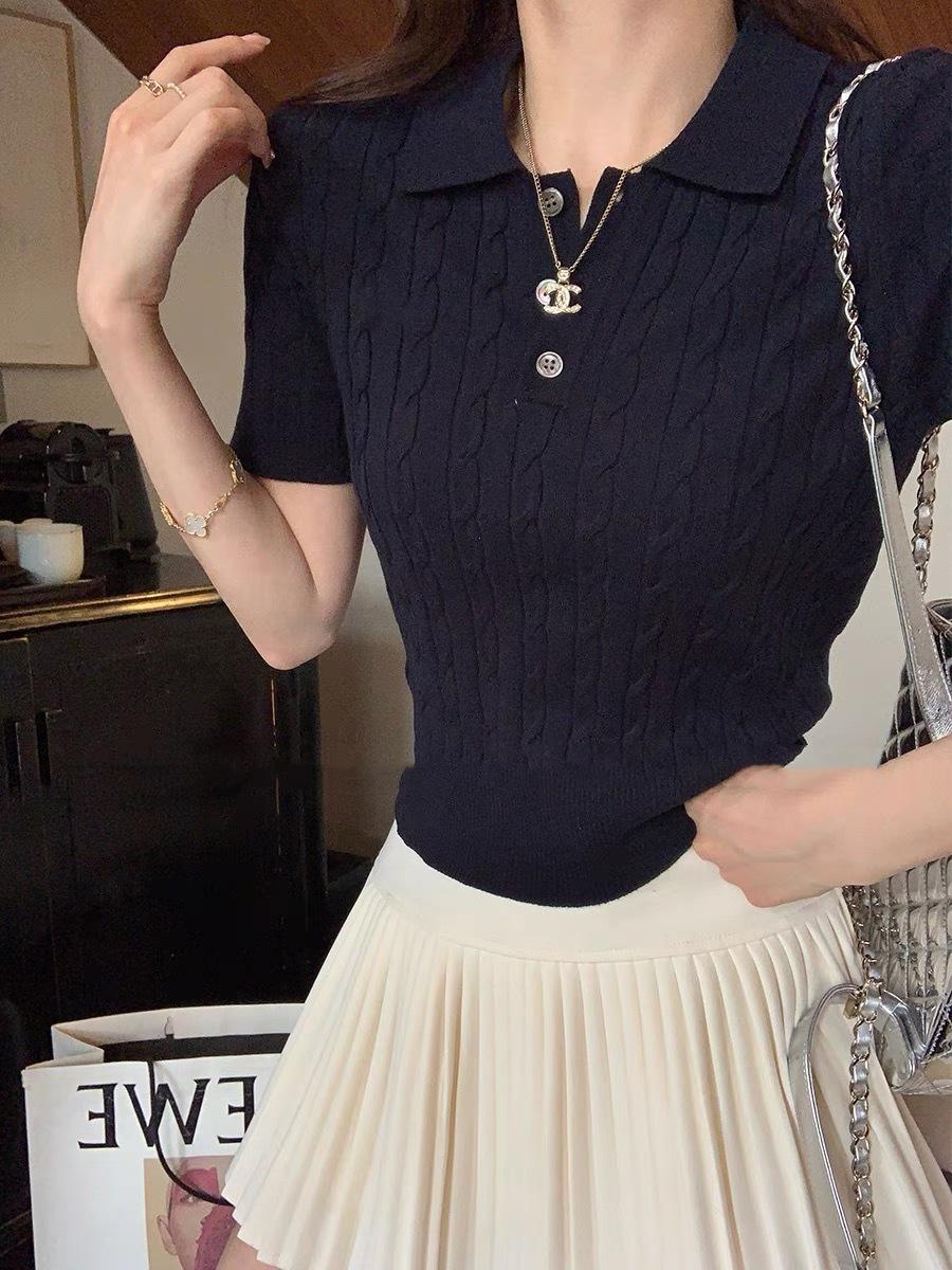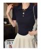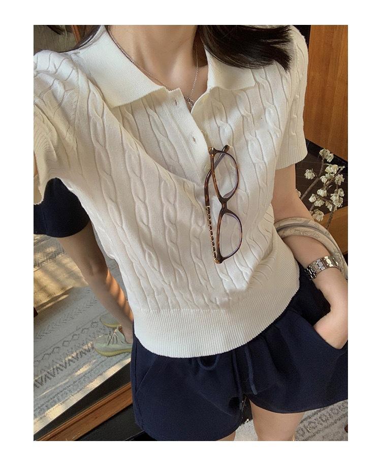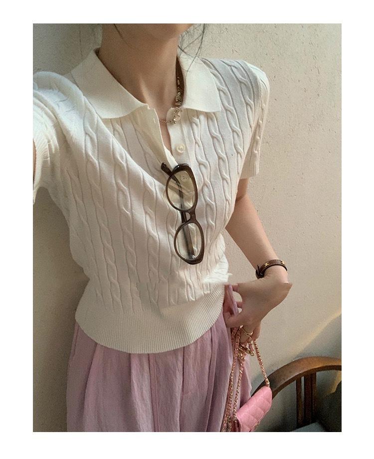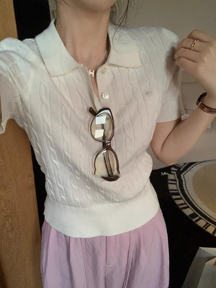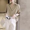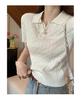 Seda Tencel Delgada Manga Corta para Mujer Primavera y Verano 2024 Nuevo Botones de Solapa Casual Medio Abierto Suéter Camiseta Transfronterizo