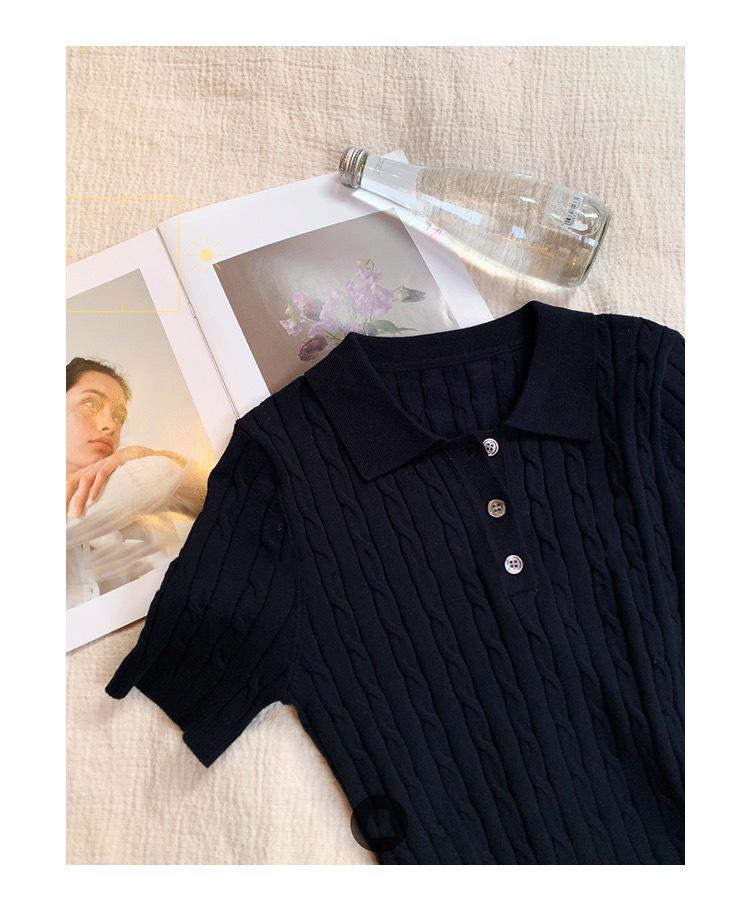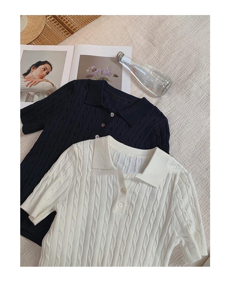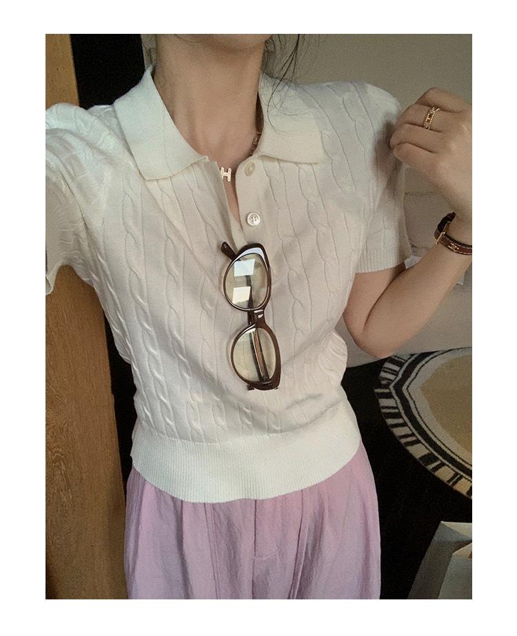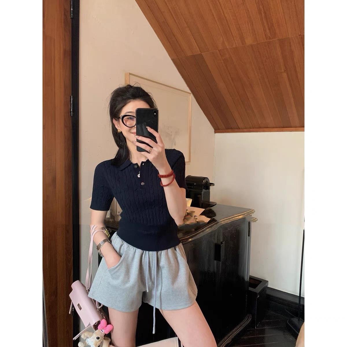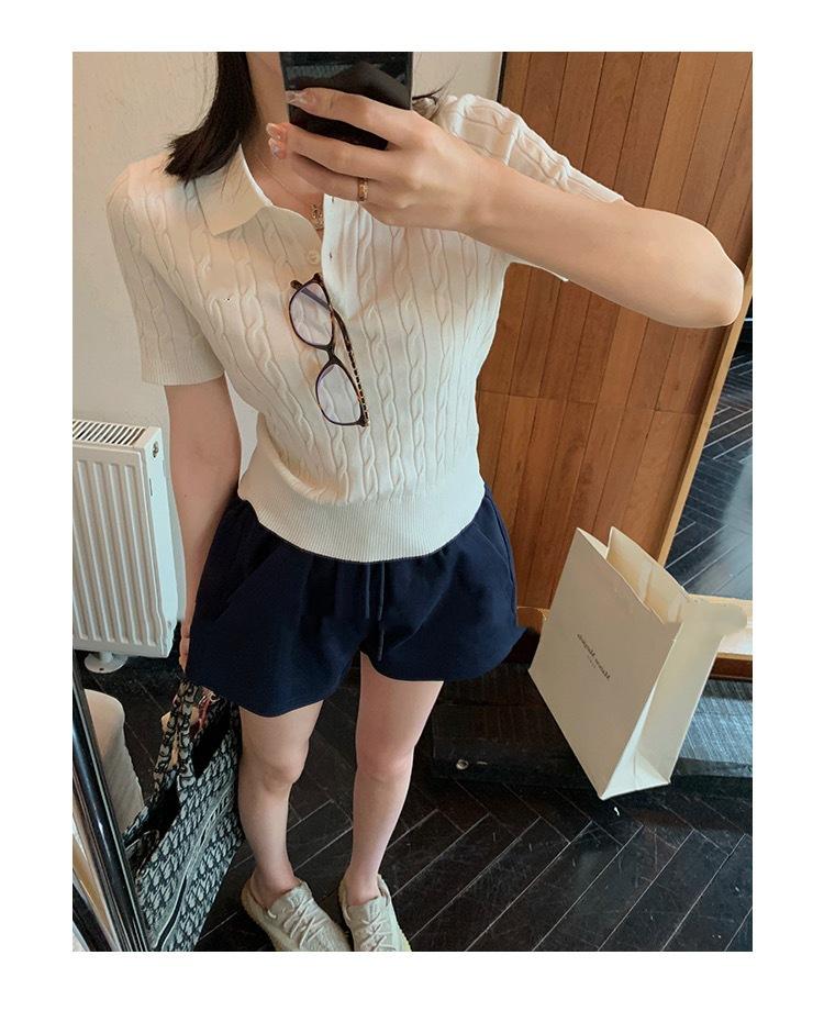 Seda Tencel Delgada Manga Corta para Mujer Primavera y Verano 2024 Nuevo Botones de Solapa Casual Medio Abierto Suéter Camiseta Transfronterizo