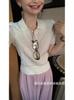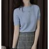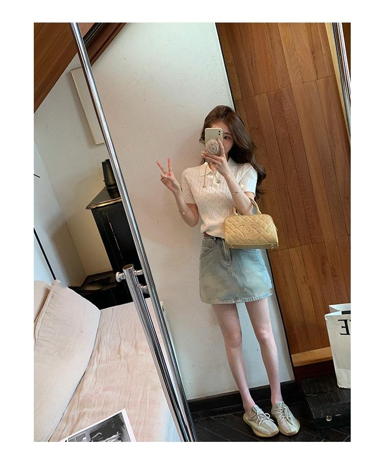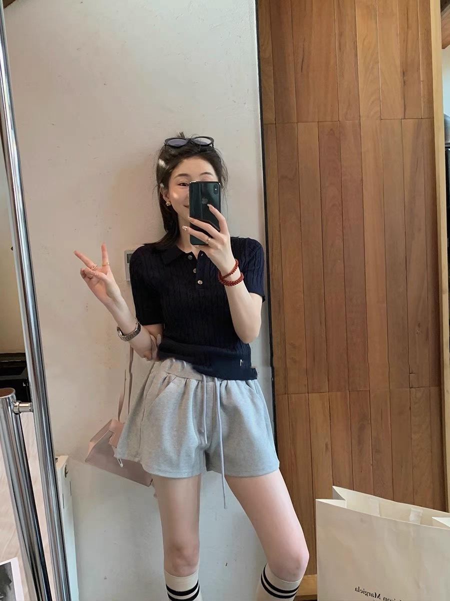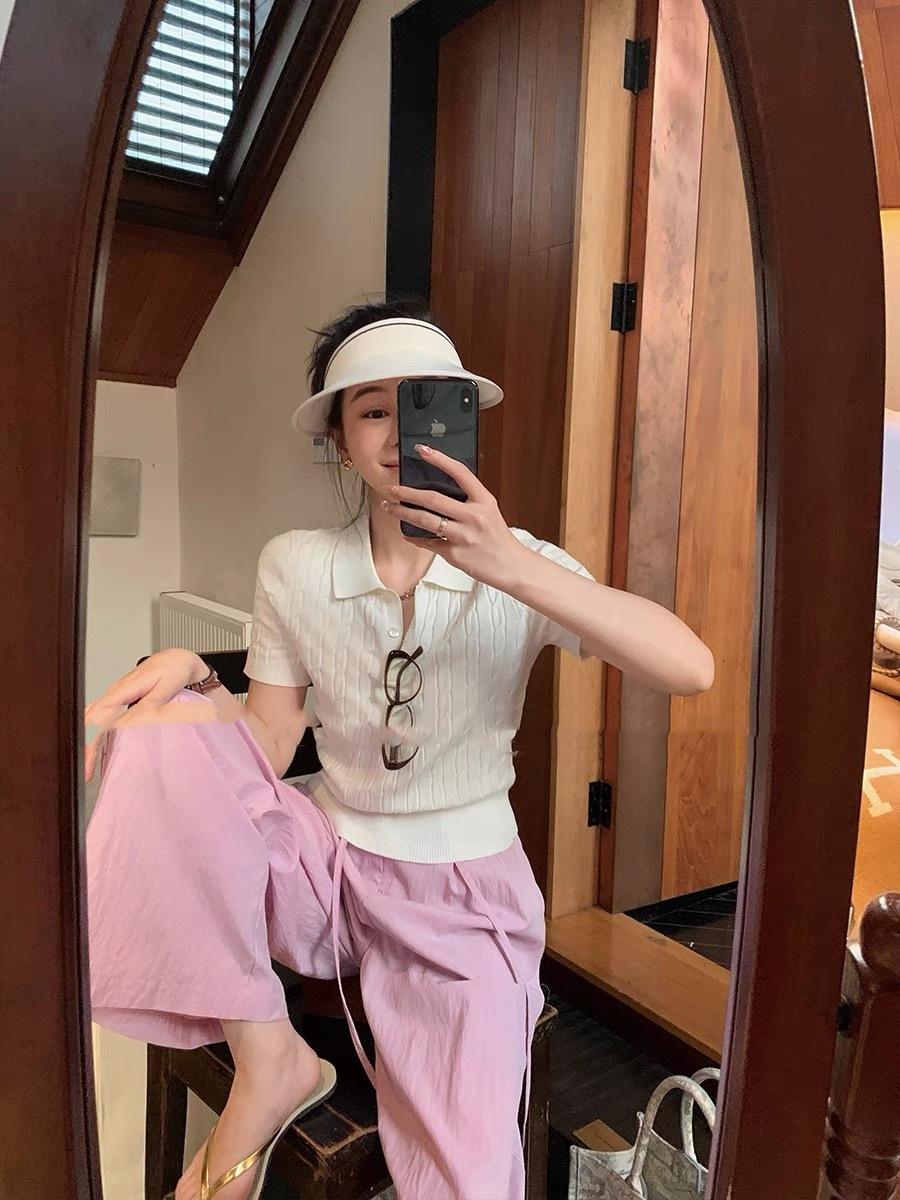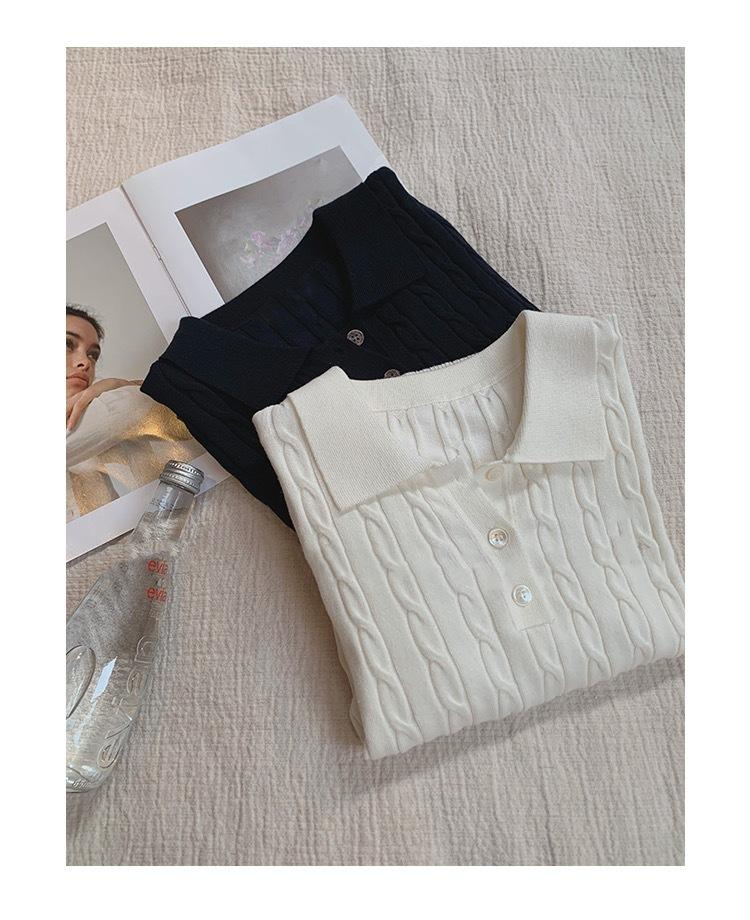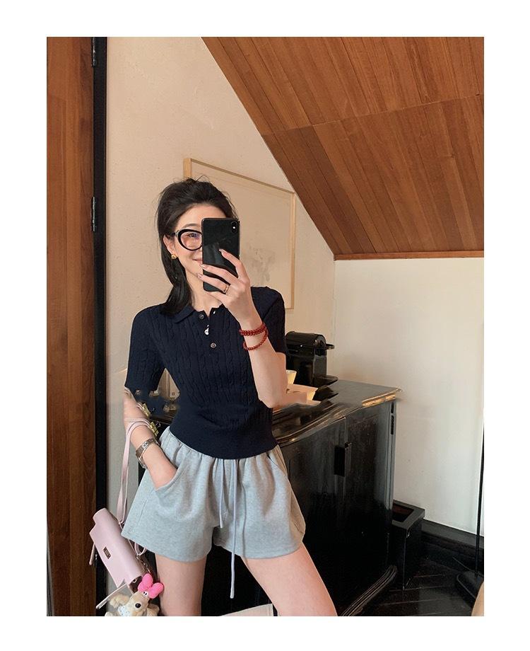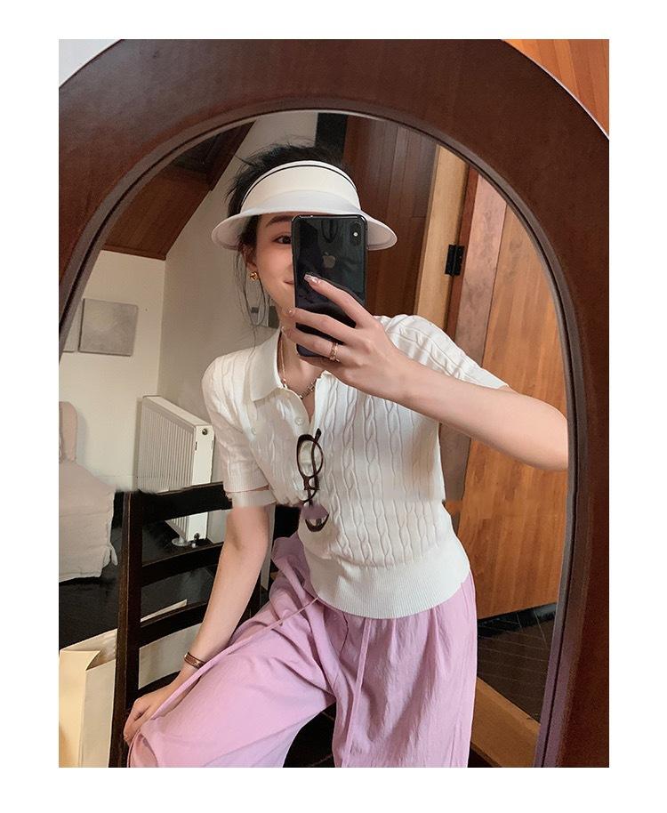 Seda Tencel Delgada Manga Corta para Mujer Primavera y Verano 2024 Nuevo Botones de Solapa Casual Medio Abierto Suéter Camiseta Transfronterizo